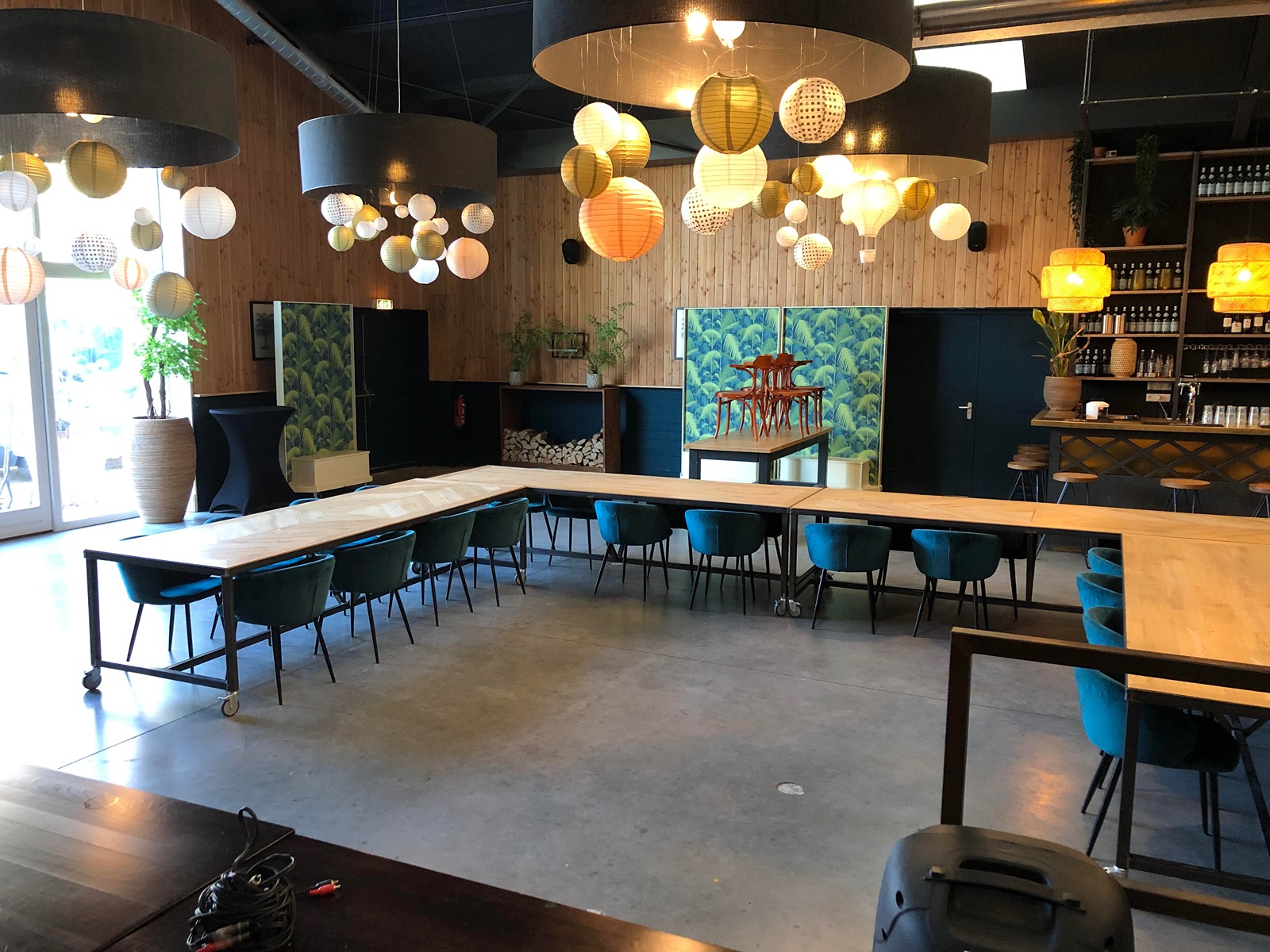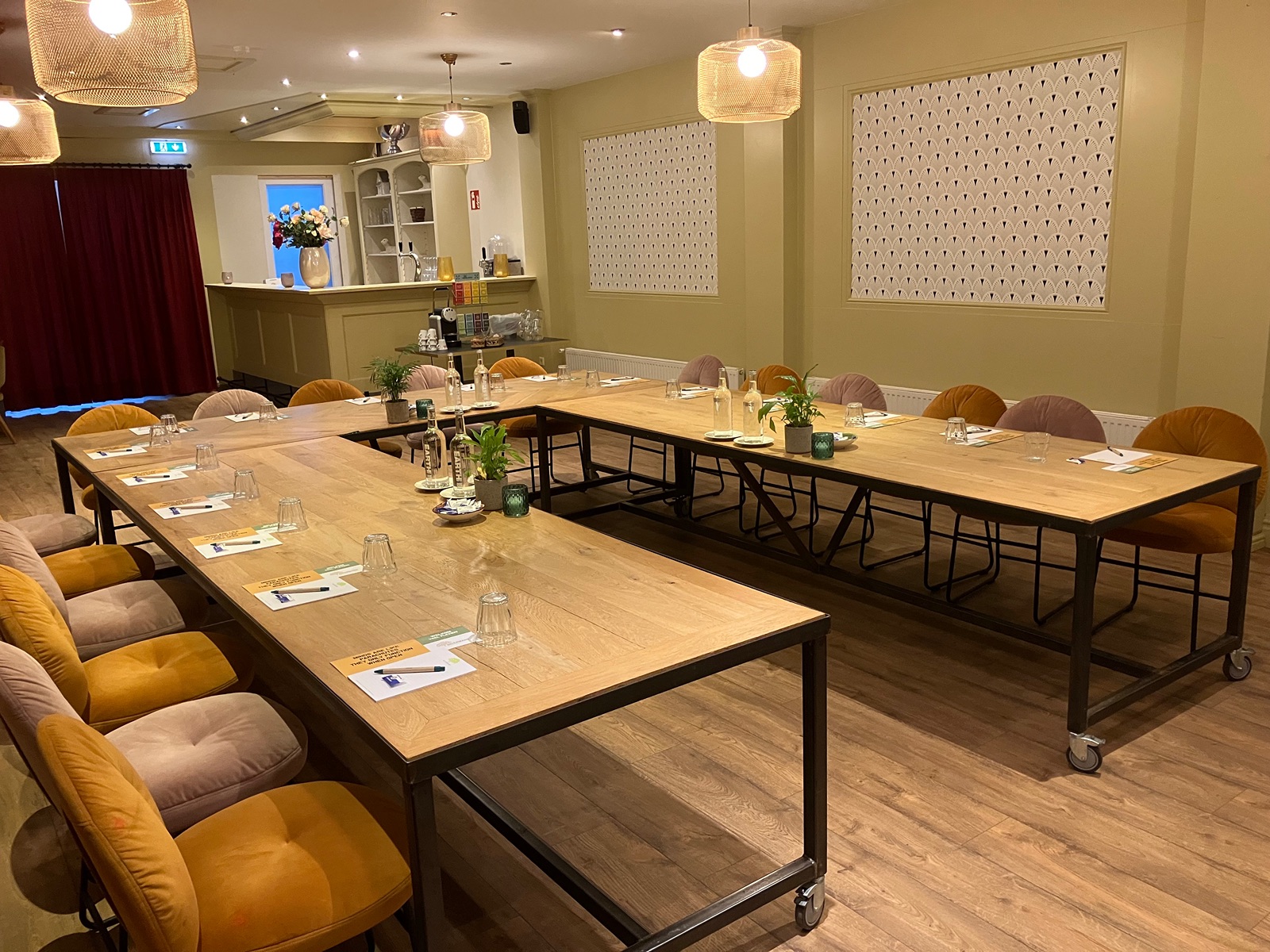Een eigentijdse en tegelijkertijd warme inrichting. Iets dat bij het familiebedrijf past en door gasten altijd wordt gewaardeerd. Hier ervaart men volop ruimte door de grootte van de diverse ruimtes, het groene en waterrijke recreatieterrein en vergezichten over de golfbaan en het aangrenzende polderlandschap.