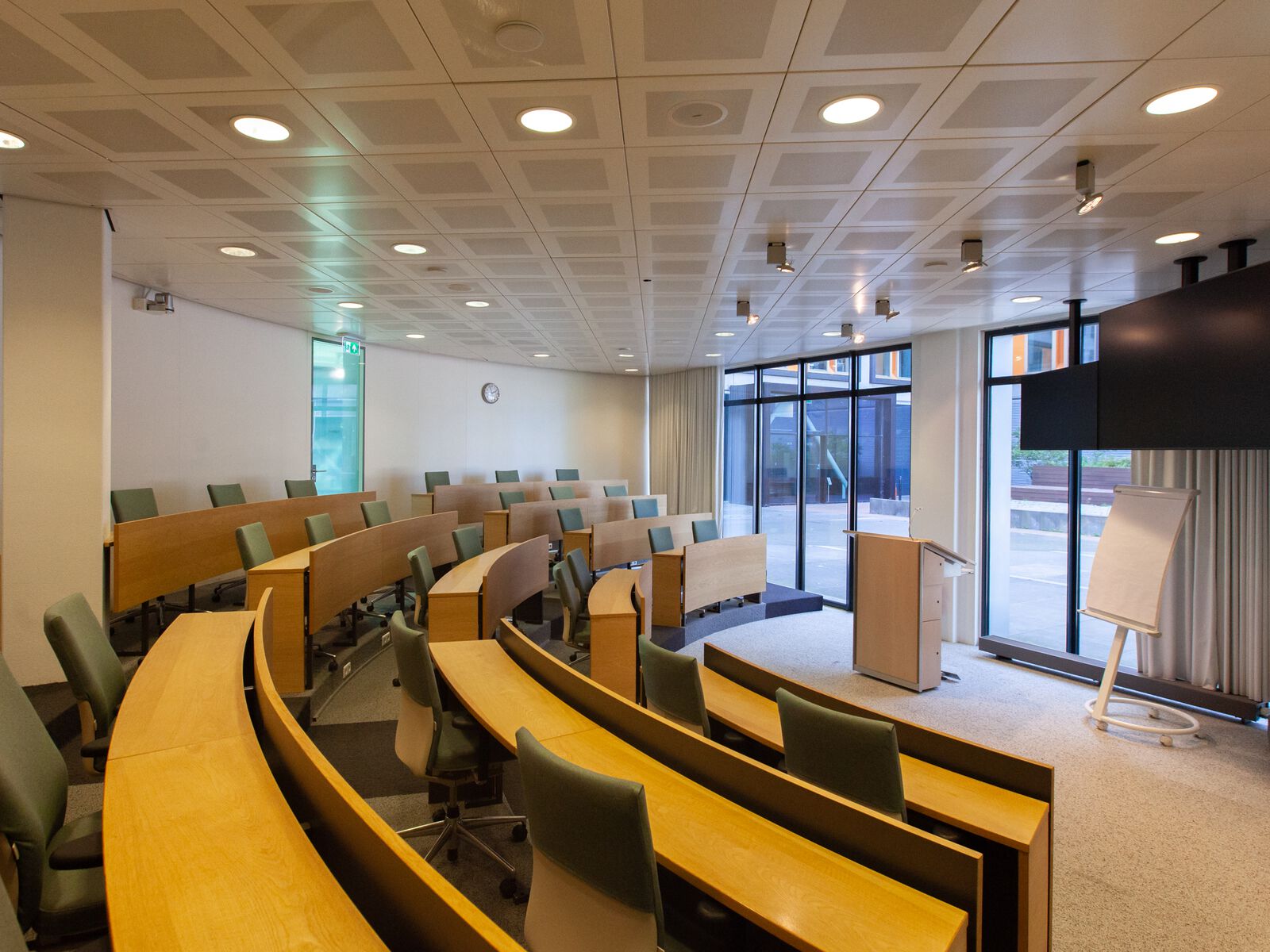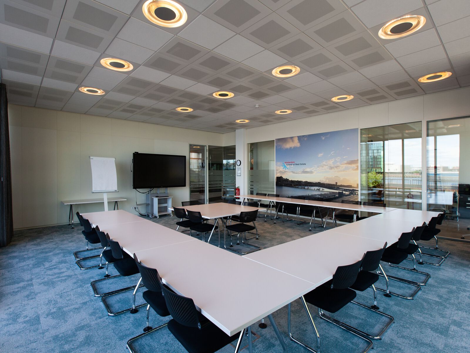 De seminarzaal heeft de fraaiste ligging binnen het gebouw en een zeer licht, modern en open karakter. Deze ruimte is uitstekend geschikt voor workshops, presentaties en interactieve bijeenkomsten voor groepen tot 25 personen. Deze ruimte is voorzien van een groot scherm met touchscreen.