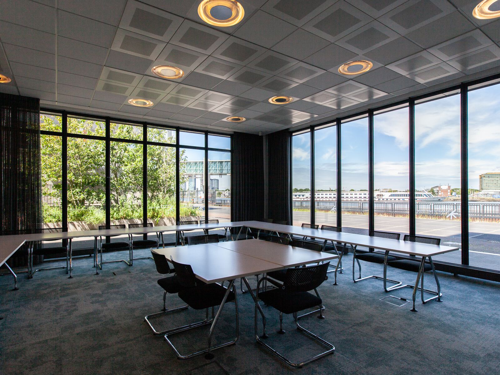 Daarnaast biedt de ASRE 2 werkgroep- of vergaderruimtes. Deze zalen hebben een frisse, lichte en moderne uitstraling en één van deze biedt uitzicht op het IJ, waar schepen af en aan varen en op hoogtijdagen zee- en riviercruiseschepen liggen afgemeerd. Deze ruimtes zijn perfect voor kleinere groepen van 10 tot 15 personen en kunnen eenvoudig worden samengevoegd tot één ruimte voor een groep tot 25 personen.