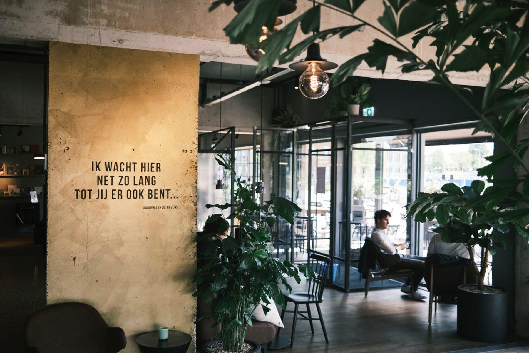Anne&Max Houthavens is een lichte en eigentijdse huiskamer in een dynamische wijk vol creatieve energie. De inrichting met natuurlijke materialen, veel groen en comfortabele zitplekken zorgt voor een ontspannen en inspirerende sfeer. Of je nu komt vergaderen, werken aan de grote leestafel of bijpraten met collega's in een gezellige hoek, er is altijd een fijne plek. De rustige omgeving en het gastvrije team maken het de ideale locatie om even op te laden. Hier start je de dag met goede koffie, heerlijke worteltaart en het gevoel van thuiskomen.