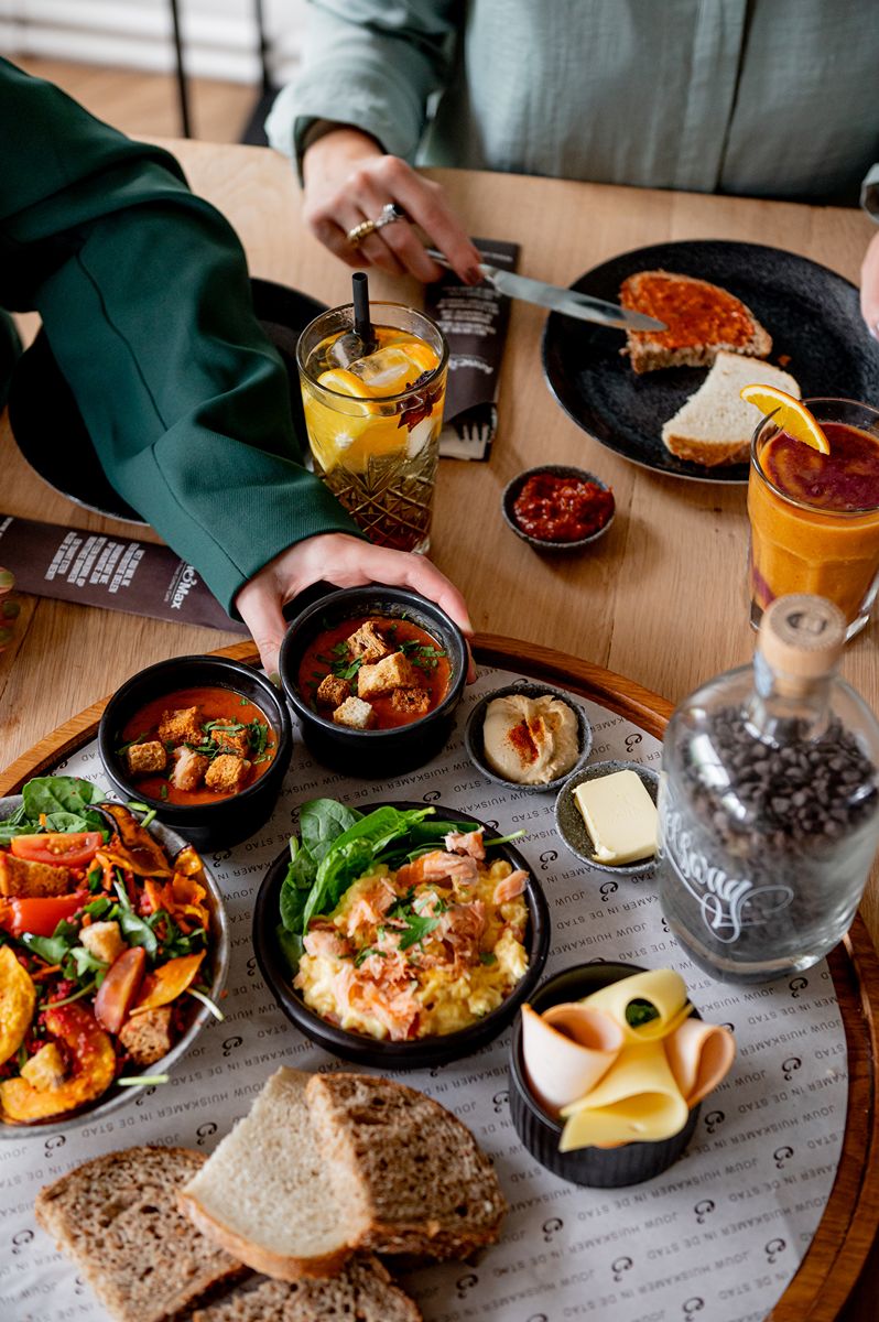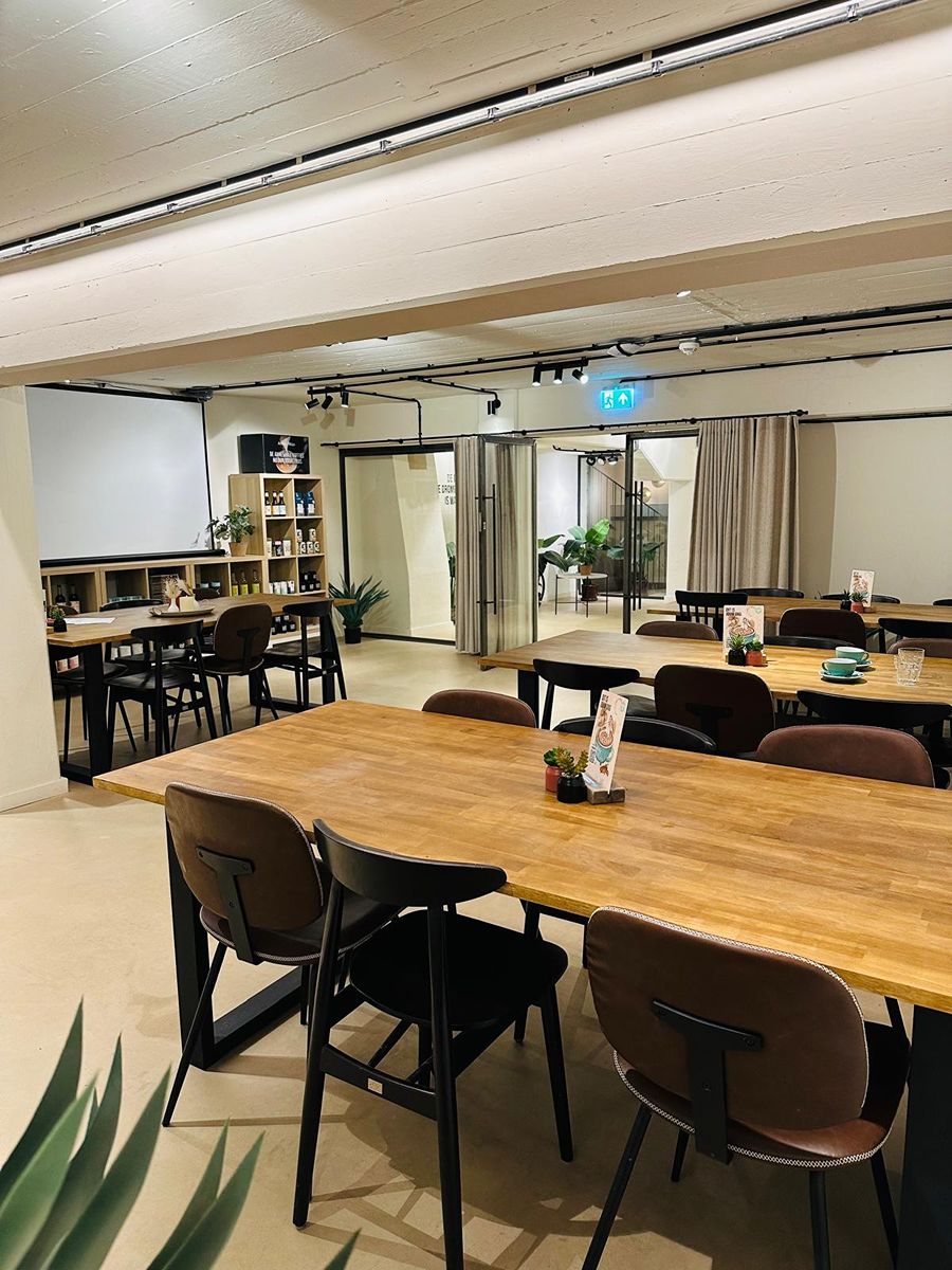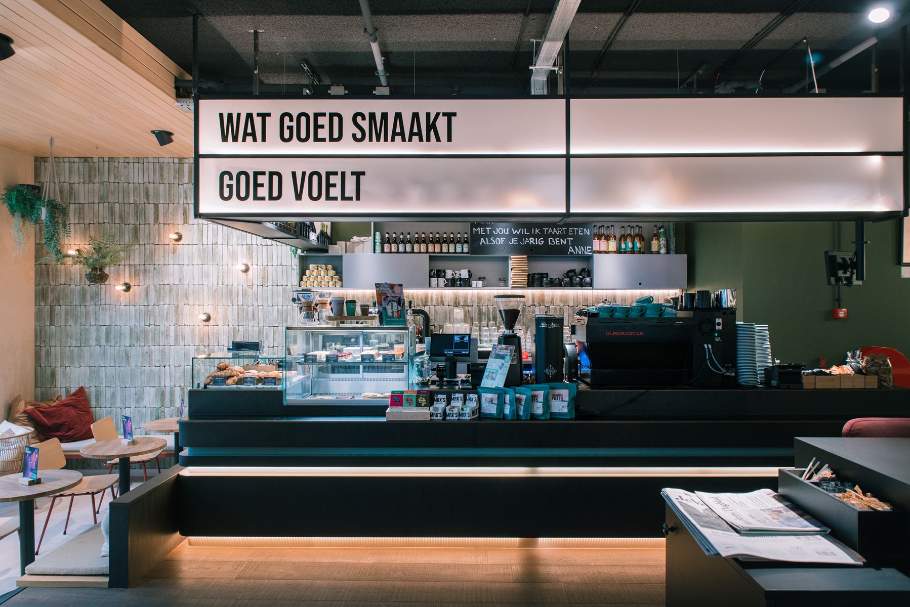 Anne&Max Haarlem is een warme huiskamer in het hart van de stad, waar zowel locals als toeristen zich thuis voelen. De inrichting met natuurlijke materialen, groene accenten en comfortabele zitplekken creëert een ontspannen en gemoedelijke sfeer. Of je nu komt om te werken aan de leestafel, bij te praten met een vriend in een gezellige hoek of te genieten van een lange lunch met uitzicht op de Grote Markt, er is altijd een fijne plek. Hier start je de dag met een goede koffie, een gezonde maaltijd en een moment van rust.