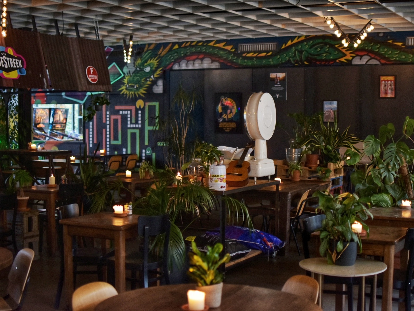 De sfeer is informeel en ontspannen. Pak een biertje en een hapje en speel een potje pacman of airhockey.