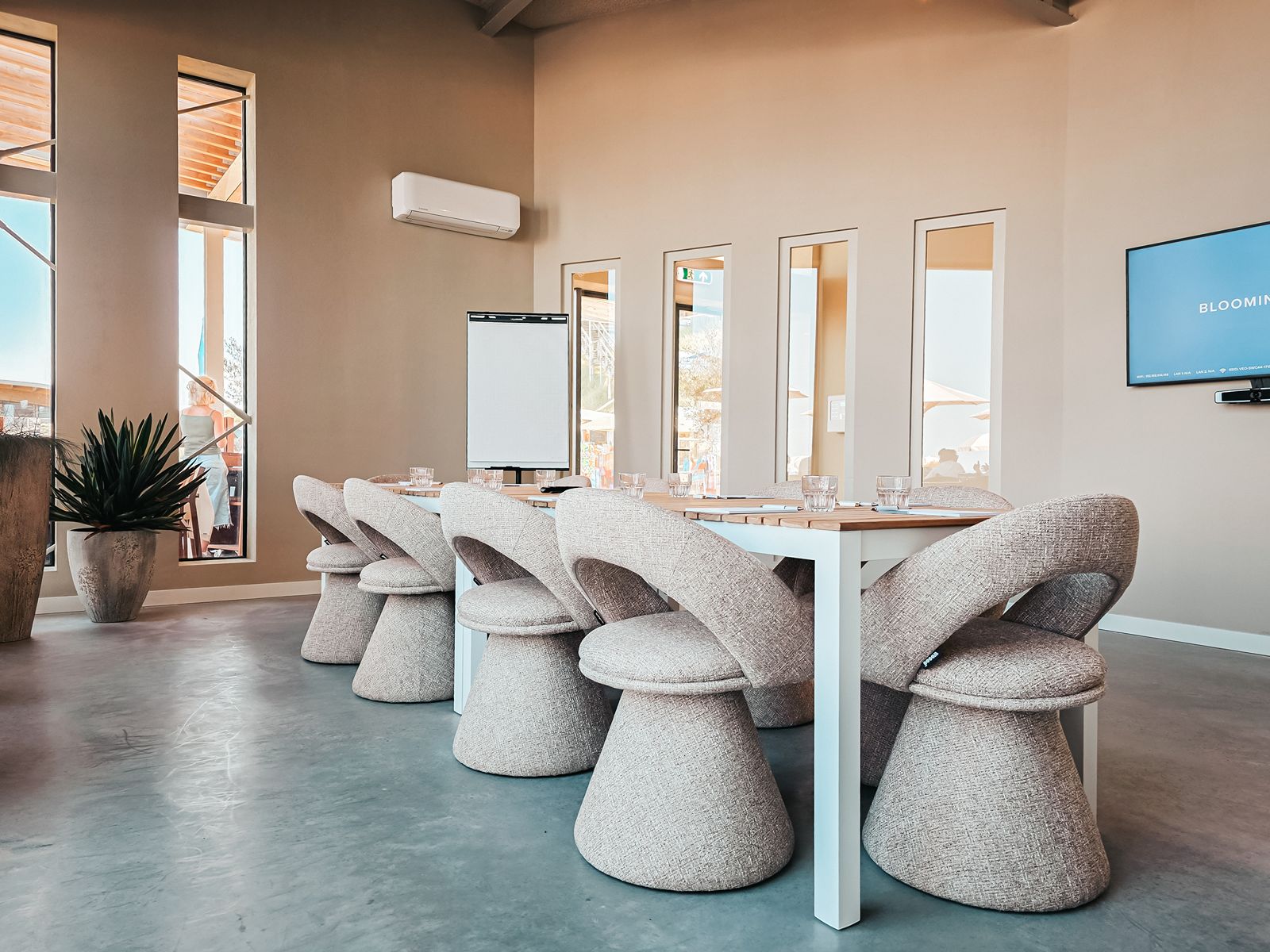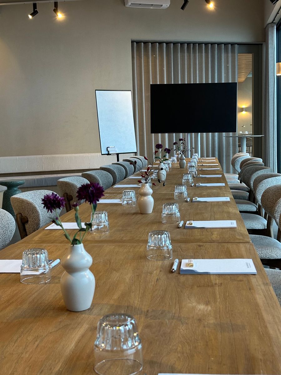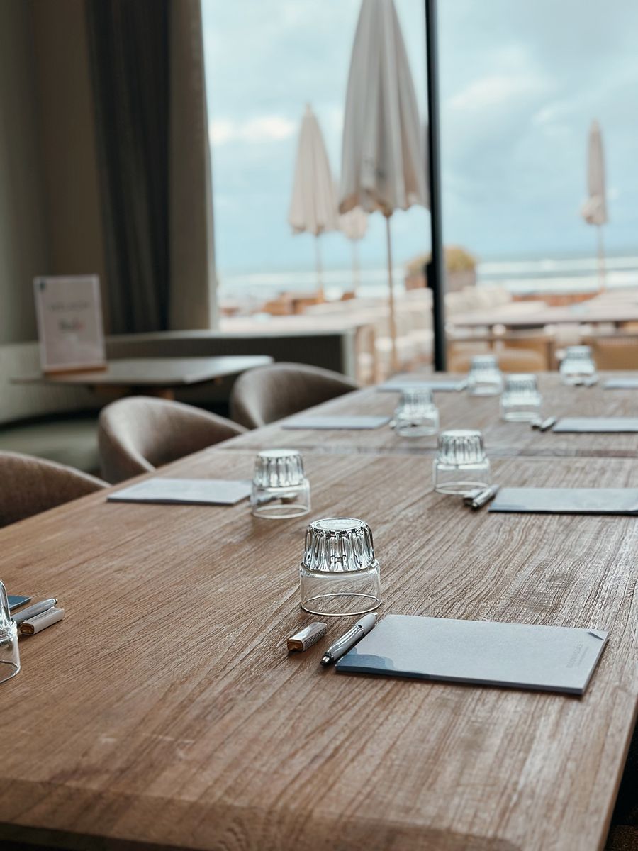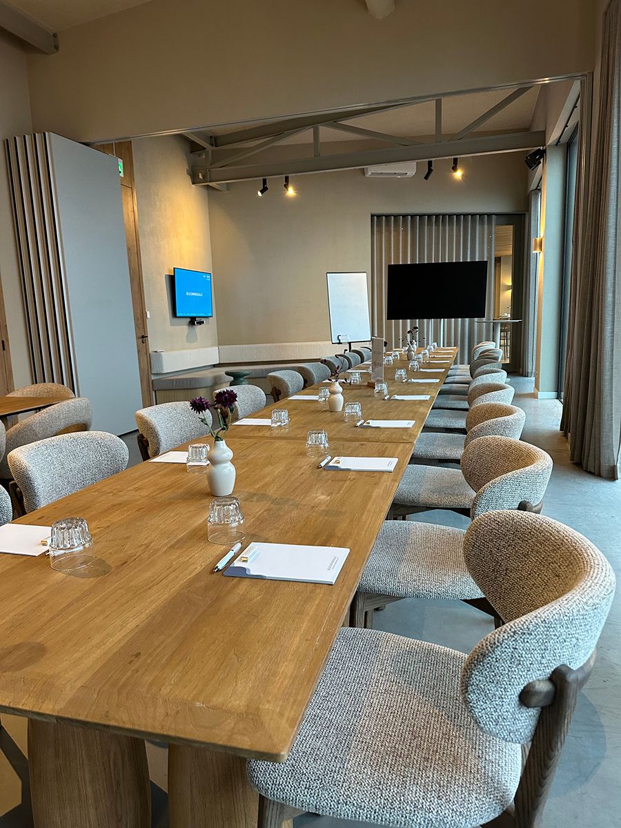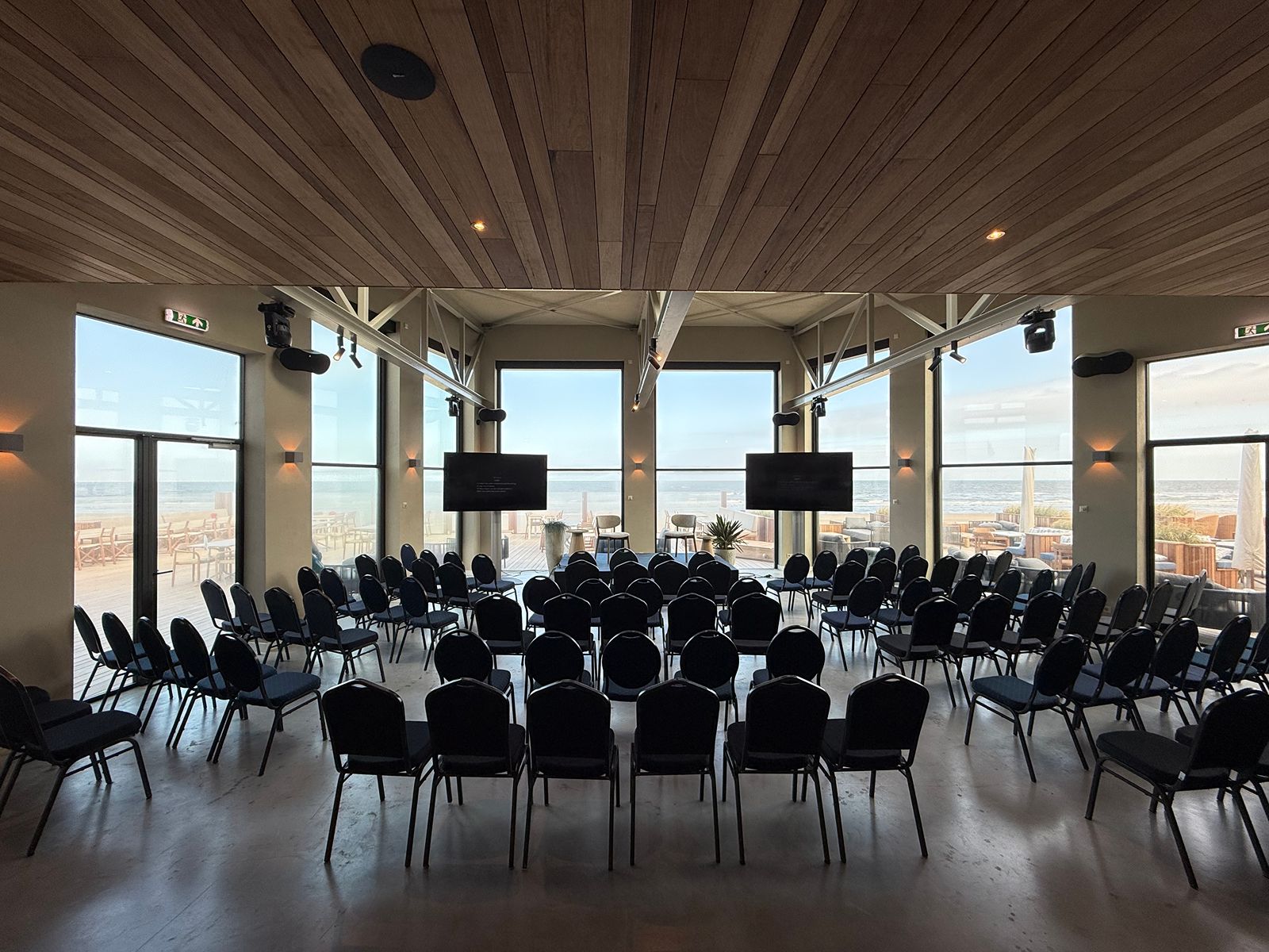 Beachclub Bloomingdale biedt vijf exclusieve vergaderruimtes met prachtig zeezicht, ideaal voor productieve sessies. Elke ruimte is uitgerust met een groot scherm, geluidsinstallatie en een eigen terras met lounge area, voor een comfortabele en inspirerende omgeving. Voor optimale privacy zijn alle ruimtes voorzien van zonwerend glas en gordijnen. De ruimtes variëren in grootte en bieden plaats aan groepen van 4 tot 50 personen. Perfect voor vergaderingen, brainstormsessies of heisessies. Elke vergaderruimte is van alle gemakken voorzien, waaronder: LED TV, plug & play, whiteboard, flipover, schrijfwaren, WiFi en uitstekende geluidsinstallatie. Tussen de sessies door kunt u genieten van een lunch of borrel op het privéterras of in het restaurant. Desgewenst kan het privéterras tijdens de sessies worden gebruikt voor extra comfort en ontspanning.