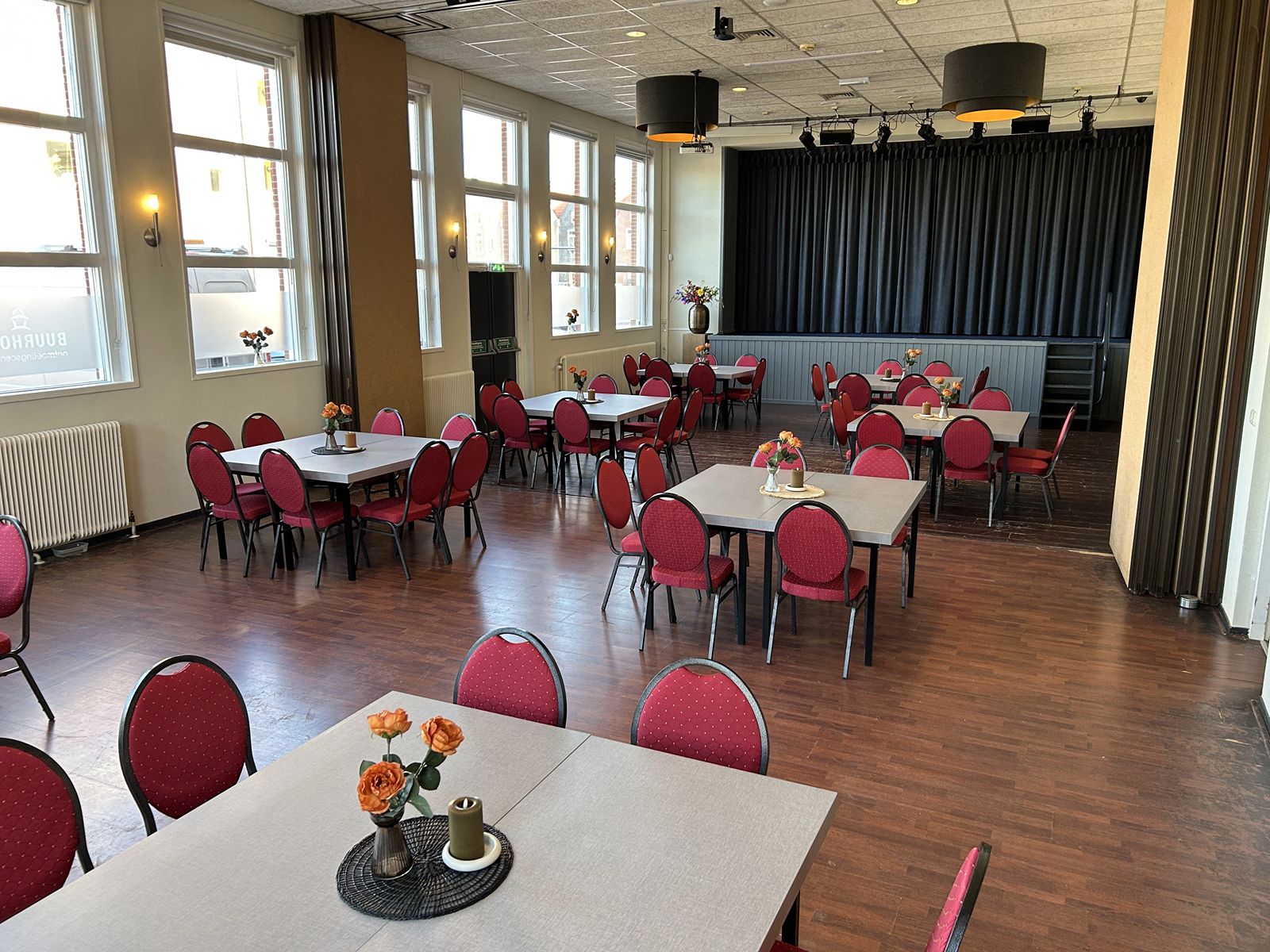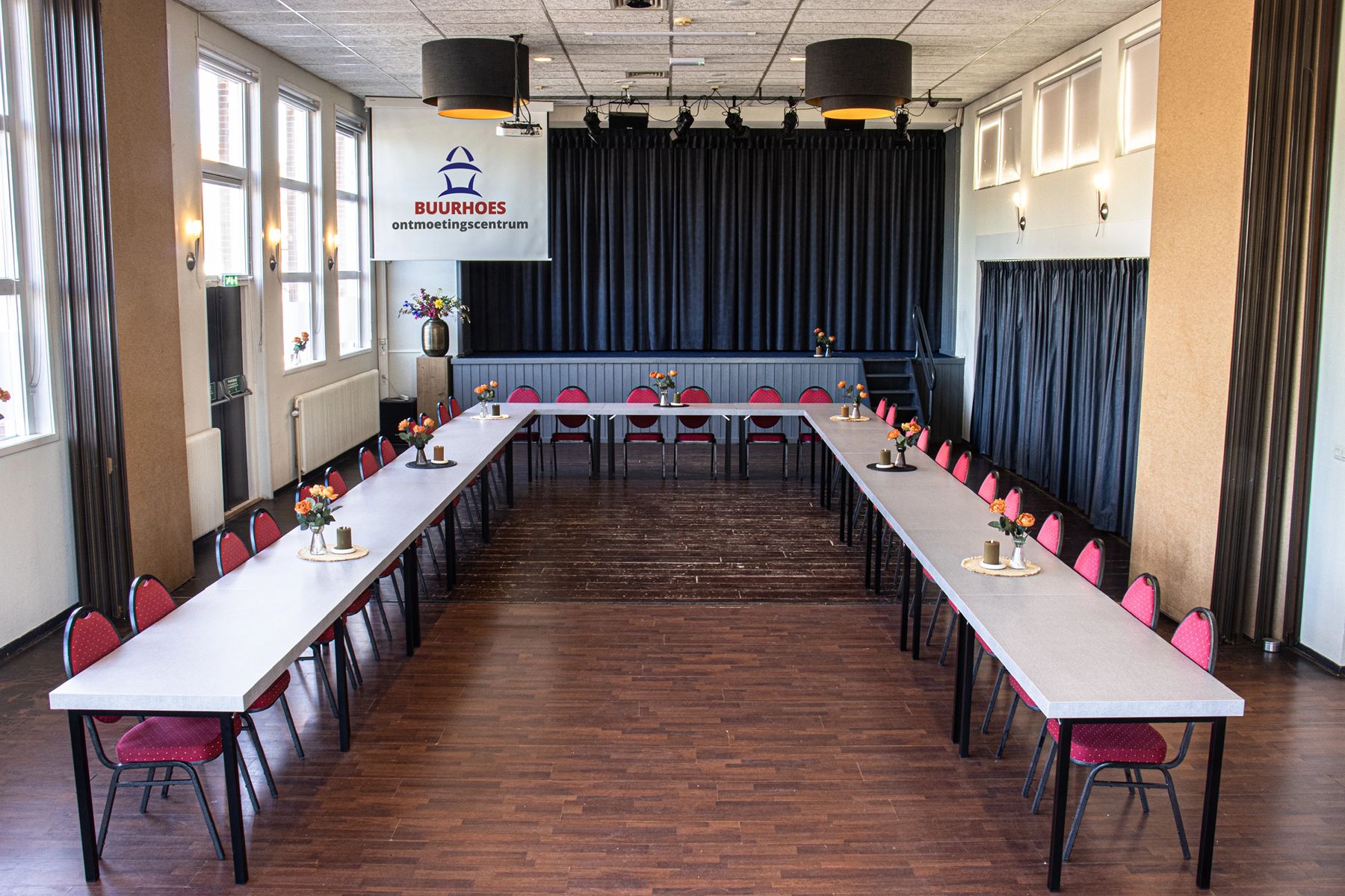 Het karakteristieke Buurhoes in het centrum van Ten Boer is een voormalige lagere school uit 1921. De verschillende klaslokalen zijn nu vergaderruimten, die uitermate geschikt zijn voor vergaderingen, cursussen, seminars, events of grotere bijeenkomsten. Daarbij kunnen uiteraard lunch, koffie en thee worden verzorgd. Beeld en geluid nodig? Geen probleem. Het Buurhoes beschikt over professionele video- en audioapparatuur.