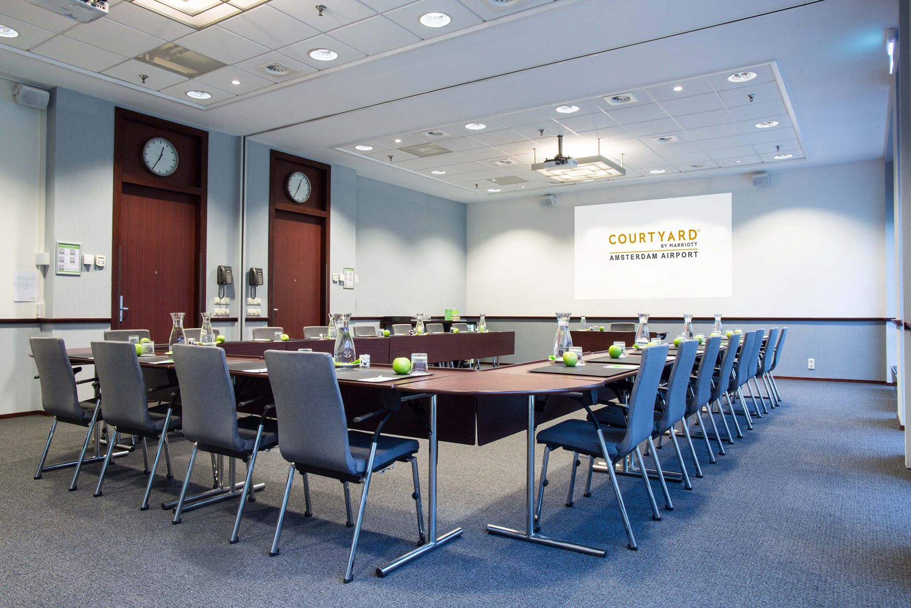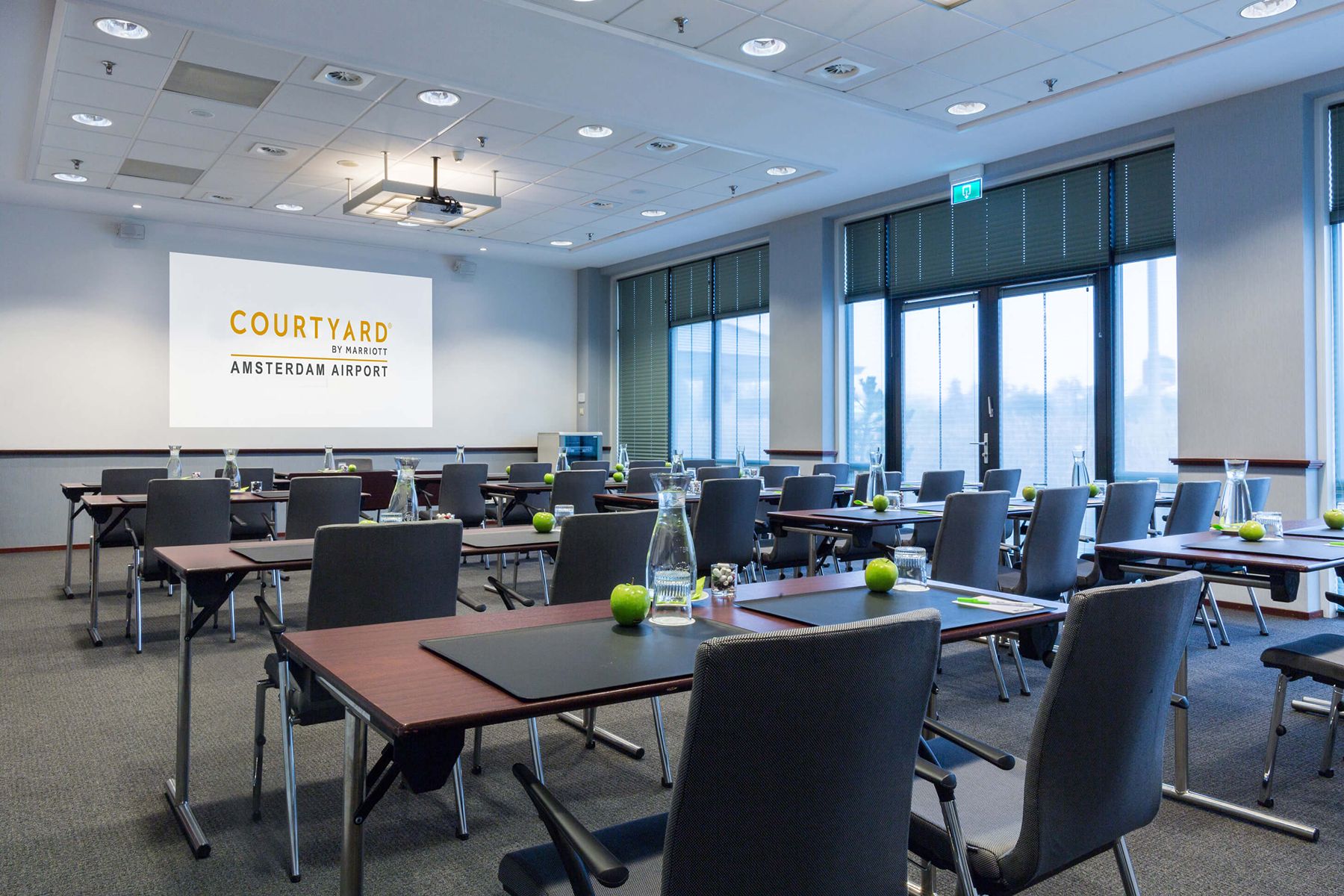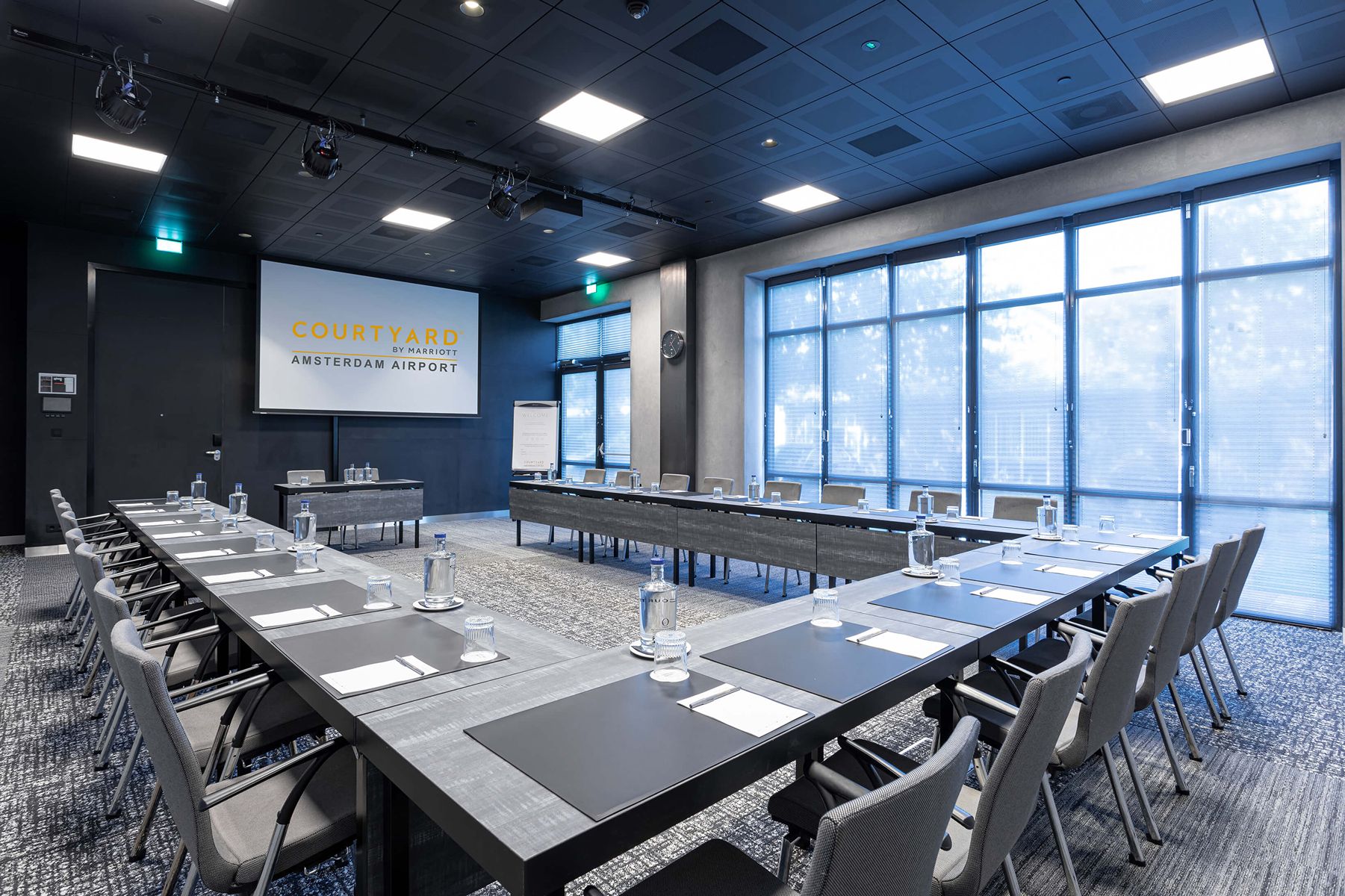 Het naastgelegen comfortabele 4-sterrenhotel Courtyard by Marriott is onderdeel van Claus Group, gelegen in het Haarlemmermeerse Bos. Het hotel heeft 260 kamers, 10 vergaderzalen en ligt op loopafstand van Claus. Vanaf Amsterdam Airport Schiphol brengt de shuttlebus u naar het hotel, waarna u heerlijk tot rust kunt komen in een van de moderne kamers. Deze zijn uitgerust met alle gemakken voor de (zakelijke) reiziger zoals luxueuze Marriott bedden, geluidsdichte ramen en deuren, USB-stopcontacten, Smart TV met Chromecast en gratis wifi. In combinatie met Claus is het Courtyard by Marriott hotel de perfecte uitvalsbasis voor een meerdaags evenement vlakbij Schiphol.