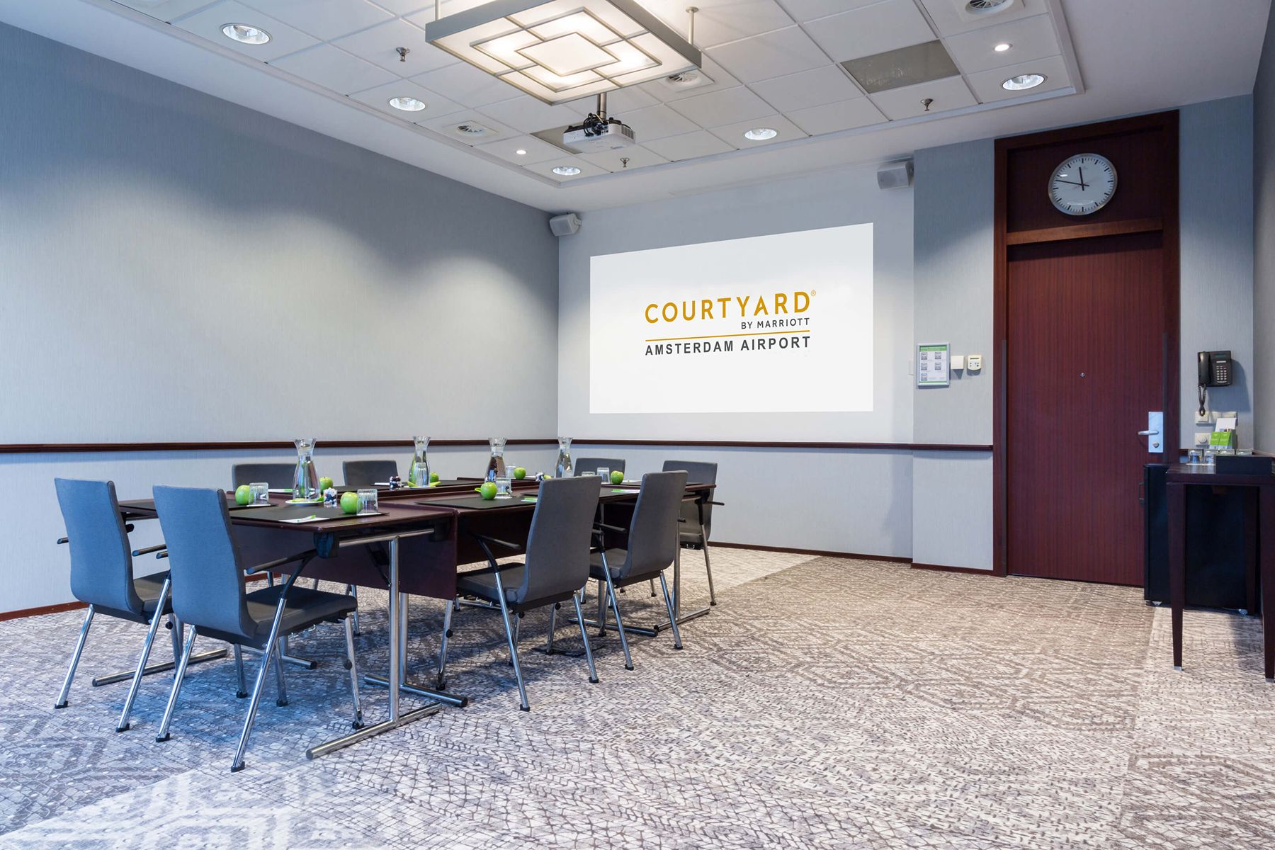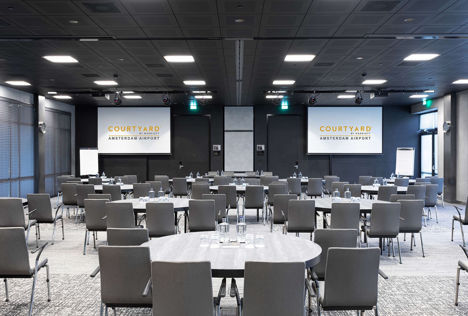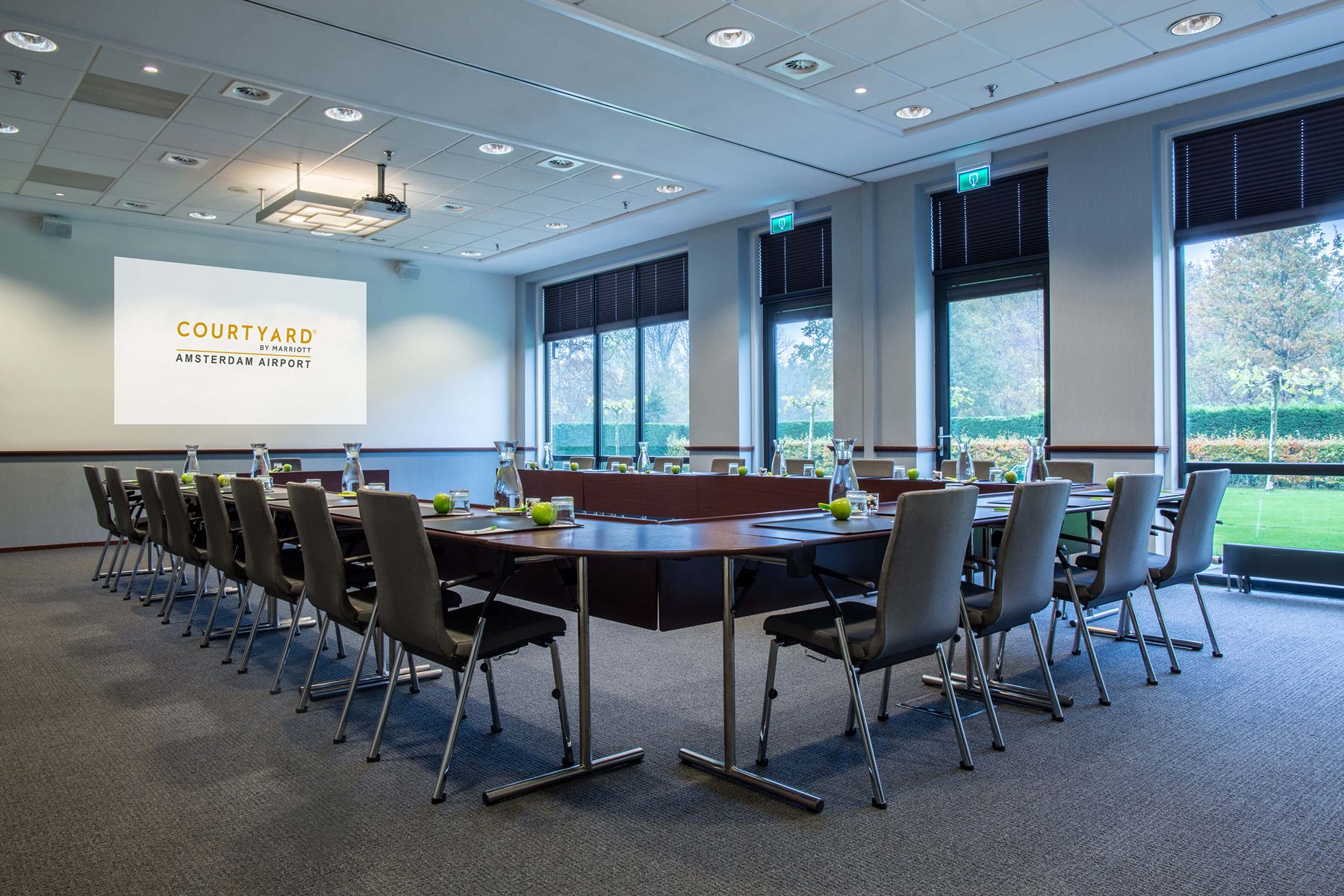 Het naastgelegen comfortabele 4-sterrenhotel Courtyard by Marriott is onderdeel van Claus Group, gelegen in het Haarlemmermeerse Bos. Het hotel heeft 260 kamers, 10 vergaderzalen en ligt op loopafstand van Claus. Vanaf Amsterdam Airport Schiphol brengt de shuttlebus u naar het hotel, waarna u heerlijk tot rust kunt komen in een van de moderne kamers. Deze zijn uitgerust met alle gemakken voor de (zakelijke) reiziger zoals luxueuze Marriott bedden, geluidsdichte ramen en deuren, USB-stopcontacten, Smart TV met Chromecast en gratis wifi. In combinatie met Claus is het Courtyard by Marriott hotel de perfecte uitvalsbasis voor een meerdaags evenement vlakbij Schiphol.