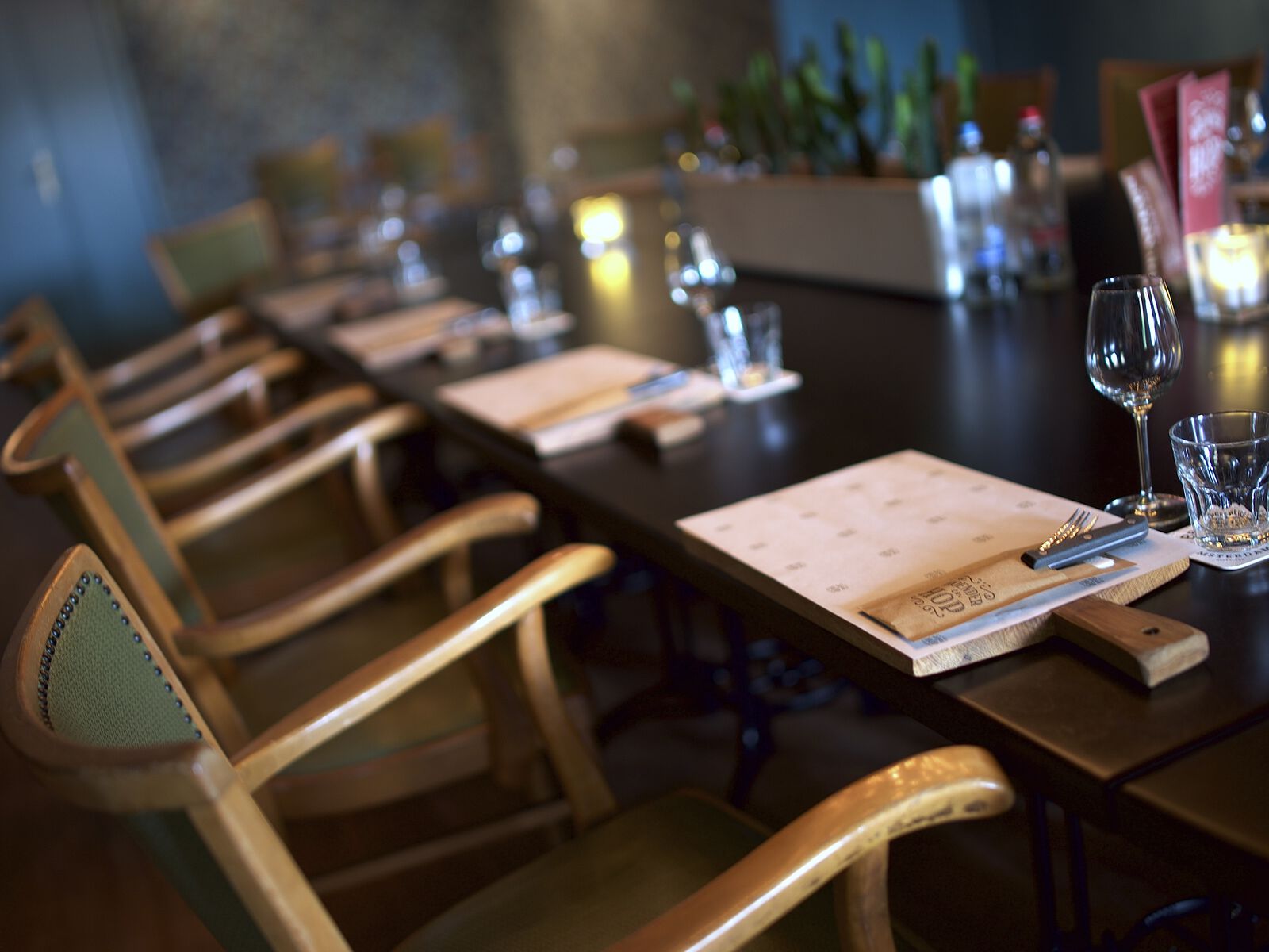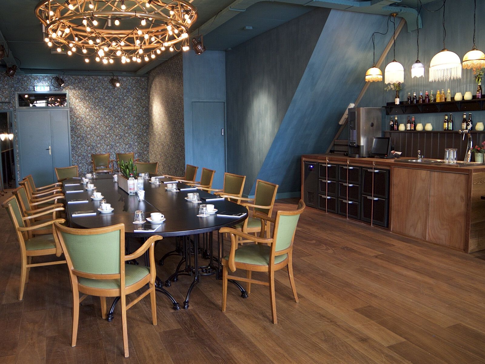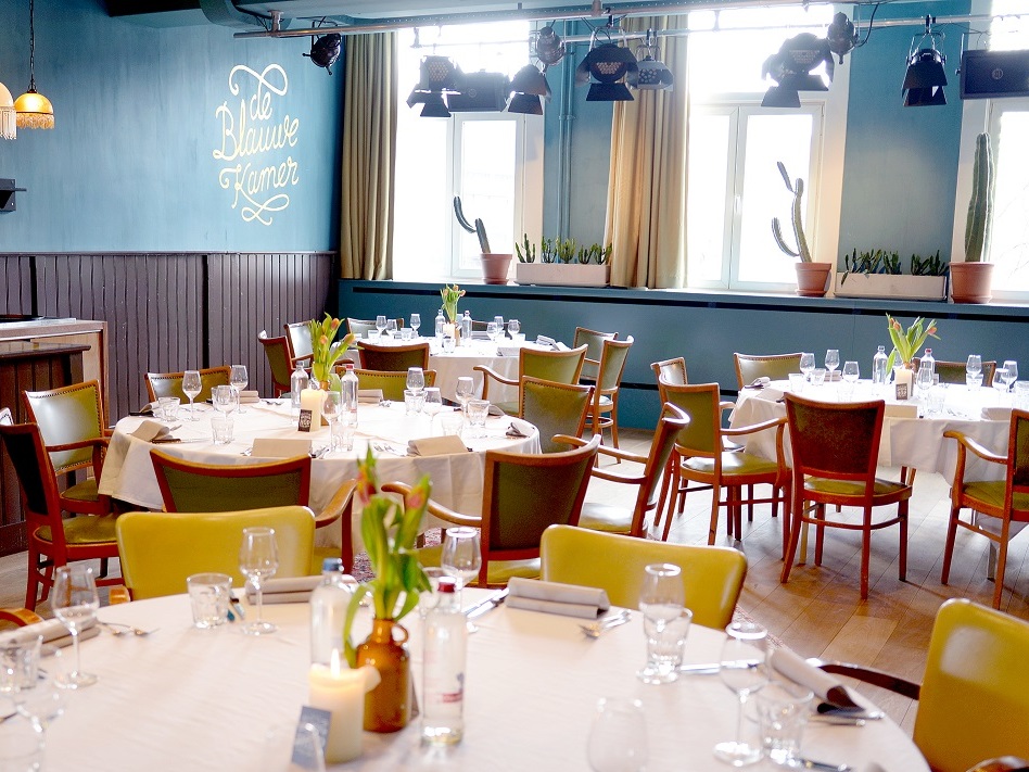 De Blauwe Kamer biedt de knusheid en privacy van een huiskamer, gecombineerd met het gemak van een restaurant en de voorzieningen van een vergaderruimte. Deze bijzondere ruimte is te reserveren voor zowel feestjes, borrels en private dining als productlanceringen, vergaderingen en workshops.
