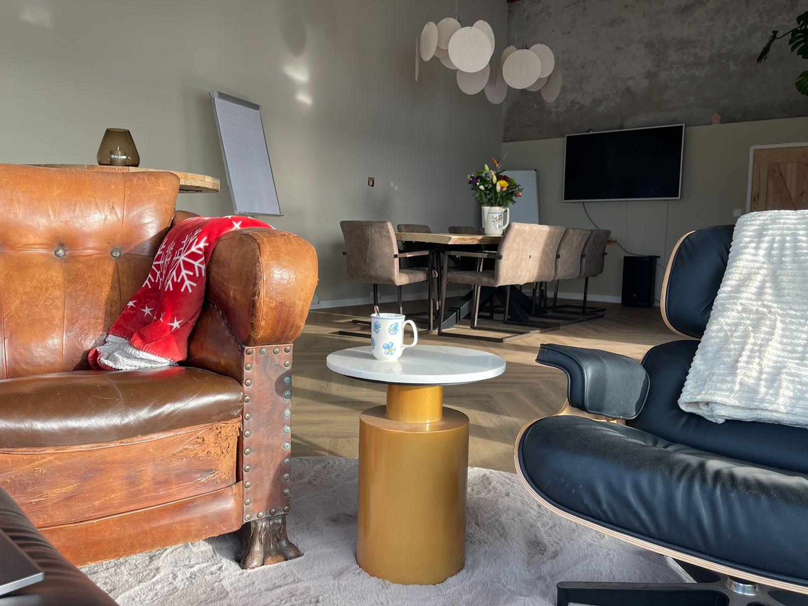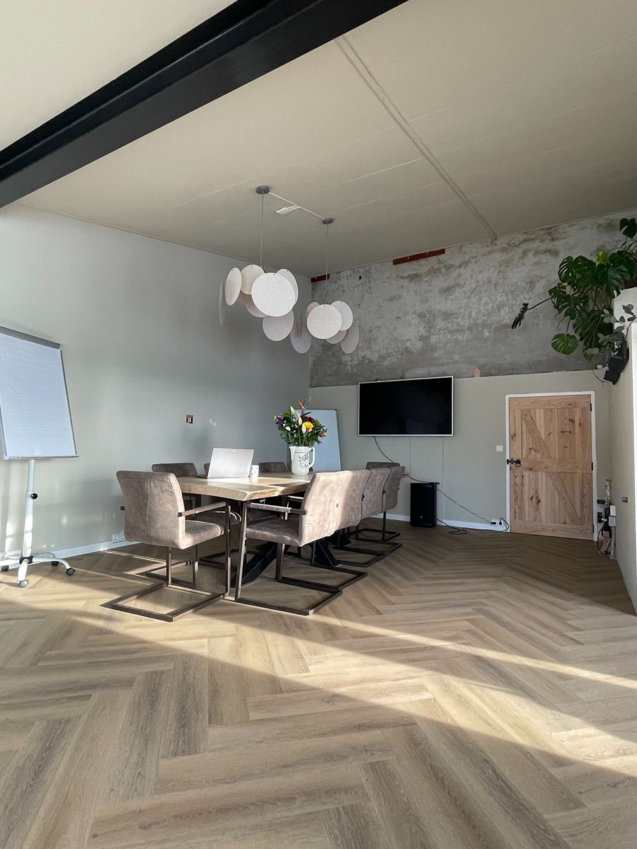 Sfeervolle en praktische vergaderruimte in het groen. De locatie biedt een lichte, ruime en inspirerende setting, ideaal voor vergaderingen, workshops of trainingsdagen. Centraal in de ruimte staat een grote tafel met comfortabele stoelen waar je de hele dag prettig aan kunt werken. Er is onbeperkt gebruik van wifi, een flipover en een groot tv-scherm voor presentaties of online meetings. Wat deze plek extra bijzonder maakt, is het prachtige uitzicht op uitgestrekte weilanden, paarden en omliggende natuur. Deze rustgevende omgeving draagt bij aan focus, ontspanning en nieuwe inspiratie. De ruimte beschikt over een volledig uitgerust keukentje met alle gemakken. Je kunt onbeperkt genieten van koffie, thee en fris. Indien gewenst verzorgen wij ook een smakelijke lunch. Daarnaast is er een ruim, apart toilet aanwezig. Een plek waar sfeer, comfort en natuur samenkomen, perfect voor een productieve en aangename dag.