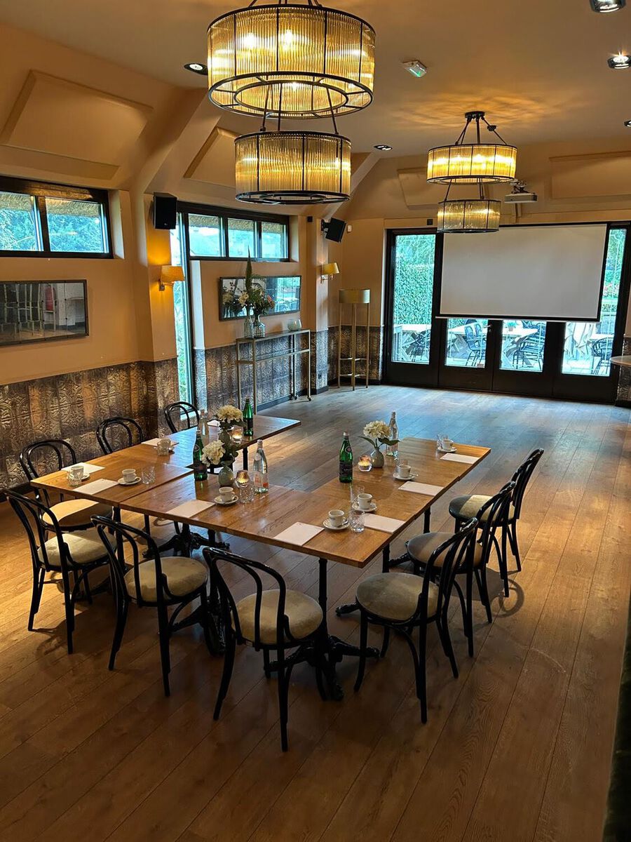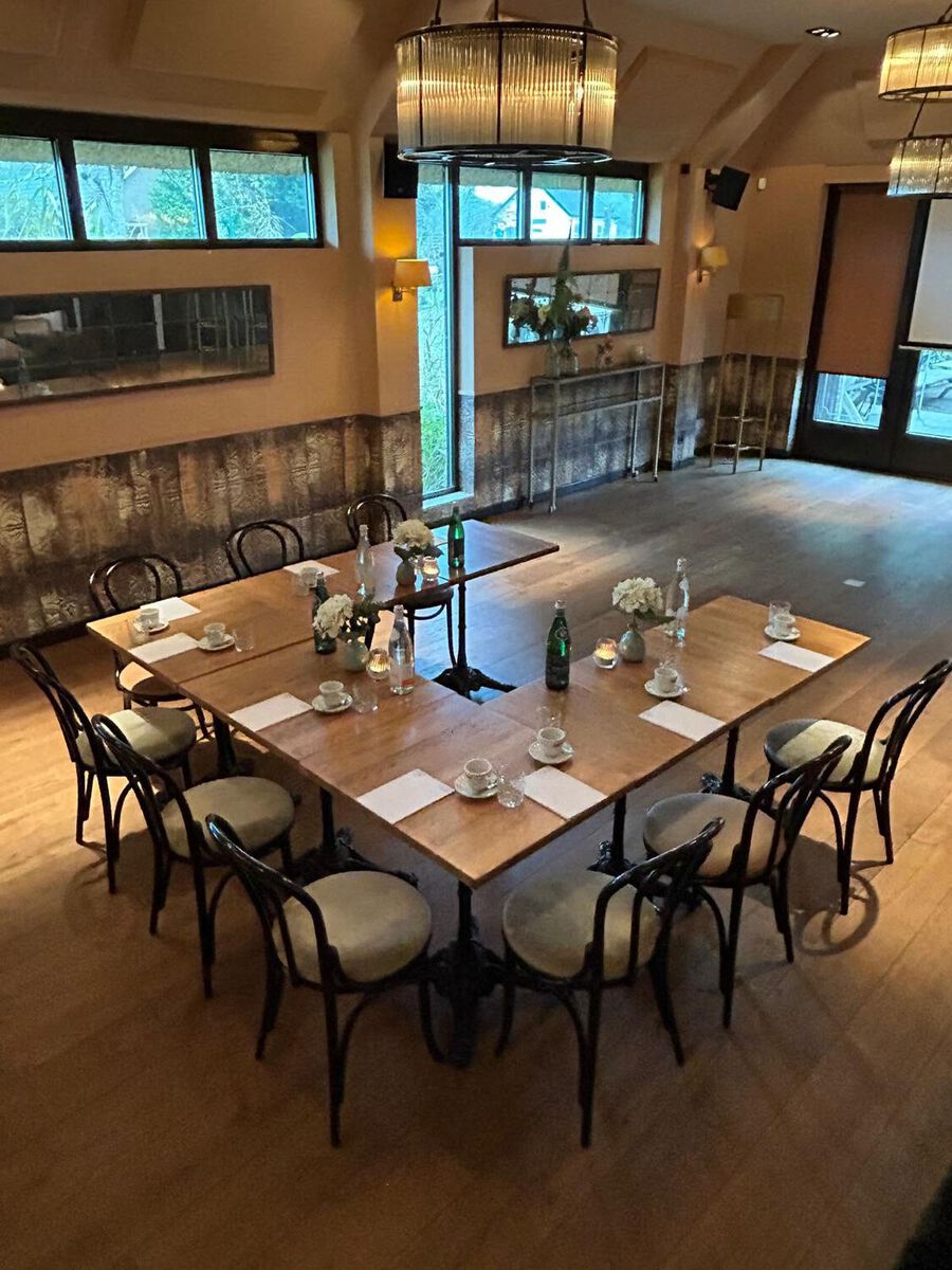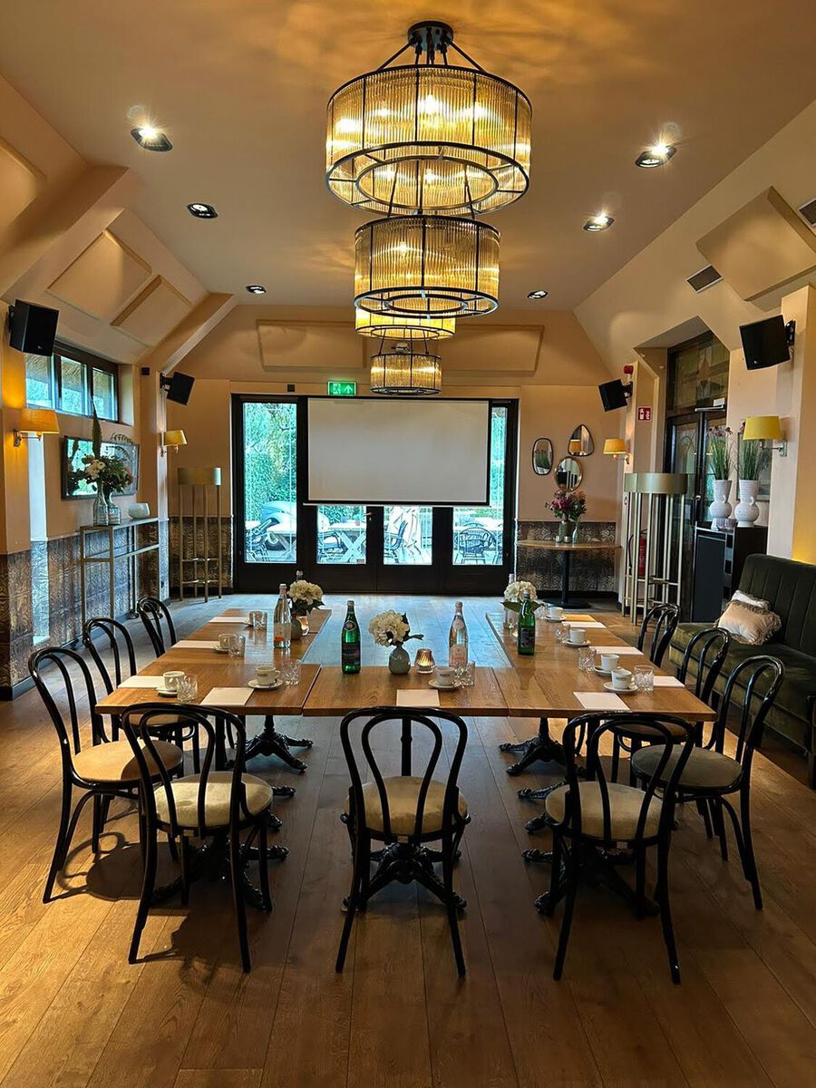 Een lichte, ruime zaal met een moderne inrichting en een prettige ambiance. Geschikt voor grotere gezelschappen, maar ook voor kleinere.
