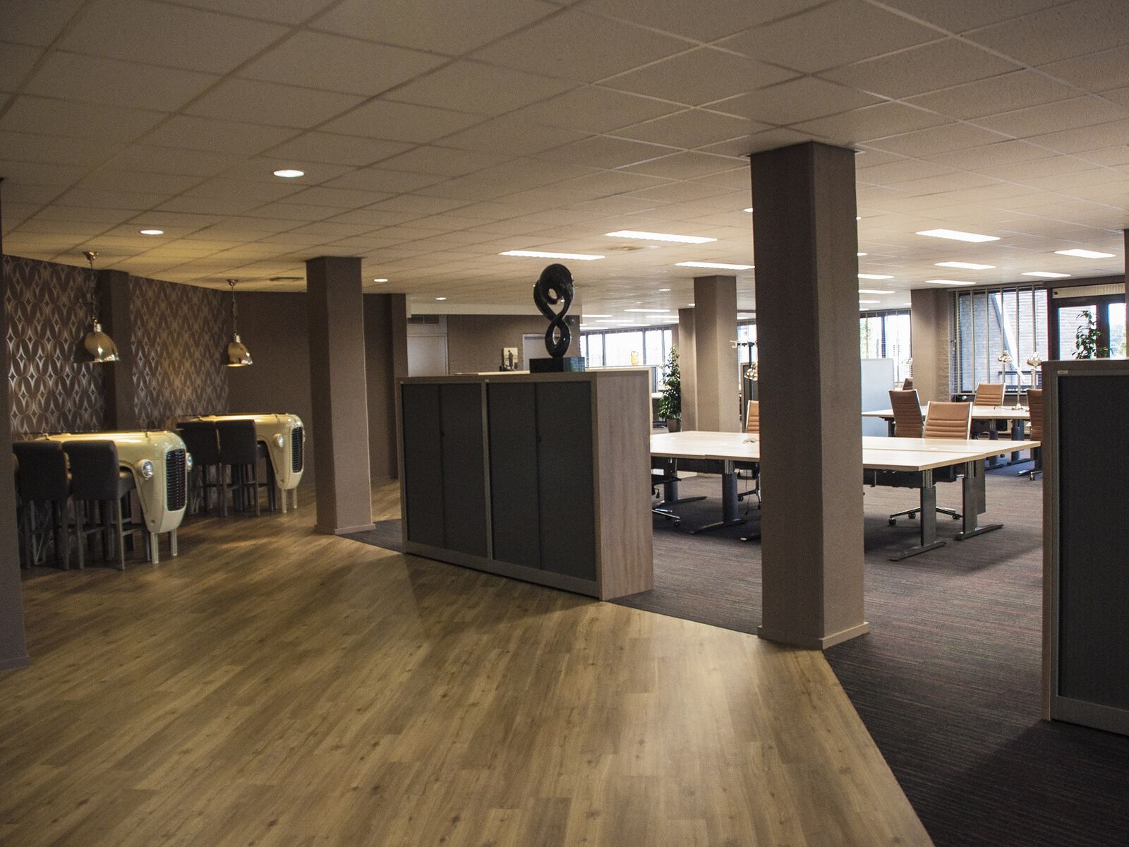 De ruime, volledig ingerichte werkplekken zijn voorzien van een robuust bureau, bureaustoel en een eigentijdse bureaulamp. Een plug-and-play werkplek, inclusief alle benodigde faciliteiten, kan al gehuurd worden vanaf 1 dag. Een combinatie van vergaderen en werken is dus zeker mogelijk. Parkeren doe je op het eigen terrein en je wordt ontvangen door de gastvrije receptie.