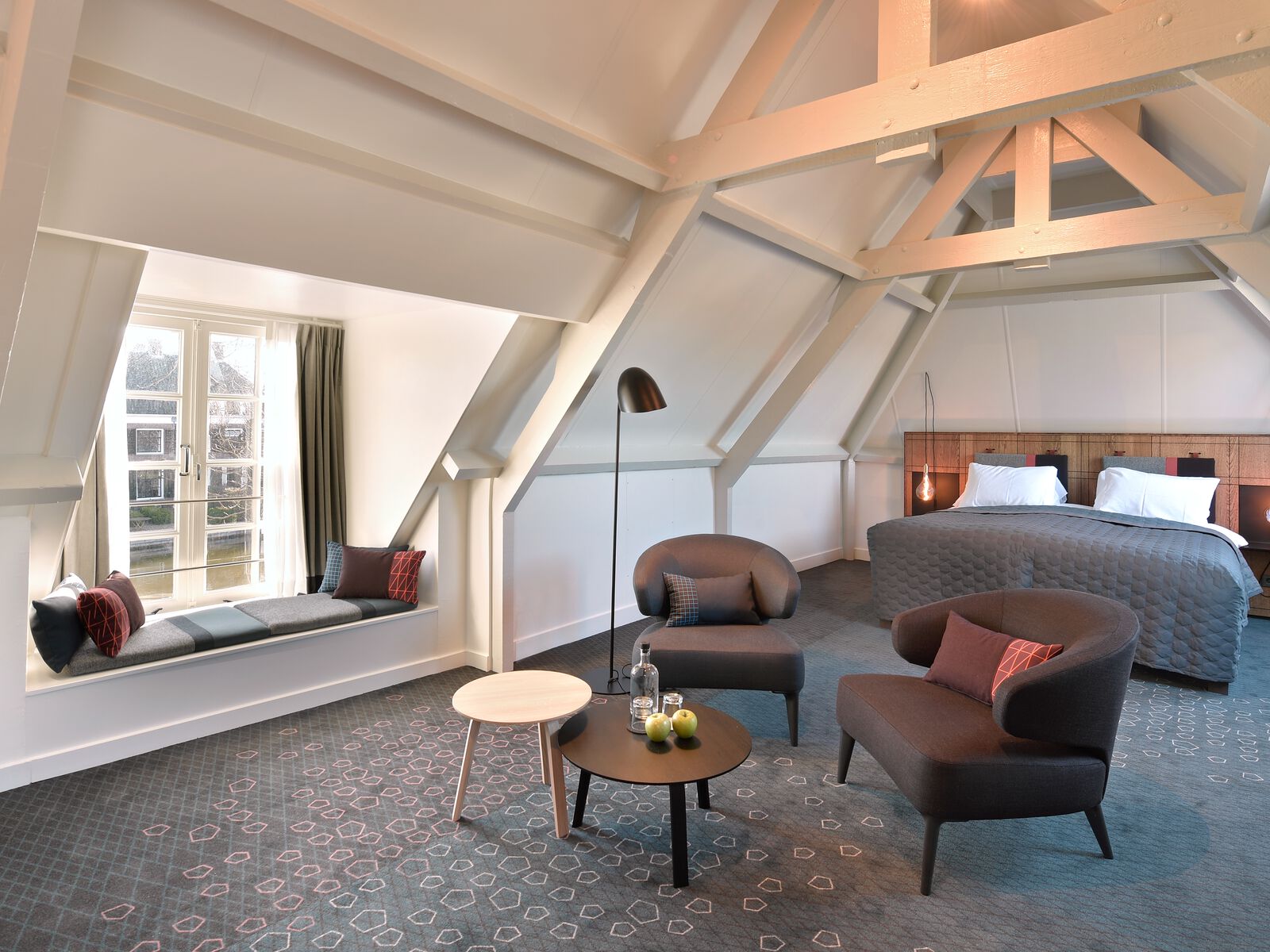 Er zijn in totaal 11 kamers beschikbaar voor 21 gasten. Er zijn 3 standaard kamers, 6 luxe kamers, 1 eenpersoonskamer met een eenpersoonsbed en 1 suite. De badkamers zijn voorzien van een apart bad en douche en er is airconditioning aanwezig. De kamers bevinden zich op de eerste en tweede etage en bieden grotendeels uitzicht op de Vecht. Vreeland is een rustig klein dorp, waardoor een goede nachtrust is gegarandeerd. De kamers zijn ingericht met Nederlandse designers, waaronder Nilson Beds, meubelen naar eigen ontwerp van de Fiction Factory en overige items van Hay Amsterdam. De kamers zijn comfortabel en van alle gemakken voorzien.