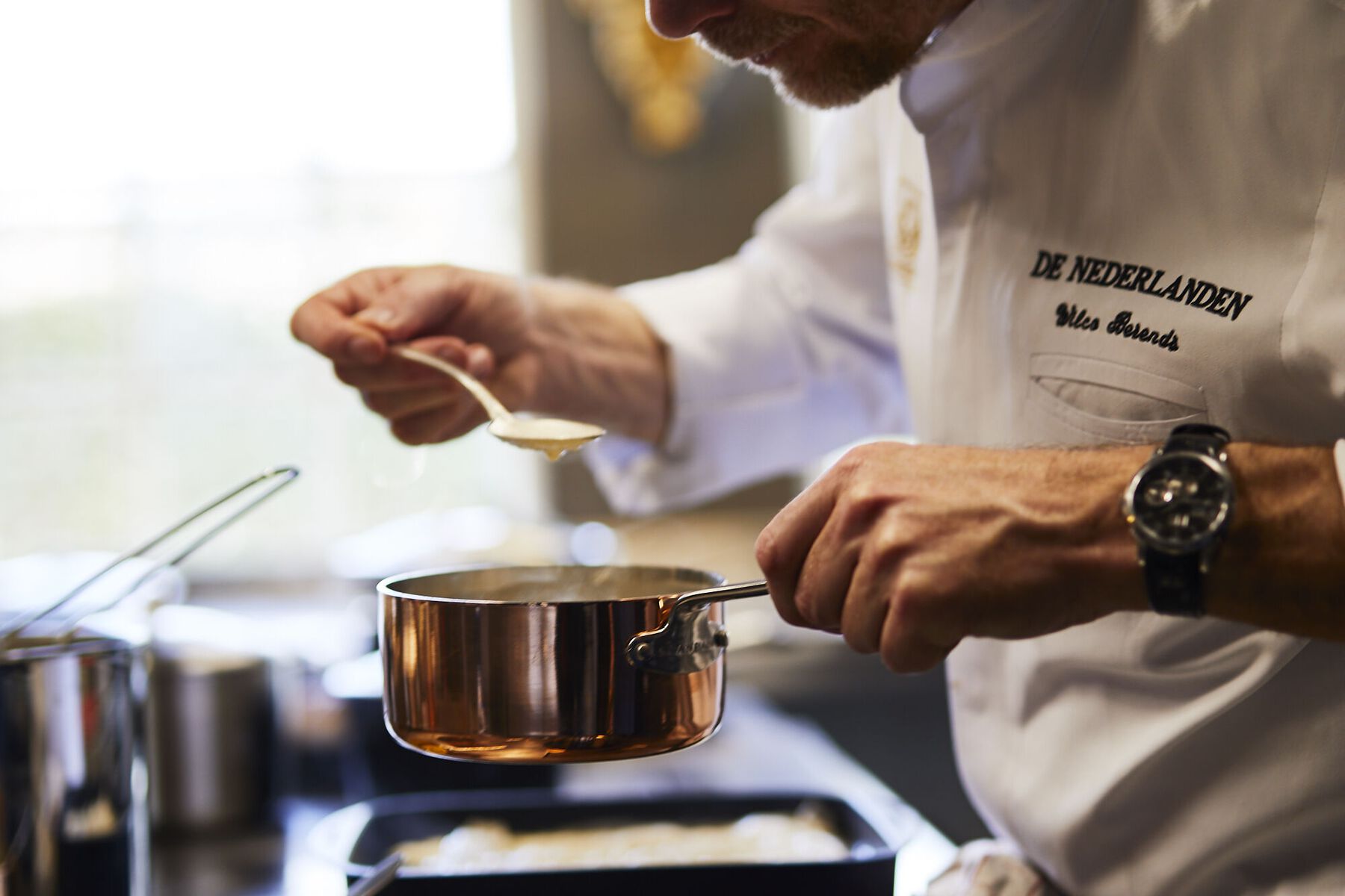 Restaurant & Boetiek Hotel De Nederlanden is zeer geschikt voor een zakelijke bijeenkomst. Er is een aparte ruimte beschikbaar, waar een culinaire maaltijd kan worden geserveerd. De Nederlanden heeft een klassieke uitstraling dankzij het historische pand uit 1680, gelegen aan de Vecht. Binnen bevindt zich een sfeervolle lounge die toegankelijk is voor een goede koffie en een aangeklede borrel. Het restaurant is modern, ingericht met comfortabele stoelen in een bijzondere ambiance. De private dining ruimte ligt op de begane grond en heeft een eigen terras op het zuiden. De 11 hotelkamers maken de faciliteiten compleet, alles onder één dak. Het restaurant heeft een Michelinster en alle gerechten, hapjes en bites van de hand van SVH Meesterkok Wilco Berends zijn voornamelijk gemaakt van lokale producten. De keuken is Frans met mondiale invloeden. De Nederlanden ligt op 15 minuten van Amsterdam.