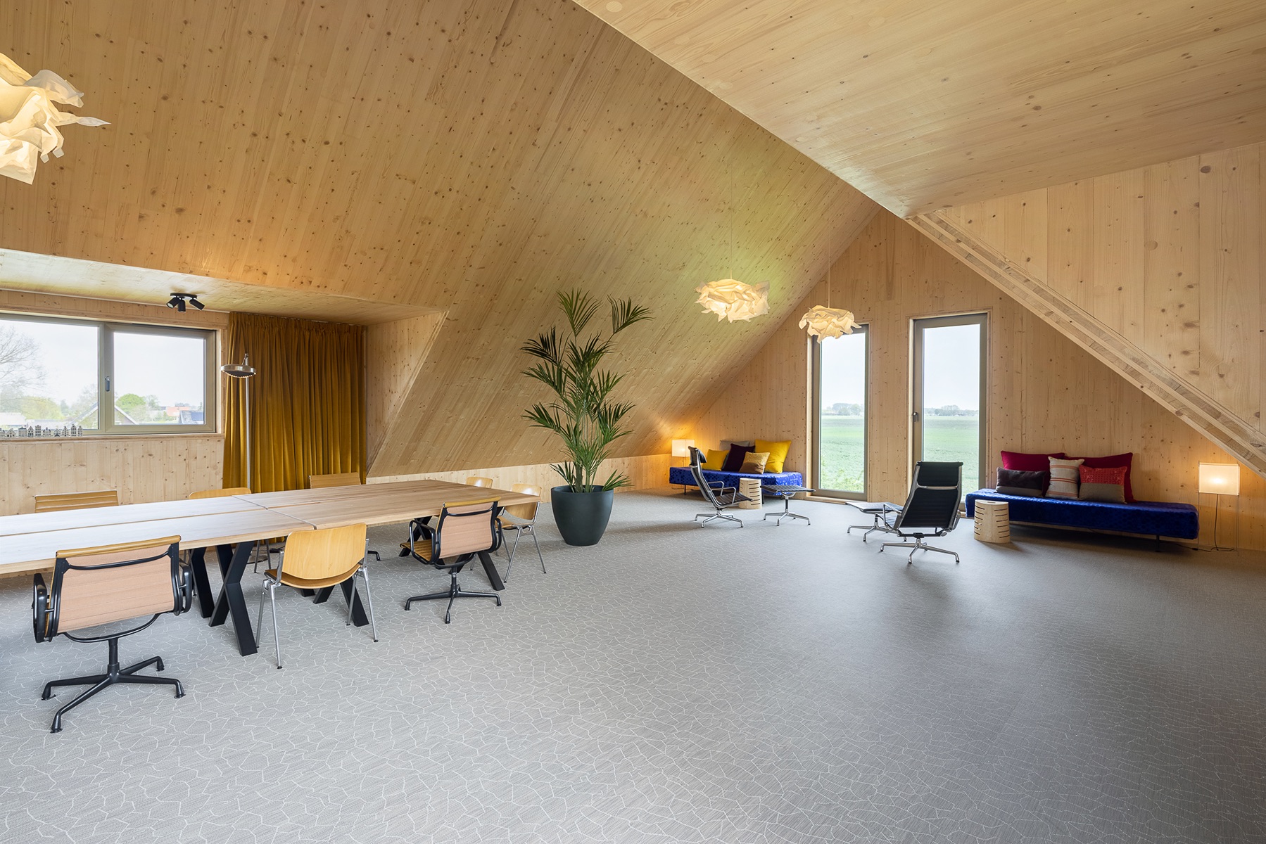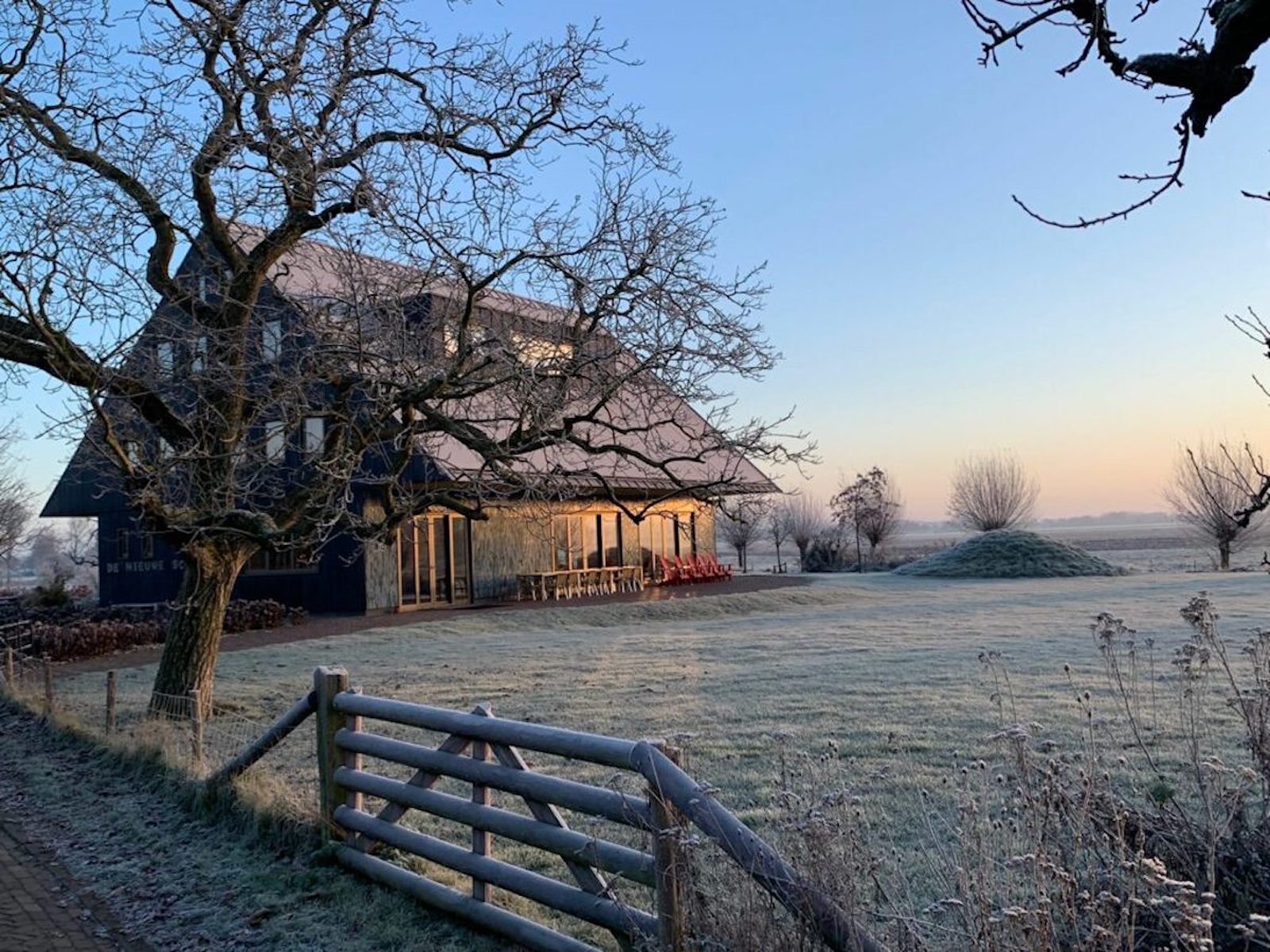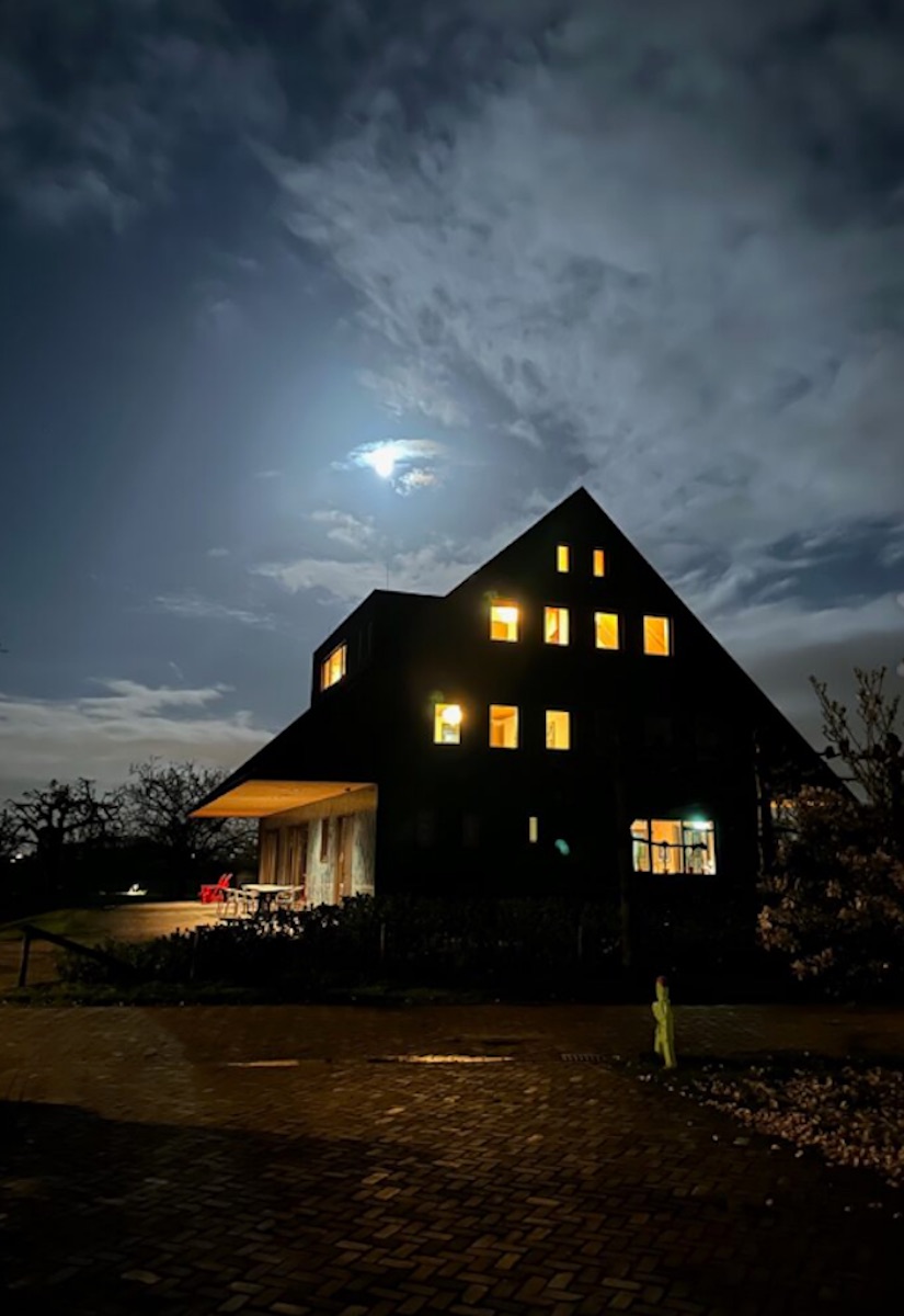 De Nieuwe Schuur, een ontwerp van Francine Houben van Mecanoo architecten, straalt poëtische kracht en beminnelijkheid uit. Je voelt de geborgenheid als je binnenkomt. Het weidse uitzicht rondom is fenomenaal.
