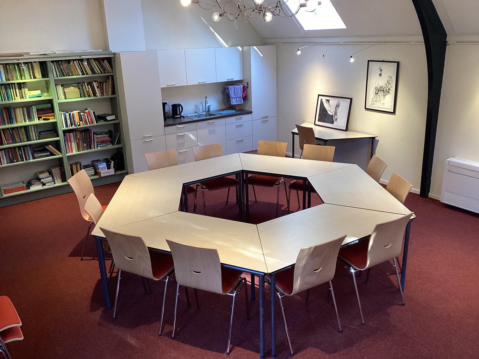De Kapel is het hart van het gebouw, met een unieke sfeer waarin de geschiedenis voelbaar is. Kenmerkend zijn de bakstenen bogen en glas-in-loodramen die kleurrijk licht binnenlaten. De Kapel biedt plaats aan maximaal 120 personen en is ideaal voor concerten, presentaties, lezingen, voorstellingen, bruiloften en uitvaarten. Beschikbaar: beeld- en geluidsapparatuur en een Yamaha C5-vleugel. De Grote Zaal heeft sfeervolle houten bogen en is flexibel in te richten. Geschikt als les- of vergaderruimte voor circa 30 personen. Stoelen en verrijdbare tafels kunnen naar wens worden opgesteld. De Kleine Zaal is perfect voor intiemere bijeenkomsten zoals meditatiegroepen, cursussen en vergaderingen, met plaats voor maximaal 16 personen. Beide zalen tonen wisselende kunstexposities.