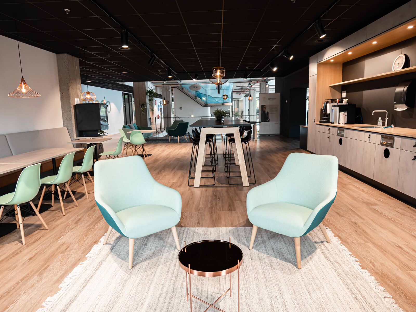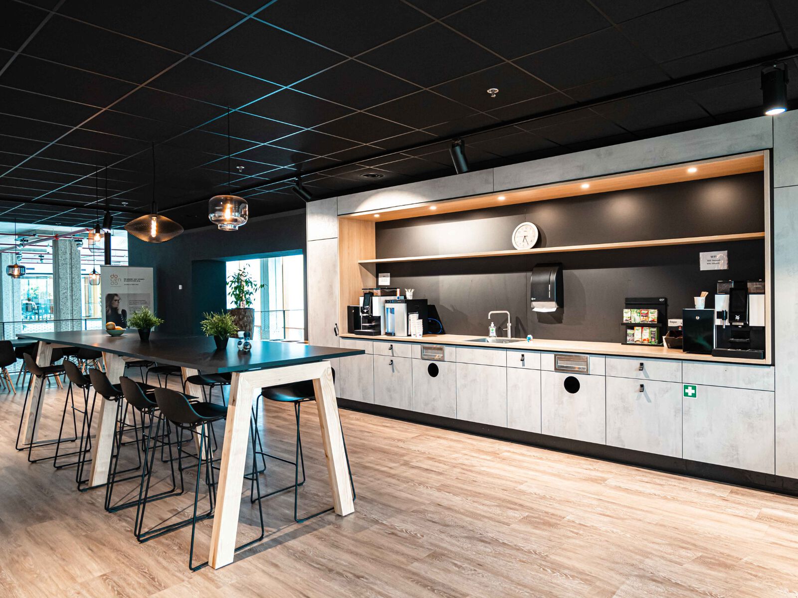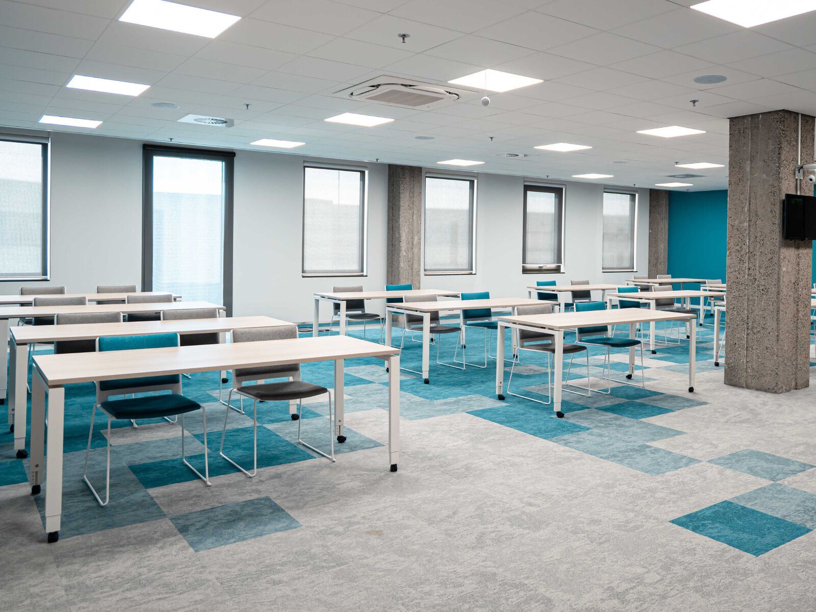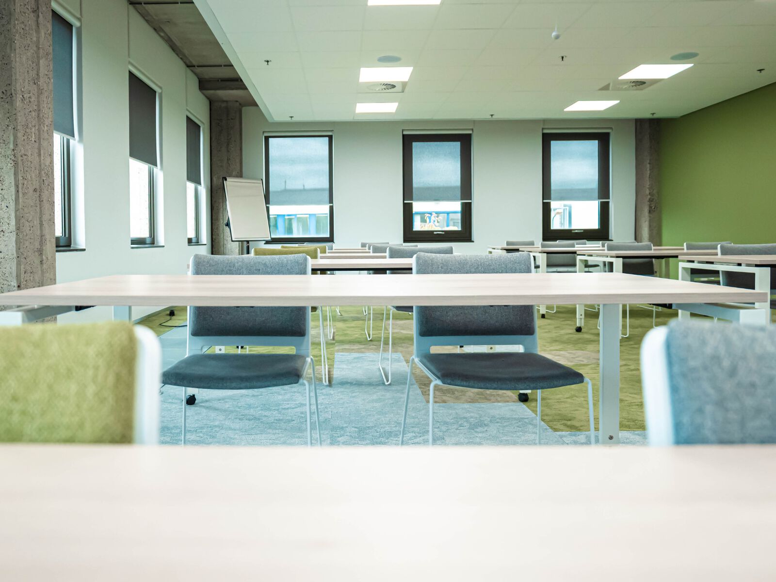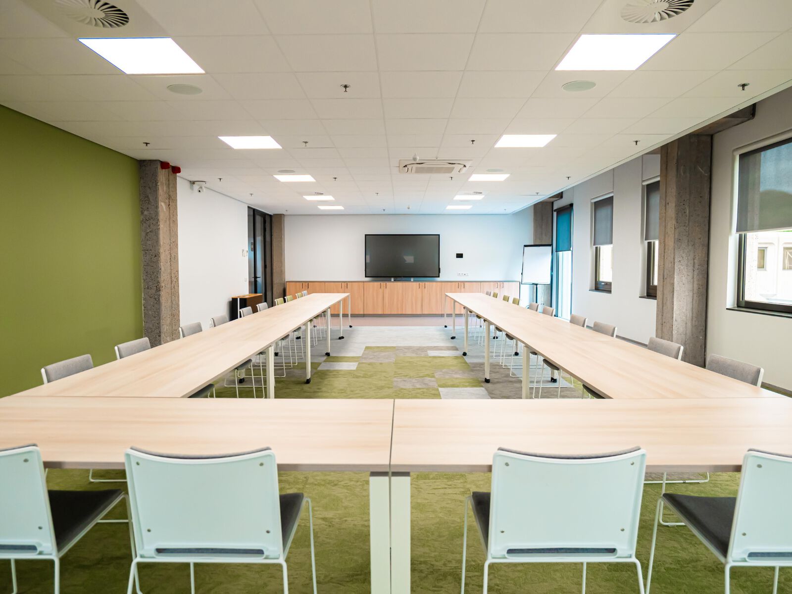 De kantoren en vergaderruimtes bevinden zich op de eerste etage van Markant. Dankzij een professionele en moderne atmosfeer voel je je snel thuis in het pand. De verdieping beschikt over 2 ruimtes met een ontspannen sfeer. In de ruimtes zijn lampen, een digibord met alle gewenste aansluitingen, een externe camera, een externe microfoon en (presentatie) beeldschermen aanwezig. Daarnaast is het aanpassen van de temperatuur mogelijk met zonneschermen en airco. Deze ruimtes zijn geschikt als leslokaal, presentatielokaal of vergaderlokaal. Het grote leslokaal is geschikt voor maximaal 40 personen. Het kleine leslokaal is geschikt voor maximaal 25 personen. Het is zichtbaar dat een dynamische en gezellige werkplek erg belangrijk is. De ruimtes beschikken over tafels en stoelen, die zowel in U-vorm als in de opstelling van een leslokaal kunnen worden geplaatst.