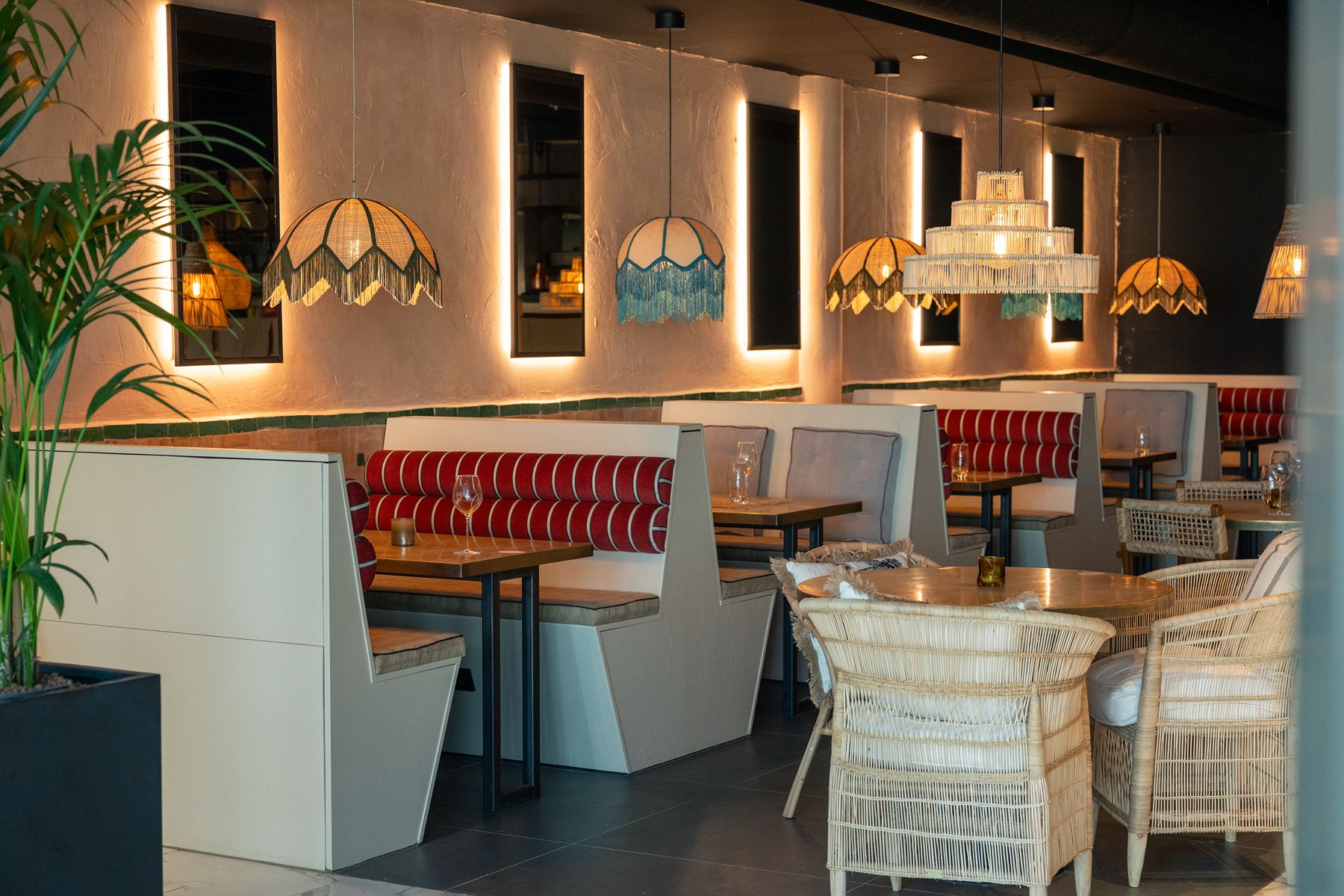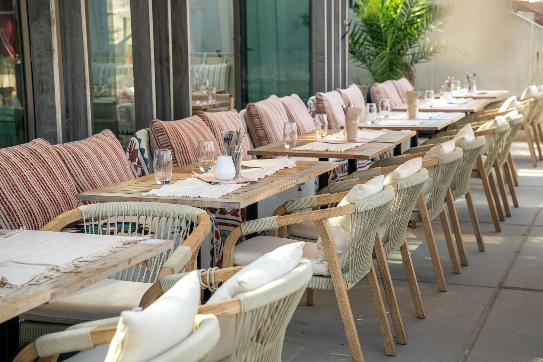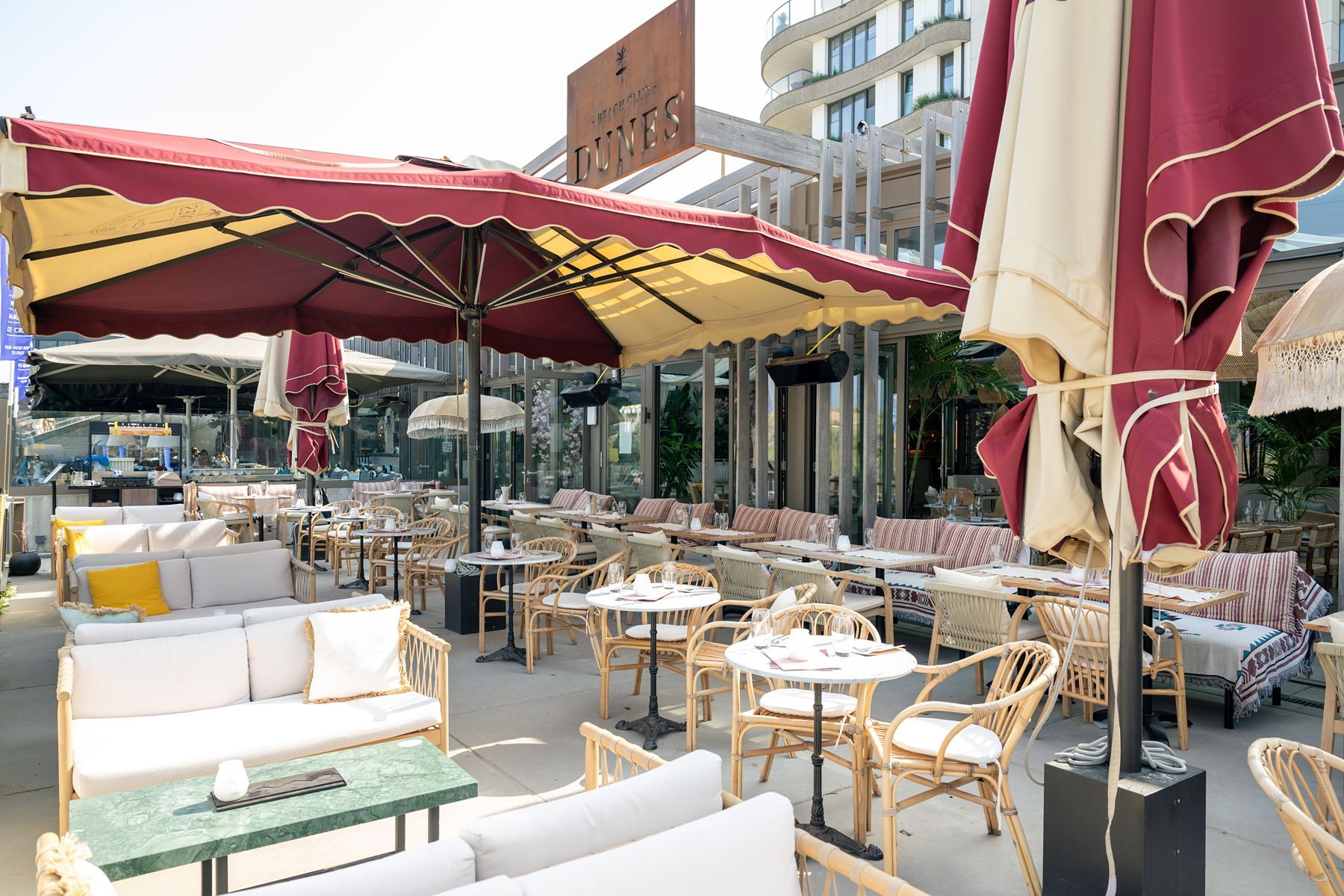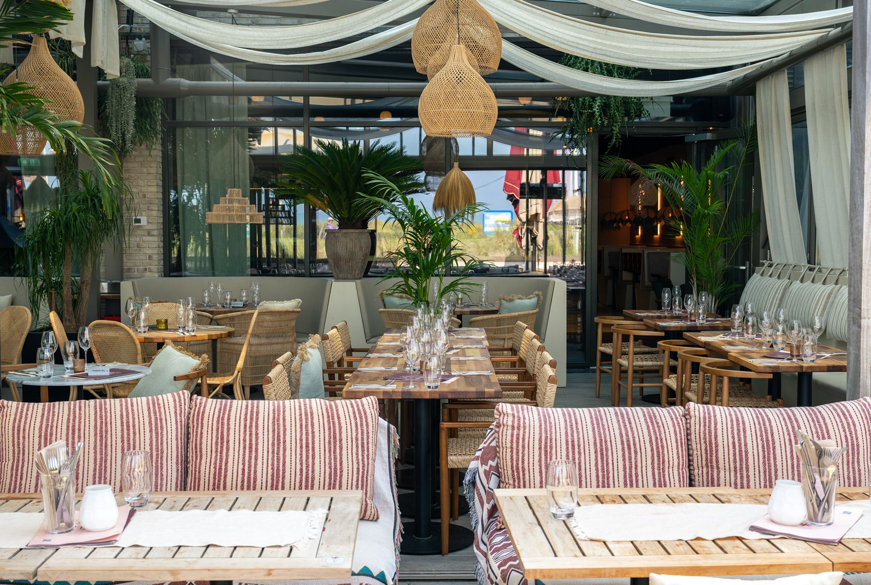 Stap binnen in een wereld van warme boho-beach vibes. Natuurlijke materialen, zachte aardetinten en speels bohemian design vormen een stijlvolle, luchtige setting. Of je nu kiest voor een zonnige serre, loungehoek of knusse booth, bij Dunes voel je je altijd thuis.