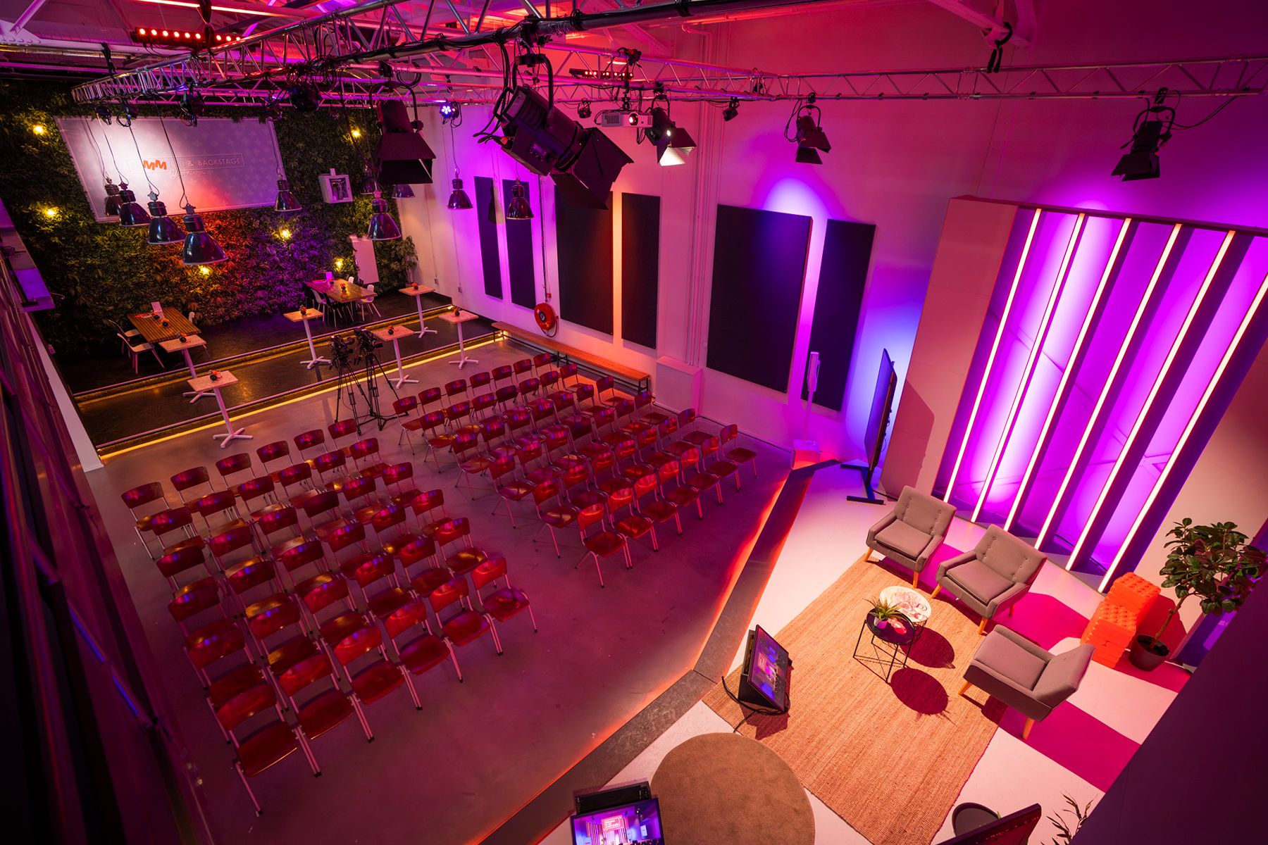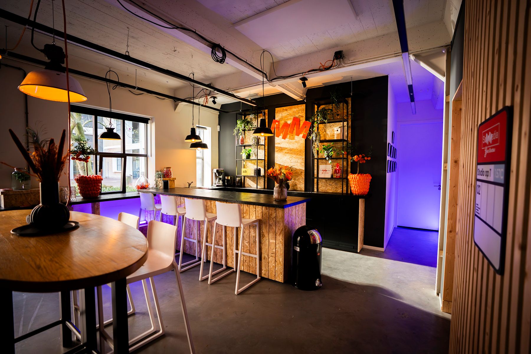 Studio op T, gelegen op het creatieve Strijp-T in Eindhoven, combineert modern design met geavanceerde technologie en een inspirerende sfeer. De ruimte is ideaal voor zakelijke evenementen zoals presentaties, netwerkborrels en workshops. De inrichting is stijlvol en functioneel, met hoogwaardig meubilair en een doordacht lichtplan dat de juiste ambiance creëert. De flexibele indeling zorgt ervoor dat elke bijeenkomst een unieke en professionele uitstraling krijgt. Of het nu gaat om een formele vergadering of een creatieve sessie, Studio op T biedt een gastvrije en dynamische omgeving die zich moeiteloos aanpast aan elke gelegenheid.