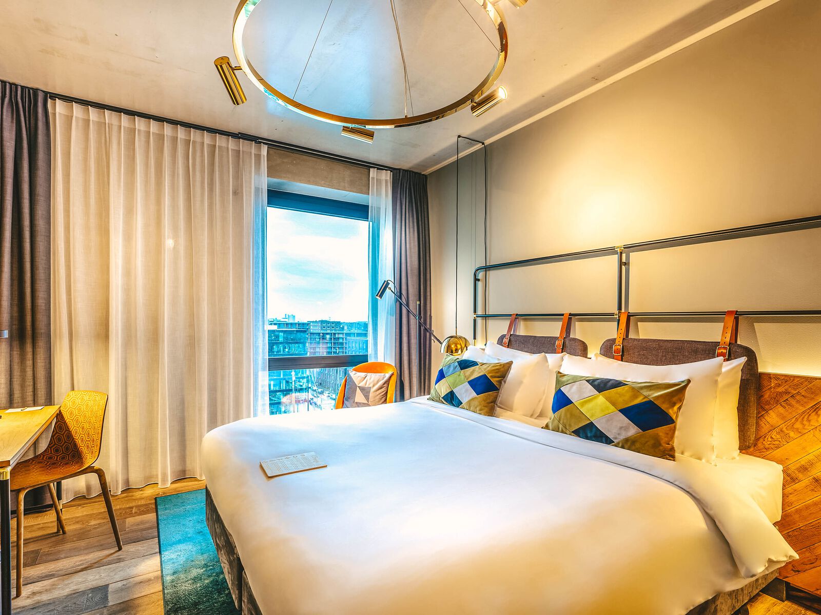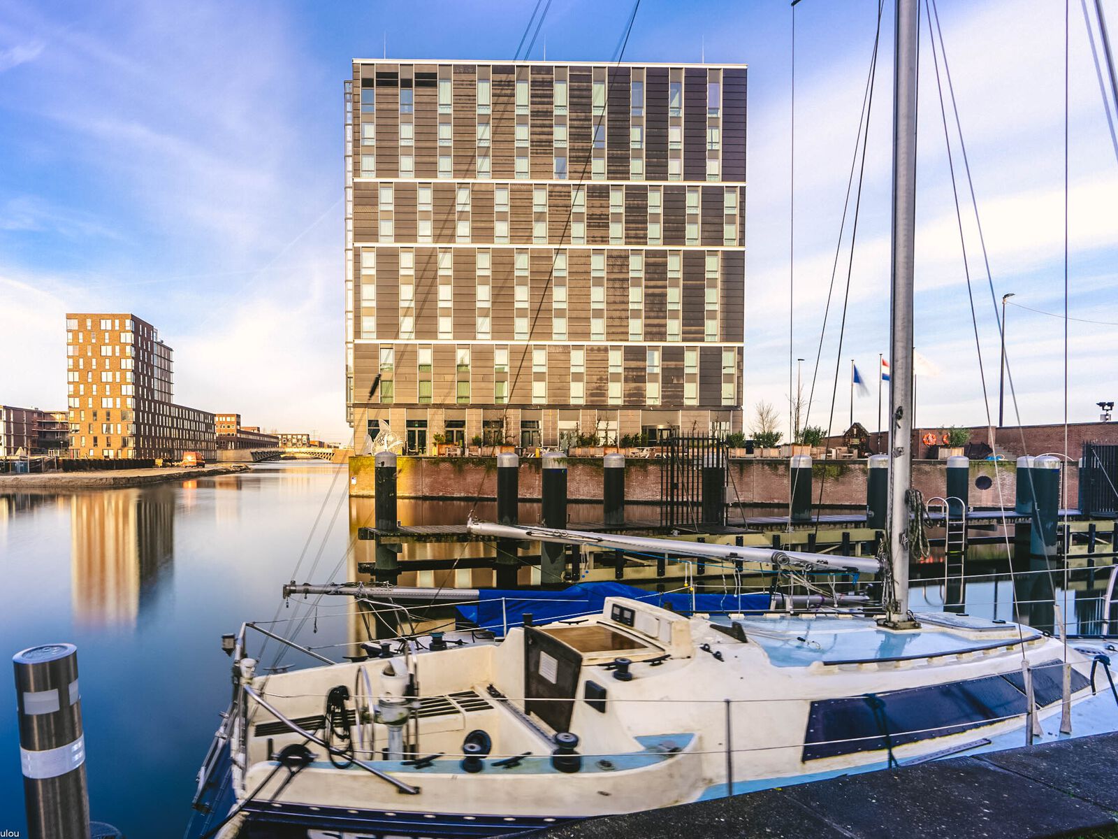 Het hotel is gelegen aan het mooie IJmeer in IJburg, een Amsterdamse wijk gebouwd op een archipel van kunstmatige eilanden. Pal voor de deur van het hotel ligt de prachtige haven van IJburg en het enige echte stadsstrand Blijburg bevindt zich op een paar minuten loopafstand van het hotel. De Bert Haanstrakade is een lange promenade langs het water, waar u een echt vakantiegevoel krijgt. U geniet van het prachtige uitzicht op het IJmeer en het vissersdorp Durgerdam.