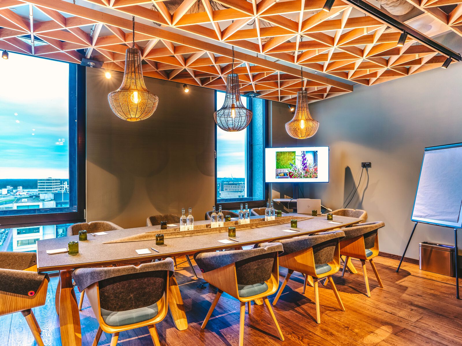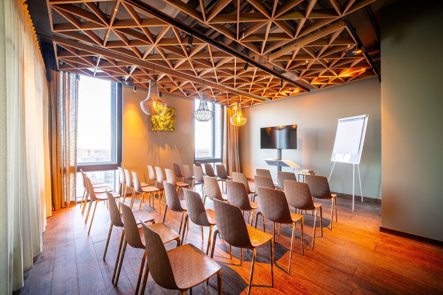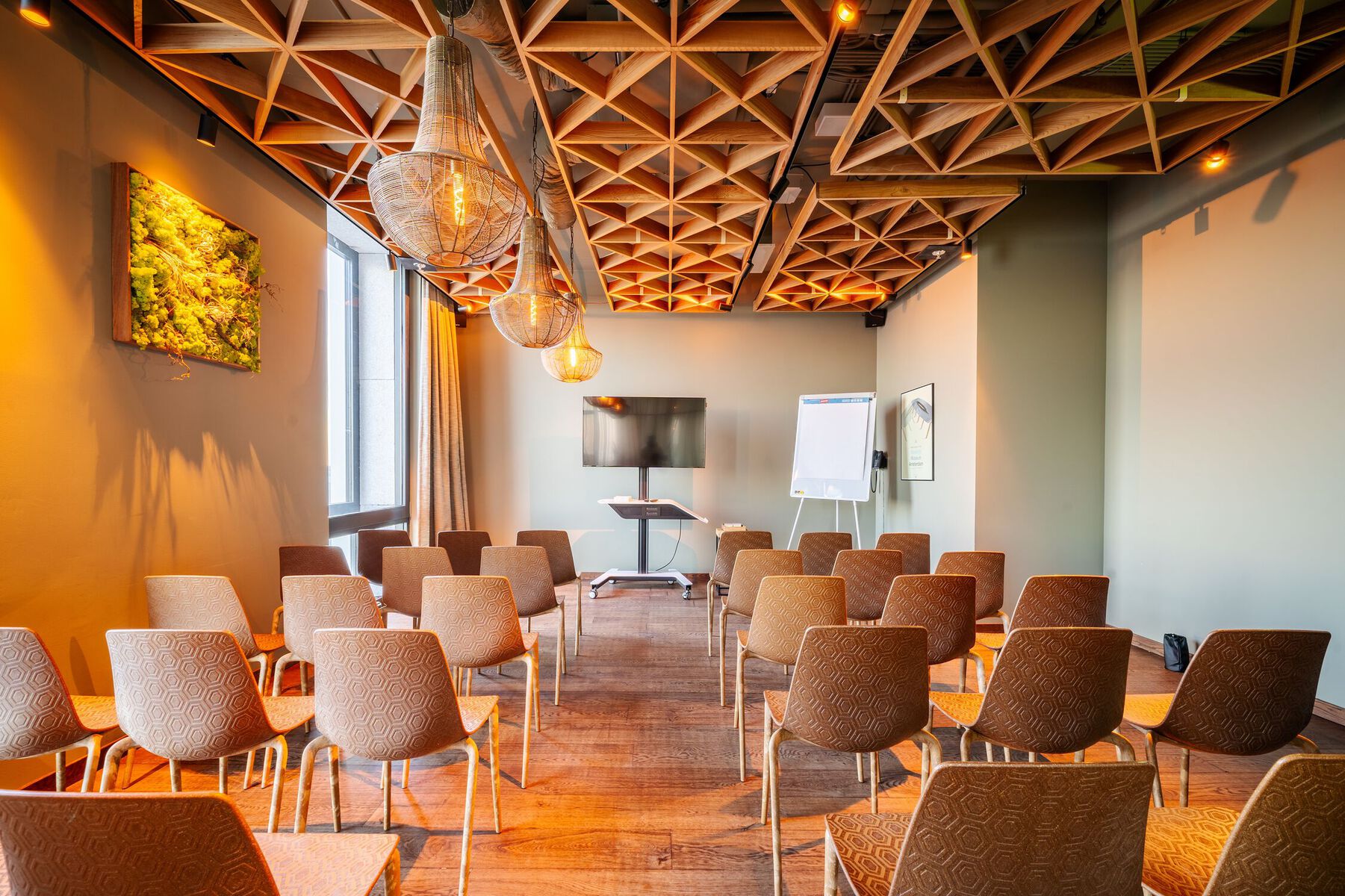 Four Elements Hotel Amsterdam is 's werelds eerste zero-energy hotel en is gelegen aan het mooie IJmeer in IJburg in Amsterdam. Het hotel telt 195 hotelkamers en 6 vergaderzalen. Duurzaamheid is de motivatie en het kompas waarop de koers is gebaseerd. Wat voor velen nog een verre toekomst is, is in het Four Elements Hotel Amsterdam een realiteit. Een zakelijk evenement, conferentie, presentatie of vergadering voor groepen van 2 tot 500 personen kan plaatsvinden in een van de bijzondere ruimtes Waterview Space, Plastic Whale, Harbour of Jonas. Een gezellig diner kan in de Private Dining room van Restaurant FIVE worden georganiseerd. Elegante cocktails in de Sky Bar - de mogelijkheden zijn legio en succes is gegarandeerd.