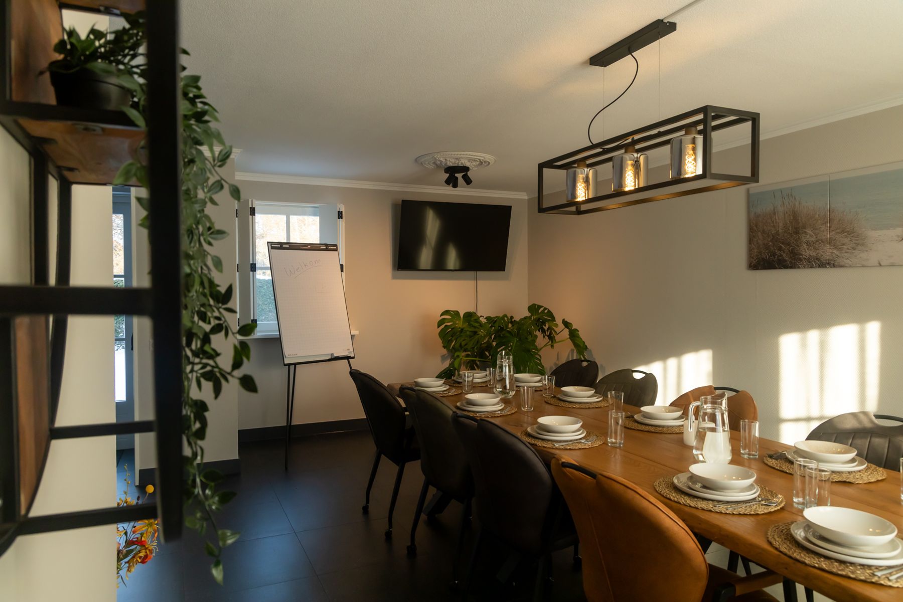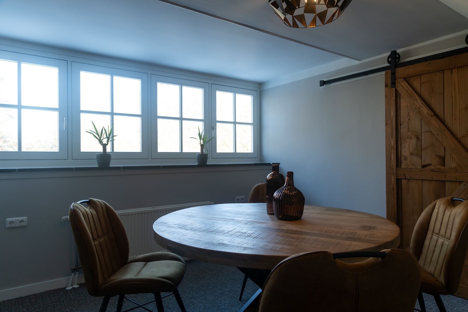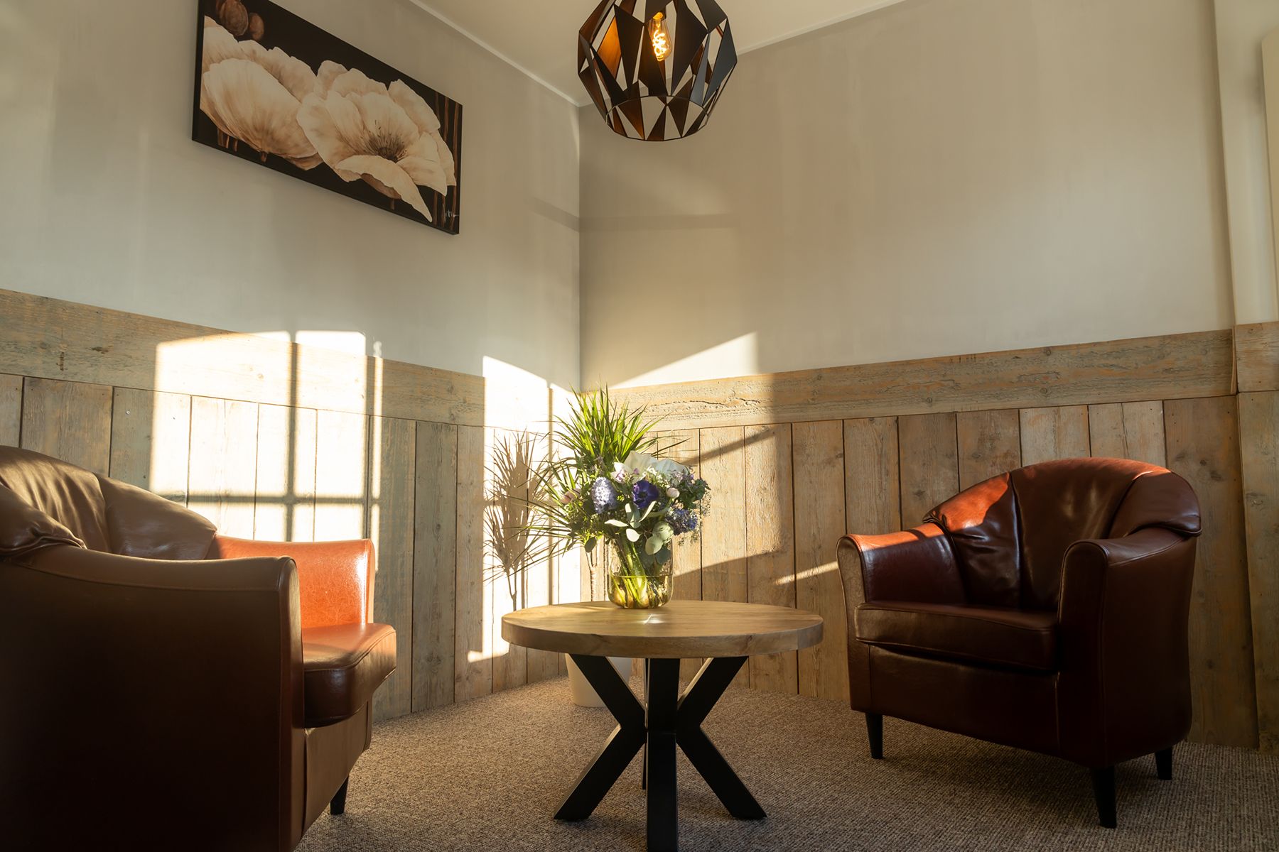 De vergaderlocatie grenst aan een groene omgeving. Hierdoor waant u zich in een groene oase. Er is voldoende parkeergelegenheid en ook voor een lunchwandeling is dit een perfecte uitvalsbasis.