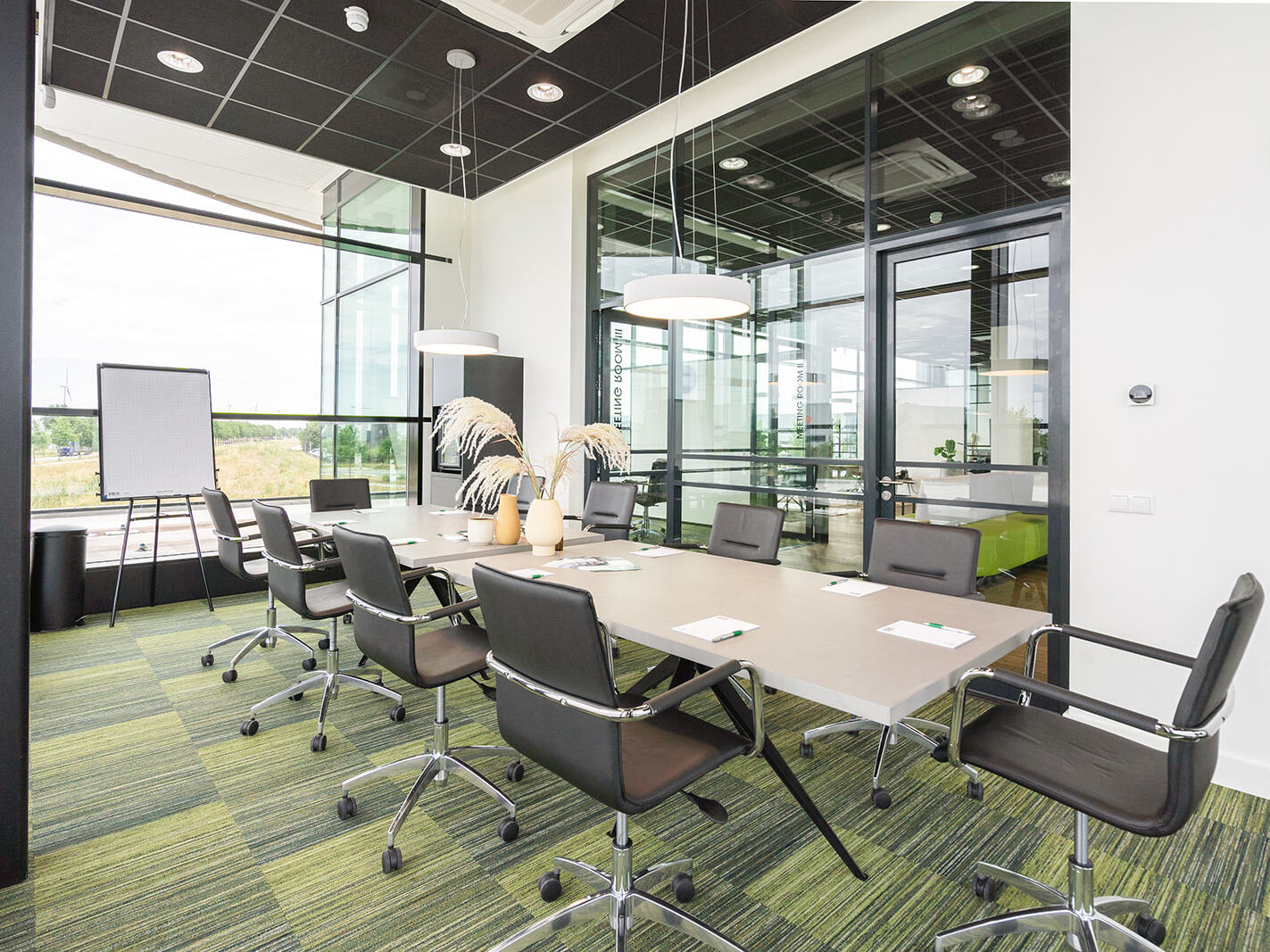 Ben je op zoek naar een centraal gelegen locatie om een hybride meeting, training, brainstormsessie of bijeenkomst te organiseren? Er zijn 5 verrassende, moderne ruimtes die geschikt zijn voor 6 tot 12 personen. Voor trainingen kunnen 20 personen worden ondergebracht in een effectieve opstelling. Het is ook mogelijk om hier een werkplek te huren om ongestoord te werken. Indien je de gehele locatie inclusief ruime lounge wilt afhuren, kunnen informele bijeenkomsten tot ongeveer 40 personen worden georganiseerd. De ruimtes zijn ingericht met modern meubilair, comfortabele business stoelen en hoge ramen met veel daglicht. De 5 meeting rooms van Greenport Center Sevenum voldoen vast en zeker aan al je eisen. De meeting rooms grenzen allemaal aan de ruime lounge, die met gezellige loungestoelen en veel groen is ingericht. Ontdek zelf de voordelen van het houden van je meeting of training op een externe, goed bereikbare locatie. Welkom bij Greenport Center.