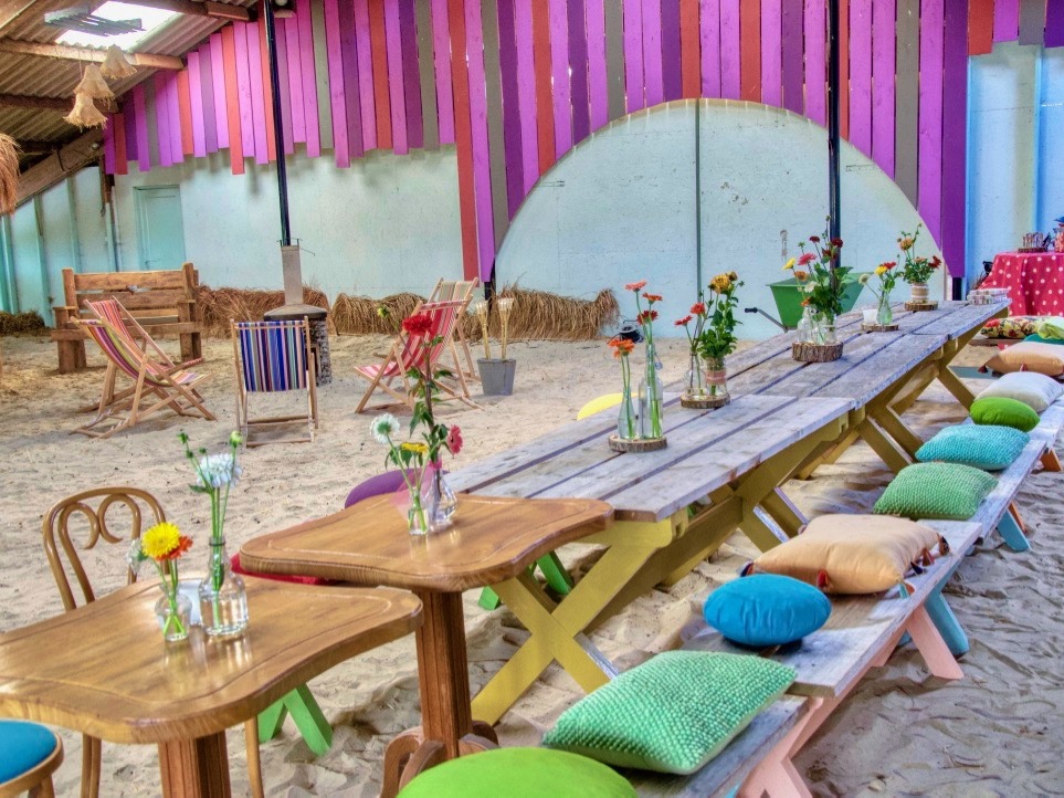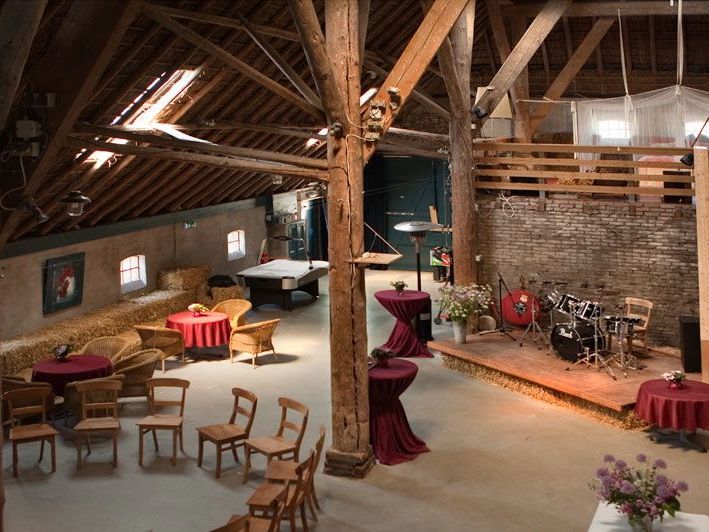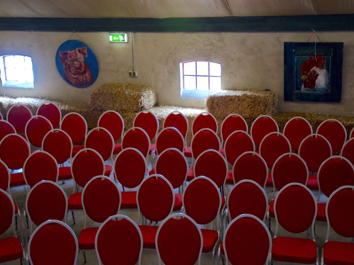 De centrale vergaderruimte bevindt zich in de grote, sfeervolle schuur. Diverse opstellingen zijn mogelijk: U-vorm, gevarieerde tafelopstelling, theater-tribune-opstelling. De ruimte is daarmee geschikt voor kleinere groepen tot grotere plenaire bijeenkomsten. Het faciliteren van teamtrainingen van rond 15 personen gaat uitstekend, evenals grote bijeenkomsten van maximaal 75 mensen. Wilt u in groepjes uiteen gaan? U kunt daarvoor gebruikmaken van de kleine vergaderruimte, de hooizolder en, met mooi weer, is het zeer plezierig vertoeven op het terras en in de boomgaard.
