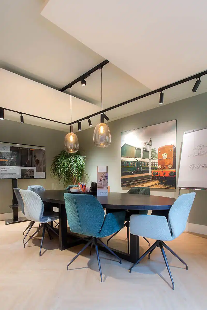 Tot en met 1941 stapte men hier in het Stationshuis op de trein. Nu is het een state-of-the-art meeting room met plek voor 6…
