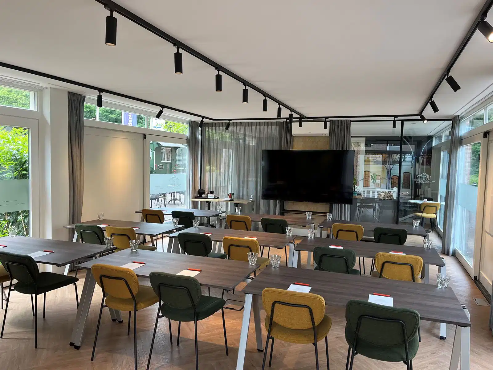 In de vergaderruimtes kun je gebruikmaken van airconditioning, een whiteboard, een flip-over en een tv-scherm. Kortom, alles wat je nodig hebt tijdens een vergadering, brainstorm of team-bijeenkomst.