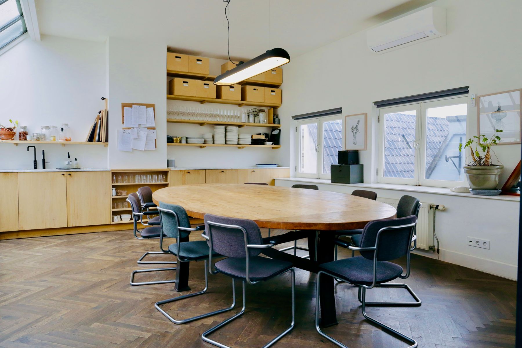 In hartje Amsterdam, te midden van de kleurrijke Bloemenmarkt, staat het oude Vaudeville Theater. Door de jaren heen zijn hier vele toneelstukken gespeeld. Op de bovenste verdieping is er een grote ruimte met een acht meter hoog plafond. De serre-achtige ramen kijken uit op de gracht en laten een overvloed aan licht binnen. Hoewel de locatie heel ruim aanvoelt, heeft het toch een huiselijke sfeer. Het is het perfecte decor voor inspirerende sessies en vergaderingen met kleinere groepen.