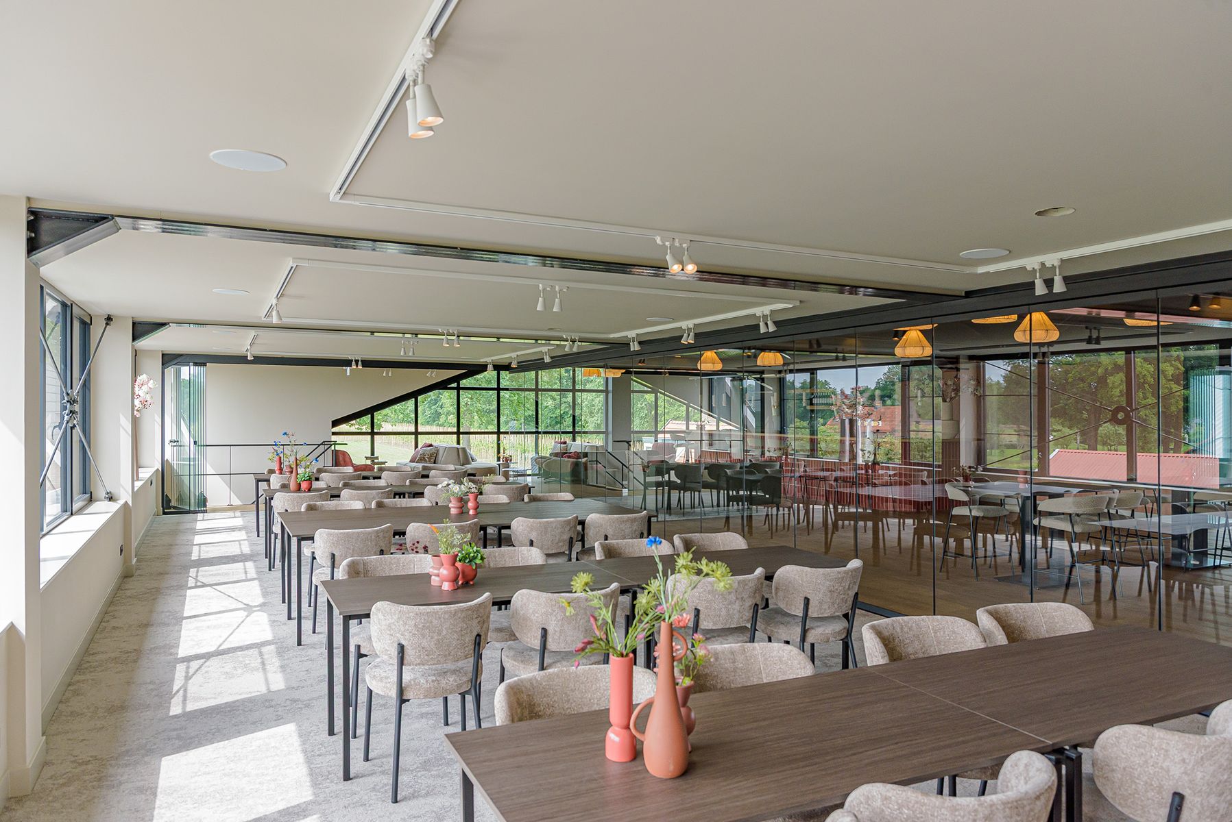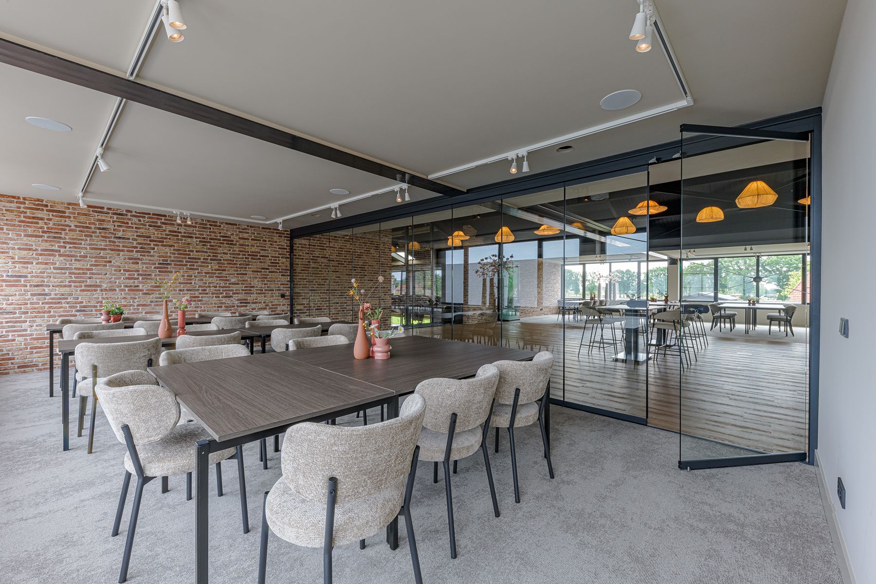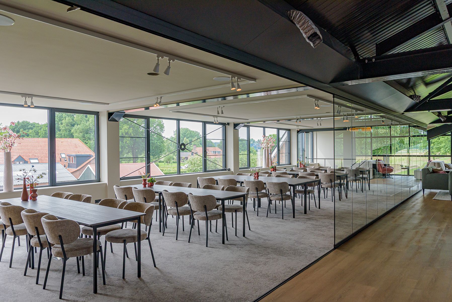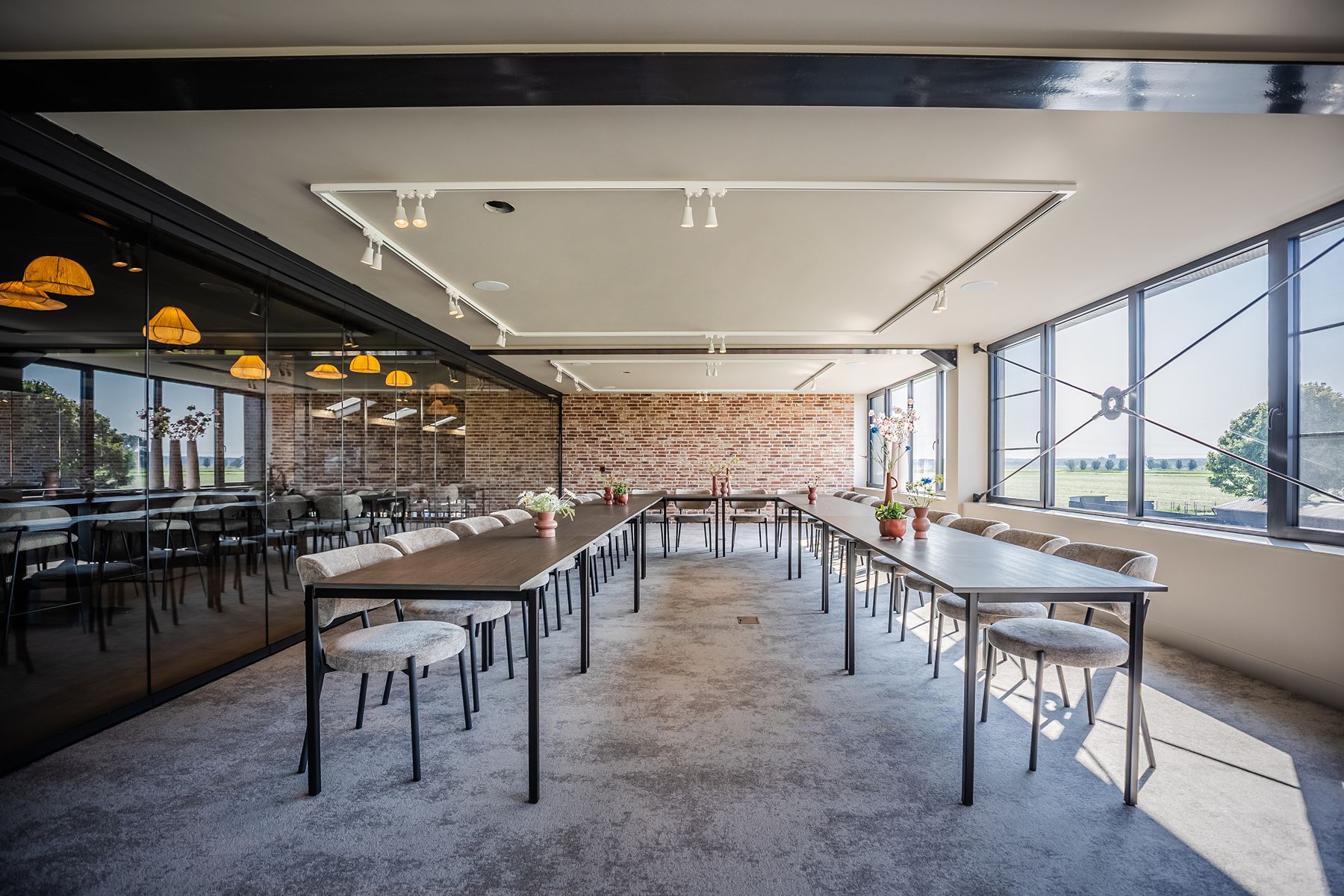De ruimte is ontworpen om te voldoen aan de behoeften van bedrijven die op zoek zijn naar een grote, bijzondere en luxe locatie. Of u nu een congres, presentatie, meerdaagse bijeenkomst, vergadering, teambuildingactiviteit of cursus organiseert, Hoeve de Wetering biedt een exclusieve en inspirerende omgeving. Wat de locatie extra bijzonder maakt, is het prachtige uitzicht op de koeienstal beneden. Met gratis parkeergelegenheid, wifi, hoogwaardige audiovisuele apparatuur en op maat gemaakte catering, zorgen wij ervoor dat elk aspect van uw bijeenkomst perfect is verzorgd.