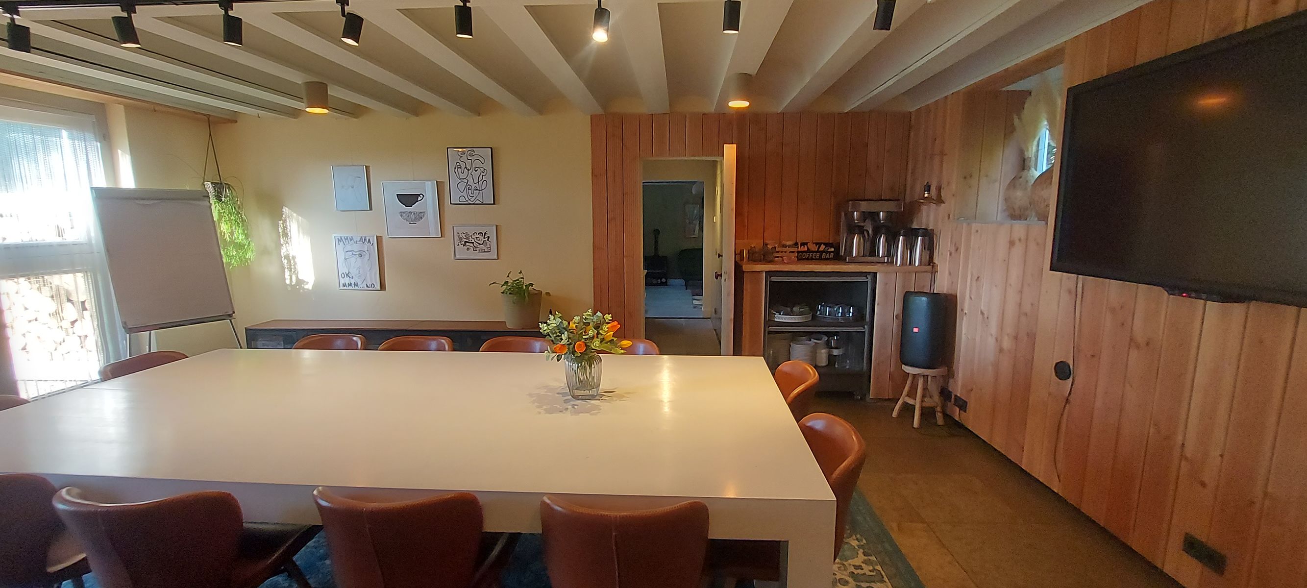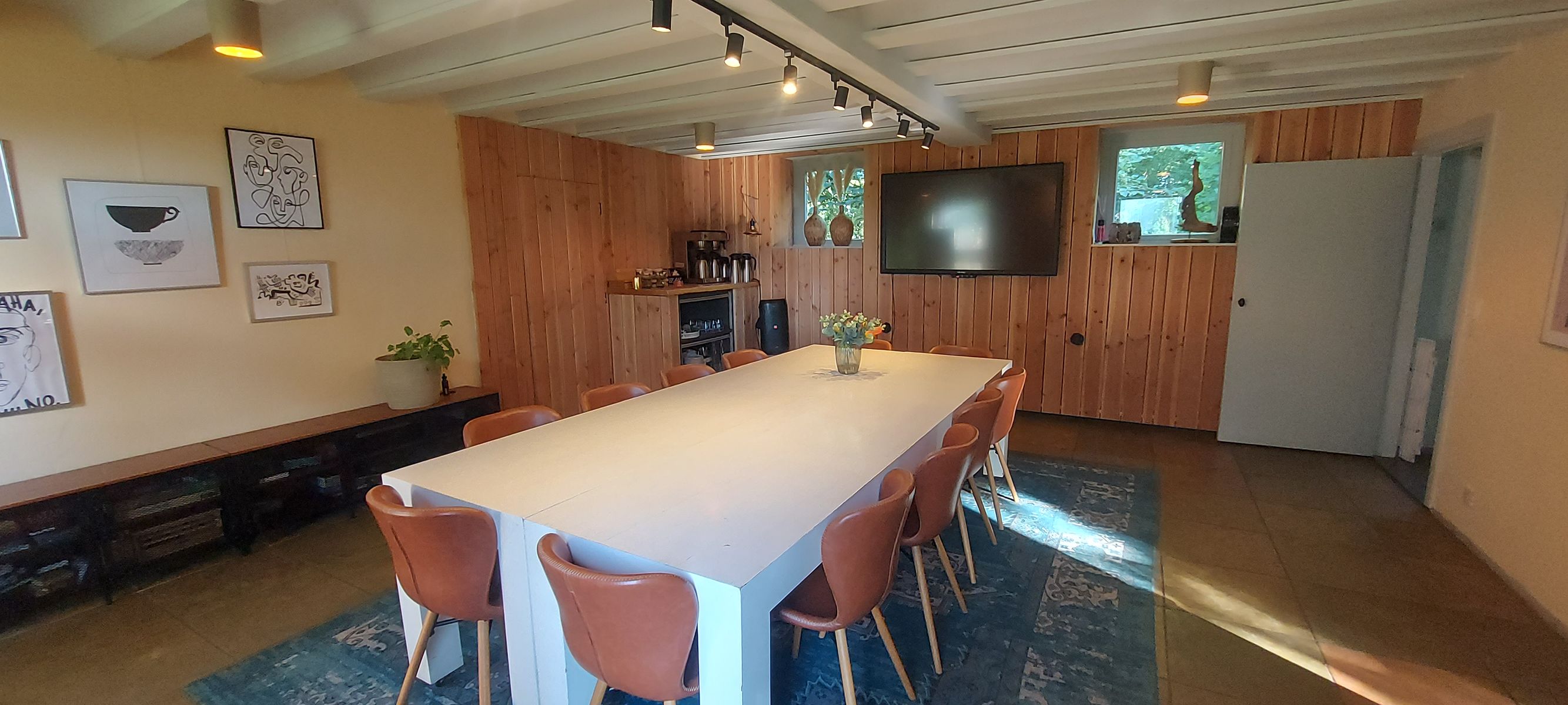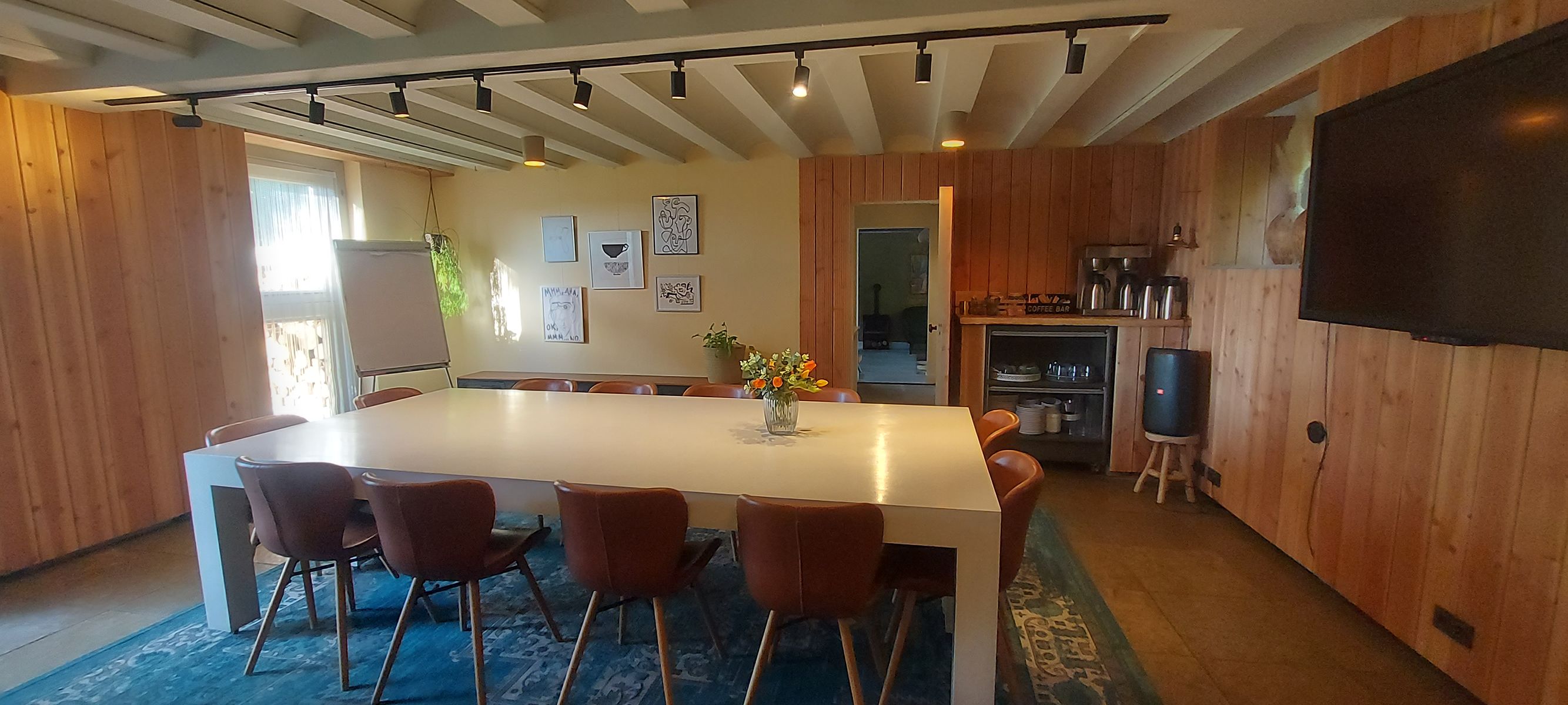 Vergaderen in een warme, huiselijke sfeer. Rust, persoonlijke aandacht en volledige ontzorging. De accommodatie biedt ruimte, privacy en een ontspannen sfeer midden in het groen. Een exclusieve, kleinschalige setting waarin iedereen zich direct op zijn gemak voelt. Door de grote ramen kijk je uit over de mooie tuin en de omliggende landerijen, een inspirerend uitzicht dat bijdraagt aan frisse ideeën en ontspannen gesprekken. Er zijn meerdere ruimten voor zowel kleine groepjes als wat grotere gezelschappen tot 12 personen. Intiem, sfeervol en tegelijk professioneel: de ideale plek om samen te werken, te overleggen of te brainstormen. Er wordt gezorgd voor een lunch op maat en de hele dag door worden lekkere verwennerijen aangeboden. U bent van harte welkom.