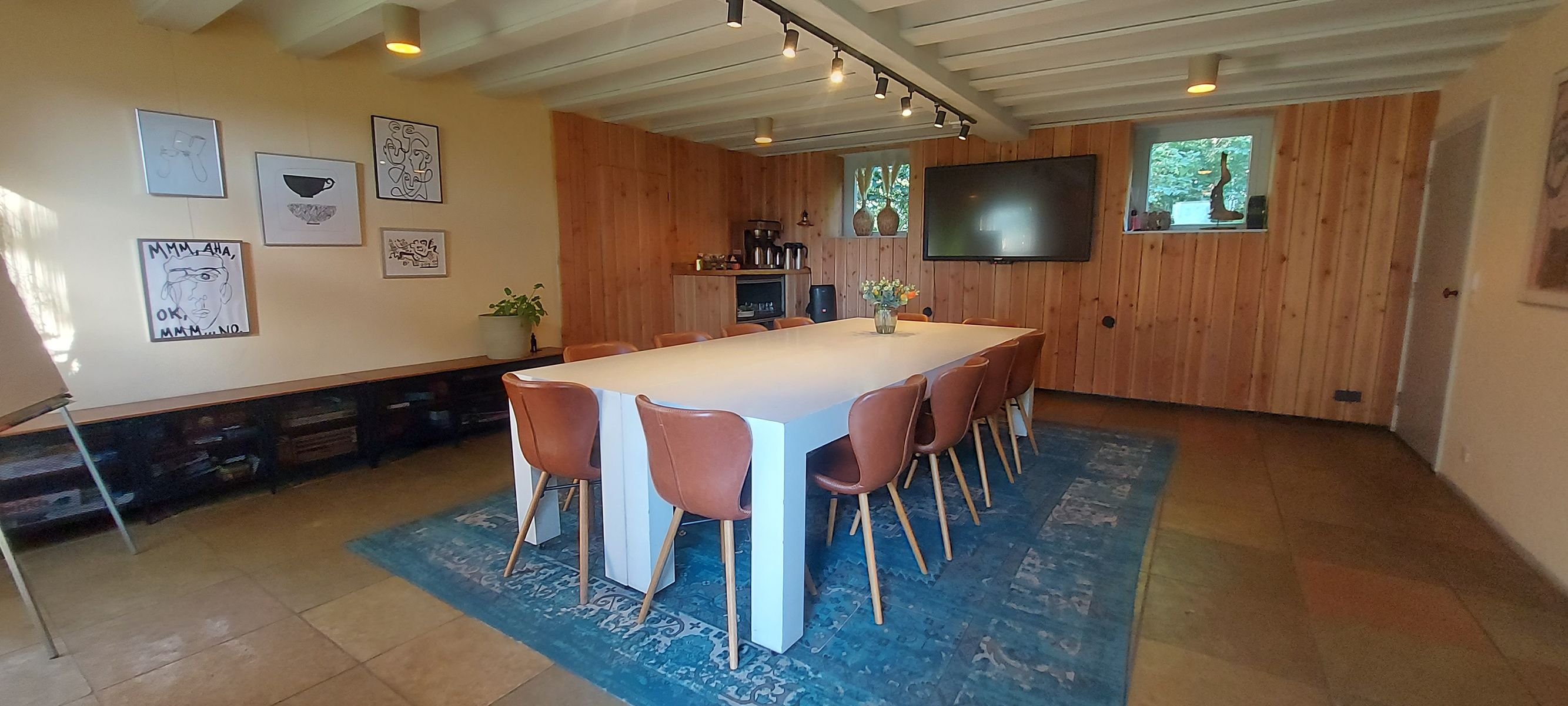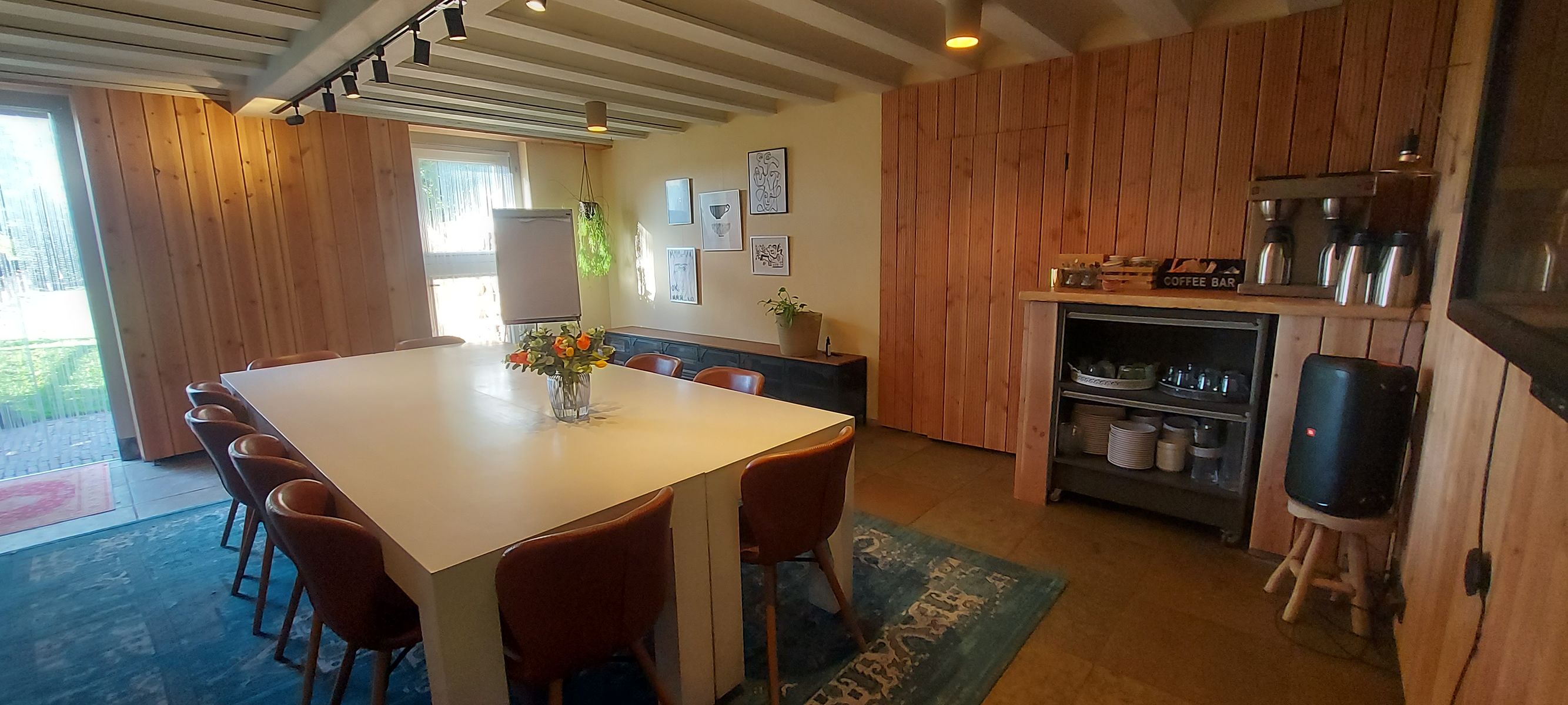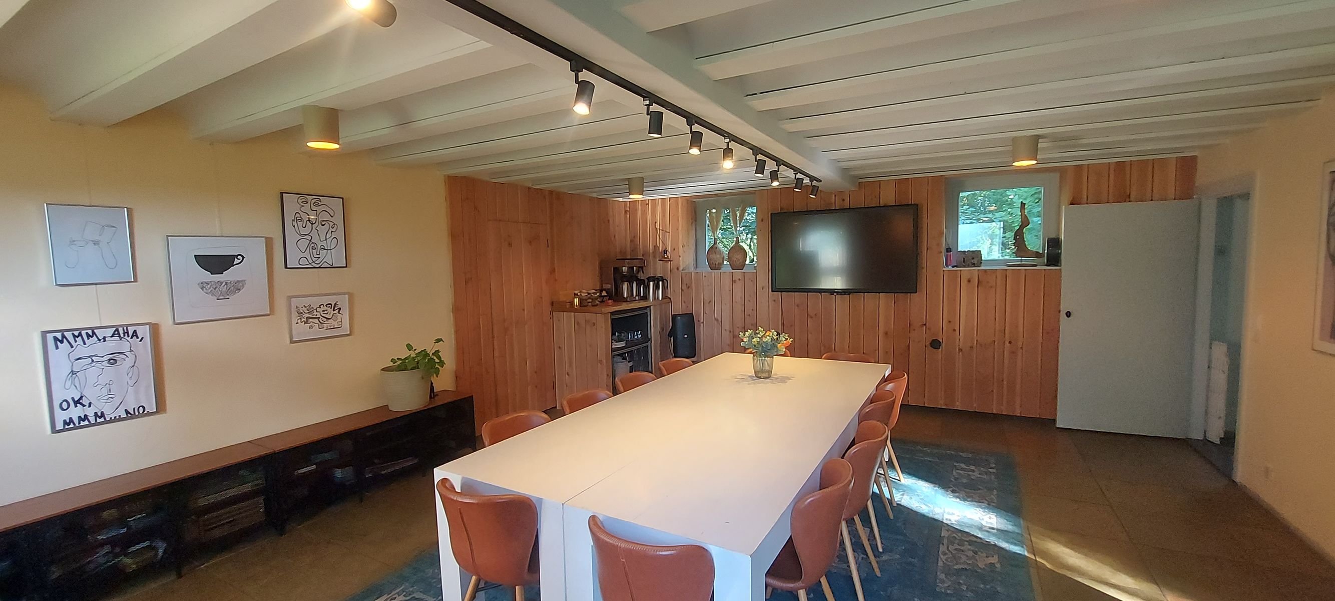 Vergaderen in een warme, huiselijke sfeer. Rust, persoonlijke aandacht en volledige ontzorging. De accommodatie biedt ruimte, privacy en een ontspannen sfeer midden in het groen. Een exclusieve, kleinschalige setting waarin iedereen zich direct op zijn gemak voelt. Door de grote ramen kijk je uit over de mooie tuin en de omliggende landerijen, een inspirerend uitzicht dat bijdraagt aan frisse ideeën en ontspannen gesprekken. Er zijn meerdere ruimten voor zowel kleine groepjes als wat grotere gezelschappen tot 12 personen. Intiem, sfeervol en tegelijk professioneel: de ideale plek om samen te werken, te overleggen of te brainstormen. Er wordt gezorgd voor een lunch op maat en de hele dag door worden lekkere verwennerijen aangeboden. U bent van harte welkom.