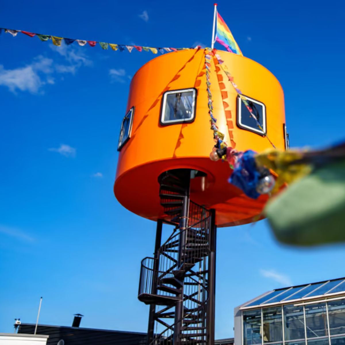 Onverwacht en onvergetelijk: Hoogtij is de eventlocatie voor wie groots durft te denken. Gelegen in Amsterdam-Noord, met een adembenemend uitzicht over het IJ en de skyline van Amsterdam, biedt deze eigenzinnige plek ruimte voor unieke events. In het hart van Hoogtij vind je vijf bijzondere ruimtes, elk met een eigen karakter. De Kas, een glazen pareltje met panoramisch uitzicht, is perfect voor diners, presentaties en feesten. Het Daktheater biedt een intieme setting voor ceremonies, presentaties en optredens. De Gym is een flexibele ruimte die zich moeiteloos aanpast aan elk evenement, van brainstormsessies tot presentaties. De Oranje Toren is ideaal voor een bijzondere ontvangst, een inspirerende brainstorm of gewoon om te genieten van het geweldige uitzicht. En dan is er nog het Dakterras, een groene oase met het allermooiste uitzicht over de stad, perfect voor borrels, diners, barbecues en meer.