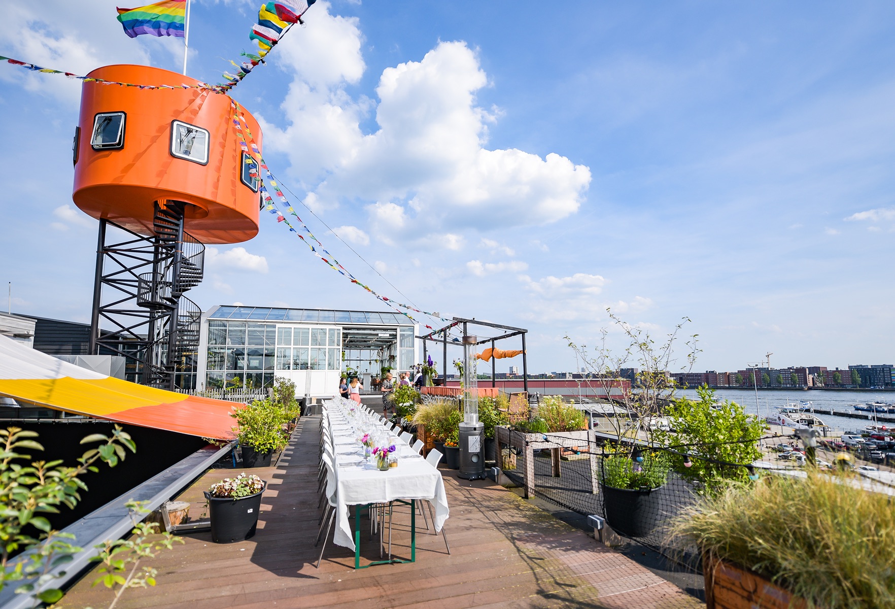 Een plek waar natuur, kwaliteit, cultuur en events op grote hoogte samenkomen. Met panoramisch uitzicht over het IJ ontsnap je aan de drukte van de stad, maar sta je ook zo in het bruisende hart van Amsterdam. Zo ver als jouw fantasie gaat, zo flexibel zijn wij. Of je nu een productpresentatie, bedrijfsfeest, netwerkborrel, kerstdiner, modeshow, rooftop barbecue, receptie of jubileum plant, het team staat klaar om jouw evenement naar een hoger niveau te tillen.
