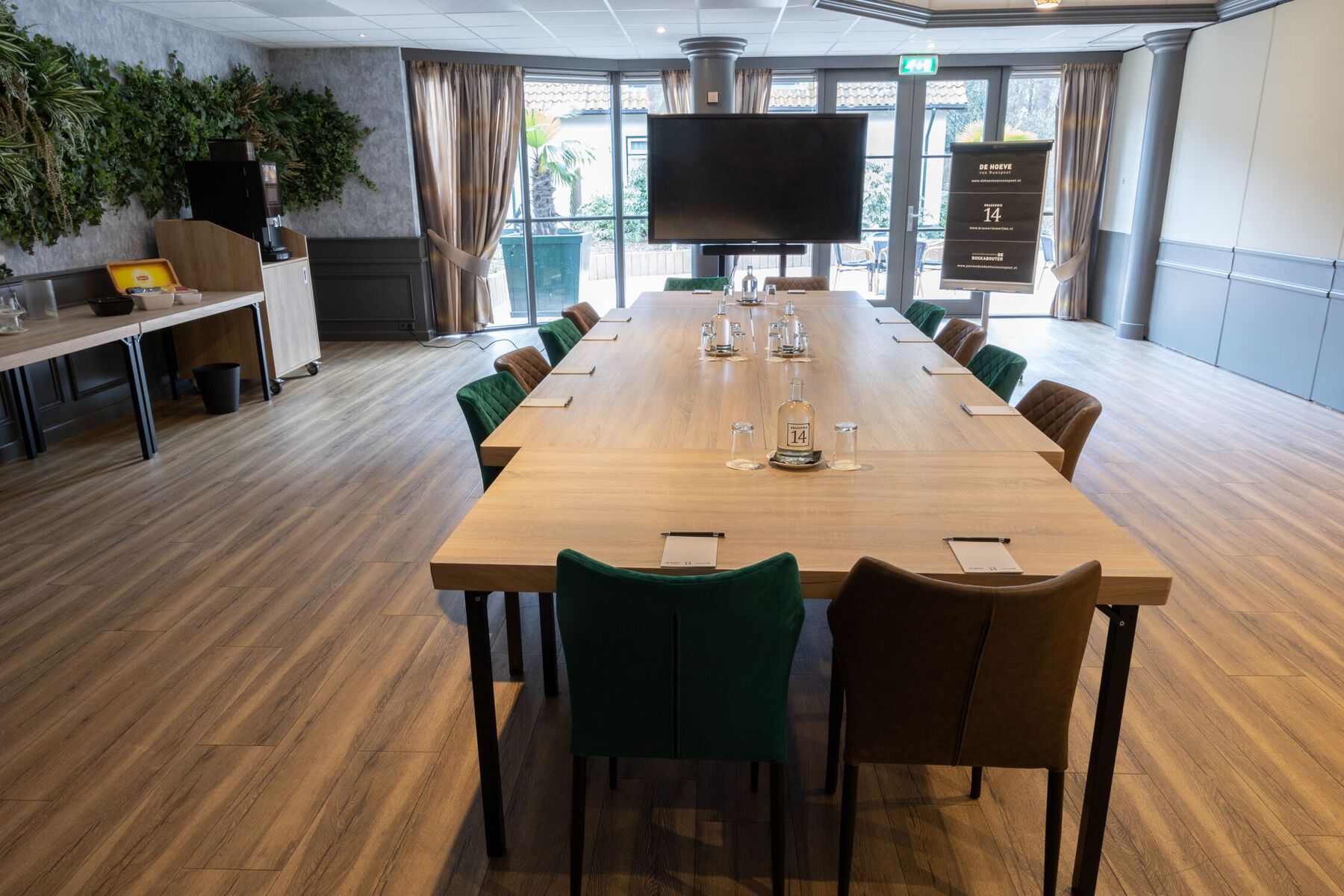 Even weg uit de dagelijkse sleur? Kom vergaderen bij hotel De Hoeve van Nunspeet. Goed bereikbaar en prachtig gelegen in de Veluwse bossen. Daarnaast zijn er diverse ruimtes die geschikt zijn voor vergaderingen, brainstormsessies, trainingen, conferenties, beurzen, seminars, bedrijfsfeesten of relatiedagen. Er kan met veel plezier een arrangement worden samengesteld dat volledig aansluit op uw wensen. Van teamuitje tot overnachten, van ontbijt tot diner, er wordt graag met u meegedacht. Alle zalen zijn voorzien van airco, telefoon en wifi. Audiovisuele hulpmiddelen als een beamer, flipover en scherm staan gebruiksklaar in de zaal.