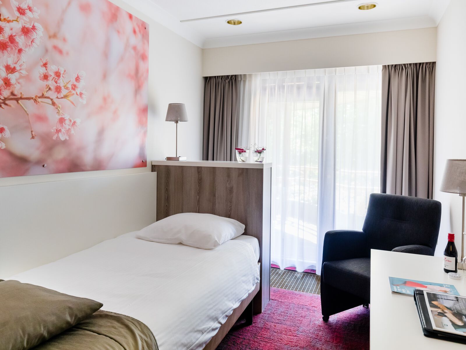 Comfort | Comfortabele 2-persoonskamers, gelegen aan de zij- of achterzijde van het hotel. Deze kamers zijn voorzien van flatscreen-tv, koffiemachine en kluisje. De badkamers beschikken over een föhn, douche of bad.