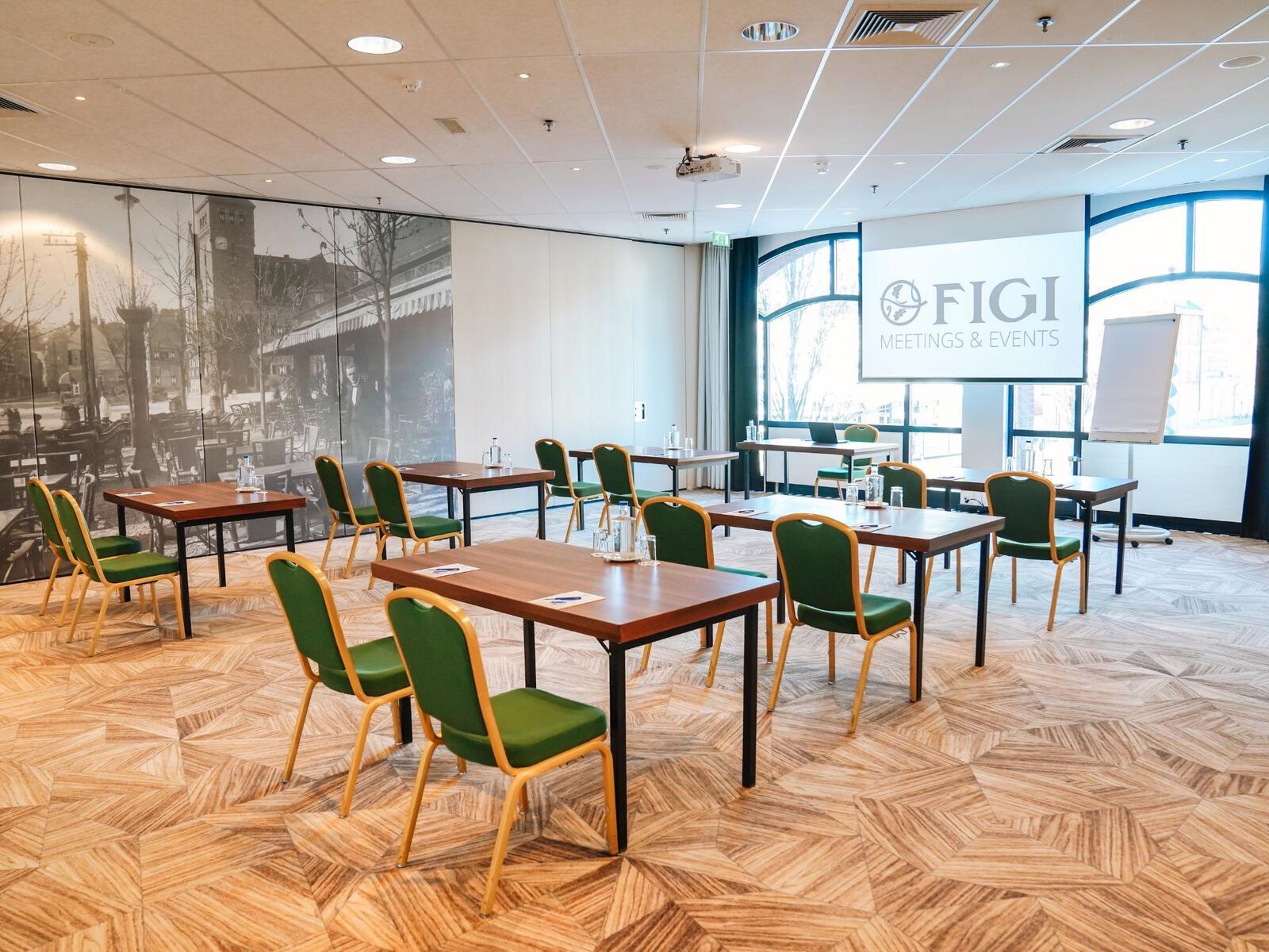 Van een private diner op het toneel, trainingsdagen met overnachting tot aan een beurs voor 1.500 gasten, het kan allemaal. Hotel Theater Figi beschikt over twee theaterzalen, twee bioscoopzalen en acht eventzalen met veel daglicht, historische fotowanden en bijbehorende techniek. Het atrium is het hart van Hotel Theater Figi, perfect als welkomstruimte of voor een borrel.
