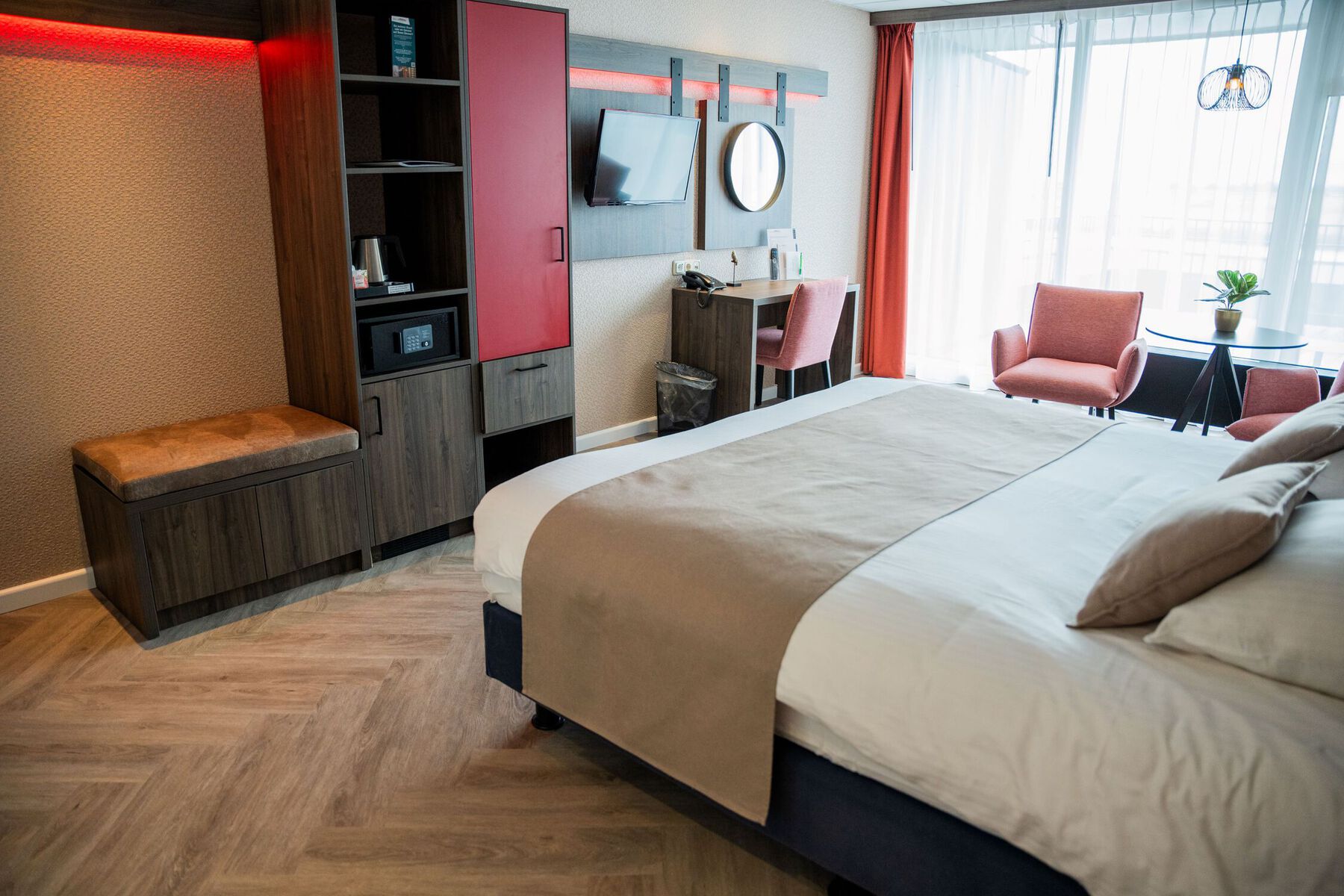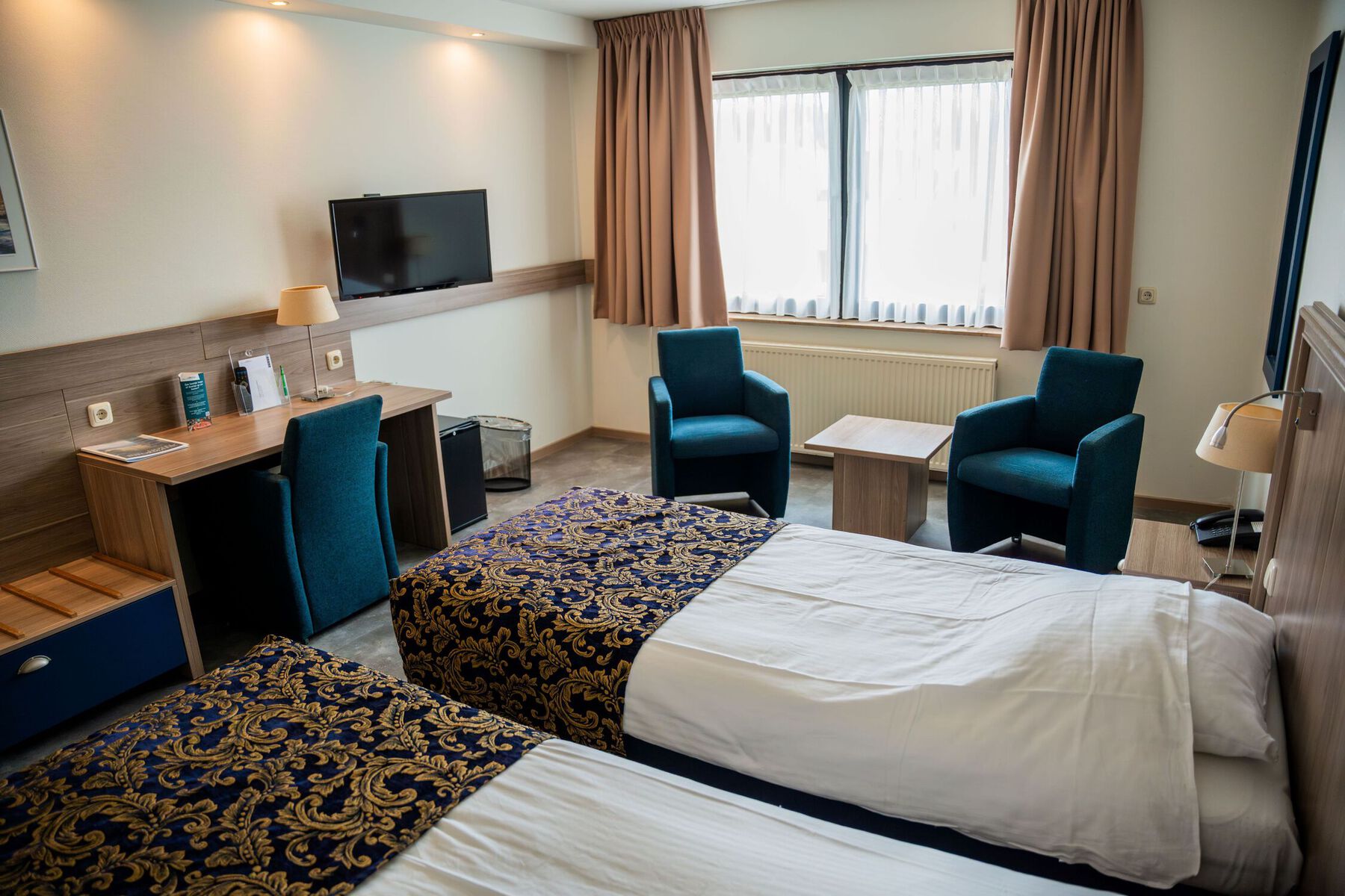 Hotel Zwartewater beschikt over 51 stijlvolle hotelkamers die van alle gemakken zijn voorzien. De ruime kamers hebben een compleet uitgeruste badkamer, telefoon, radio en televisie. Ook is er gratis wifi beschikbaar. Wilt u nog meer ruimte en comfort, dan zijn er de luxere kamers, voorzien van bijvoorbeeld airconditioning en koffie- en theezetfaciliteiten in de Waterkant kamers.