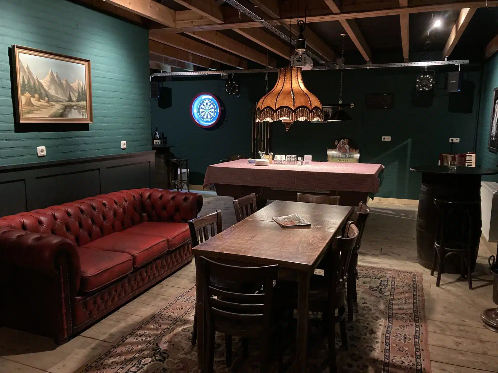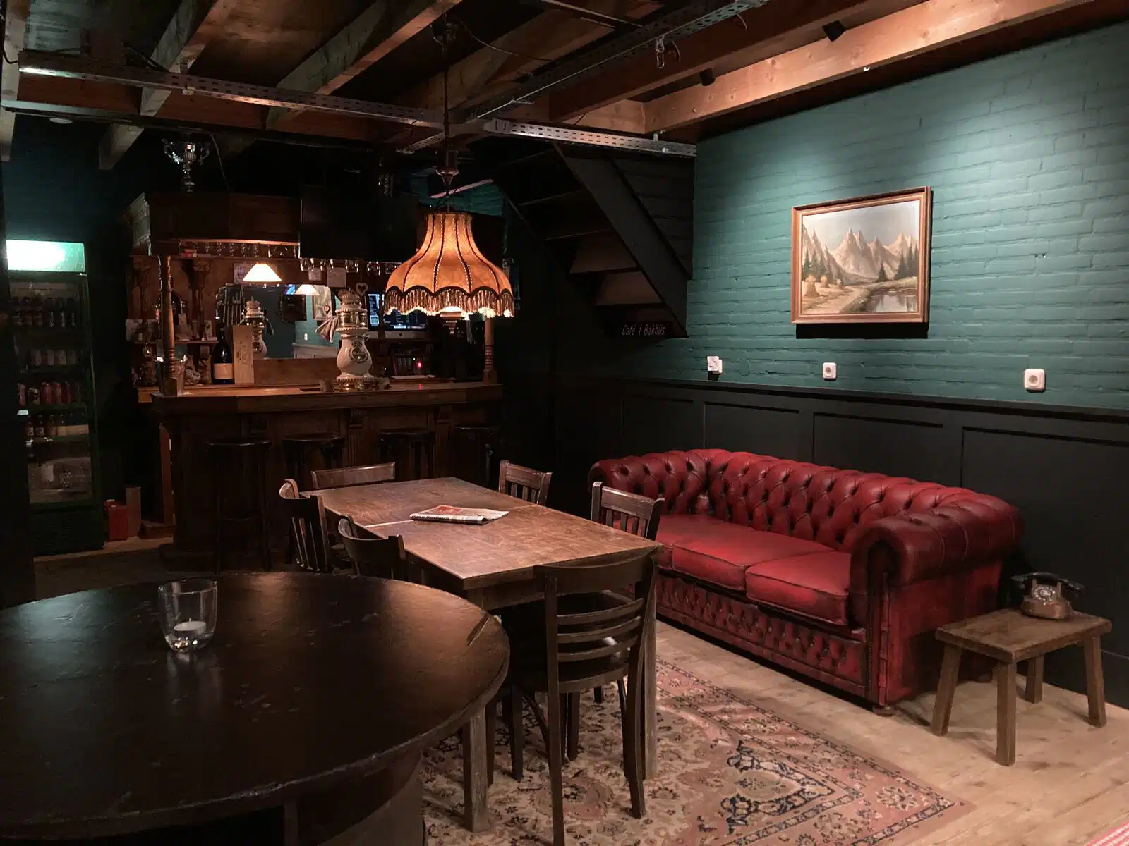 De subruimte bevindt zich op de begane grond, direct onder de hoofdruimte. De ruimte is ingericht als een gezellig bruin cafÃ…