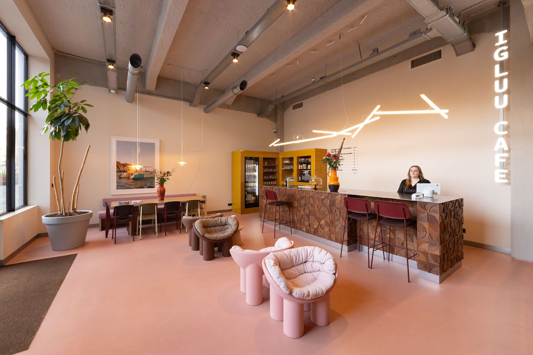 De ligging van Igluu is perfect. Het bevindt zich in de binnenstad, schuin tegenover het Centraal Station, omringd door parkeergarages en te midden van winkels en horecagelegenheden. Parkeren kan het beste aan de overkant van het pand in de parkeergarage aan de Mathildelaan.