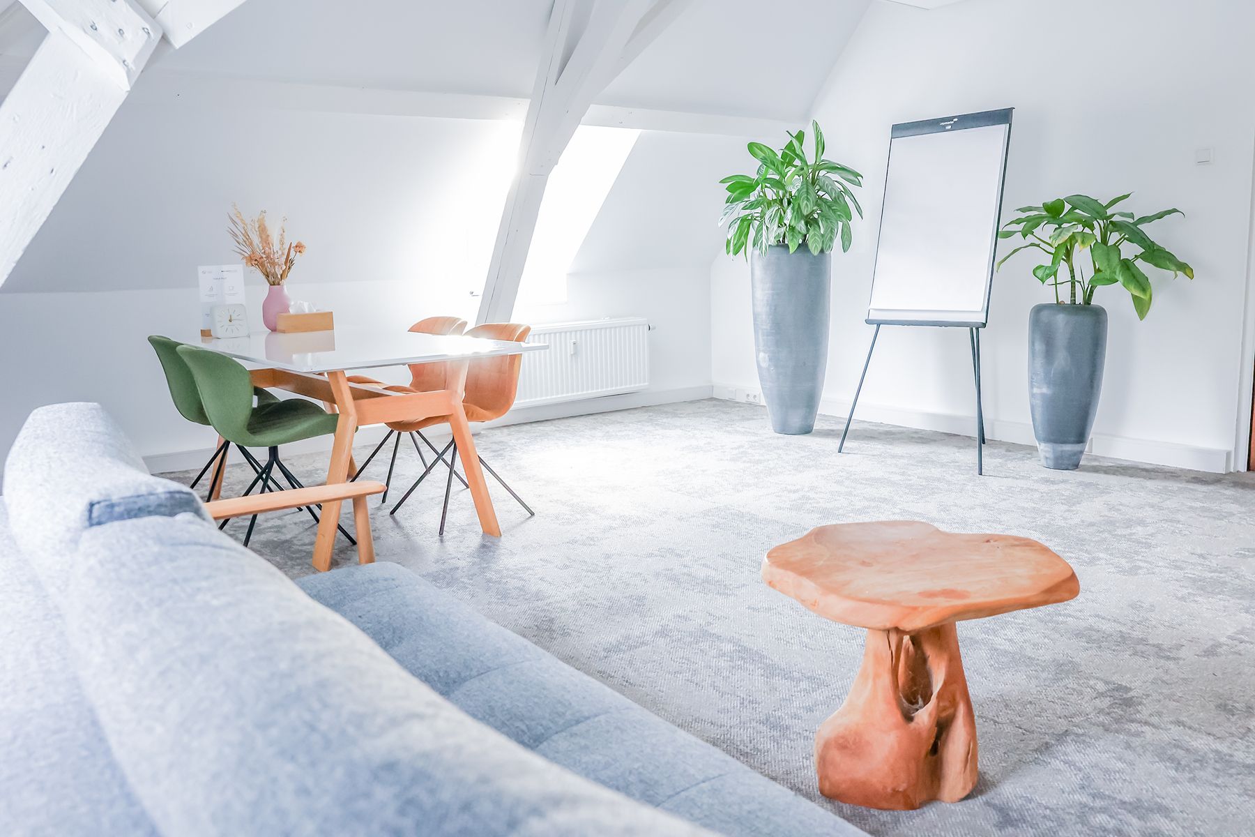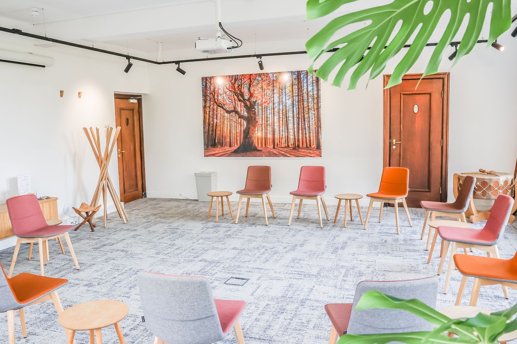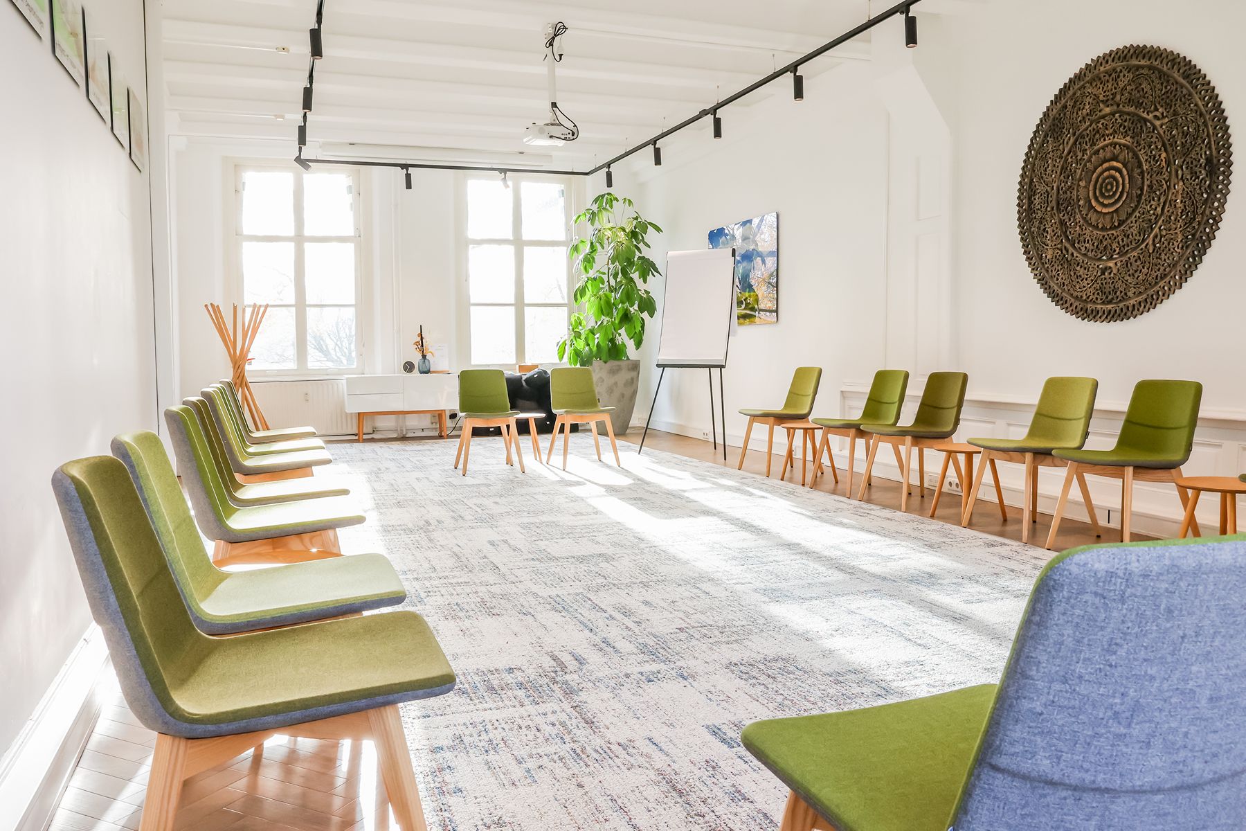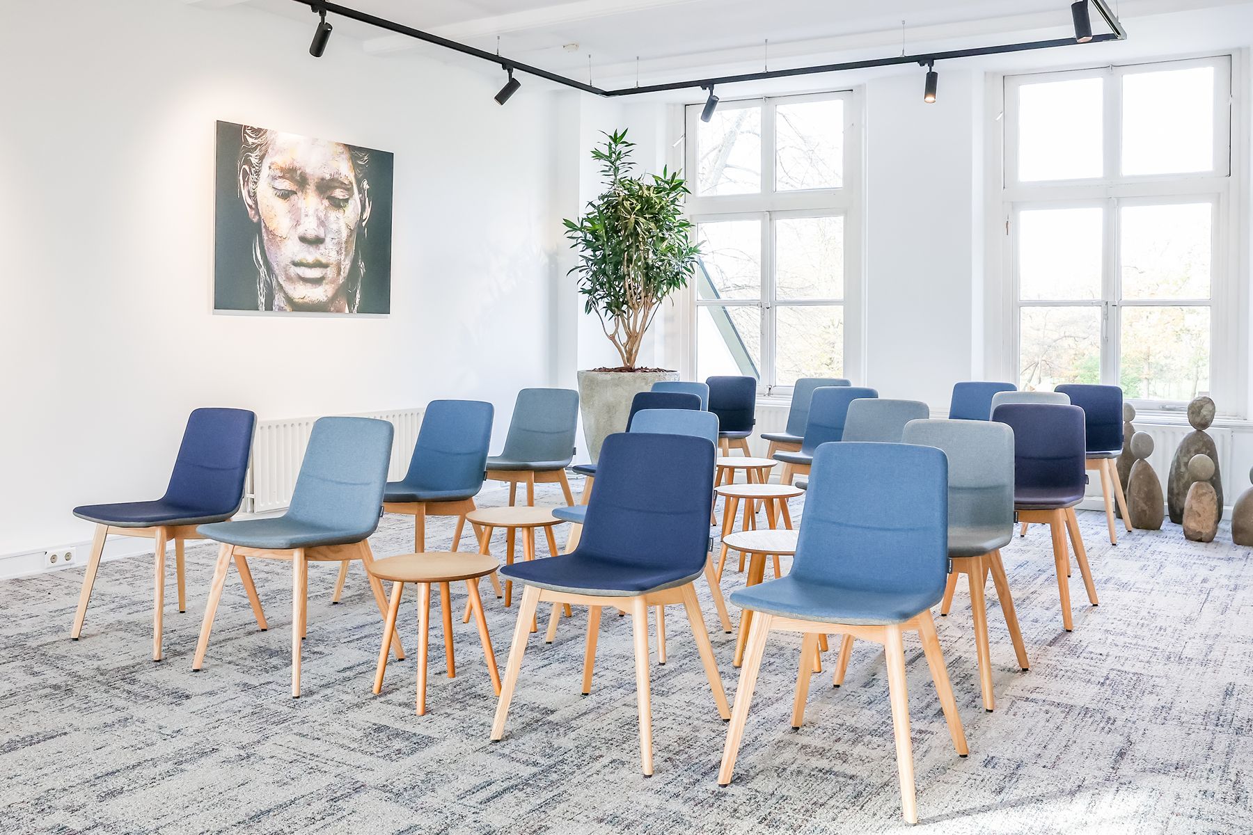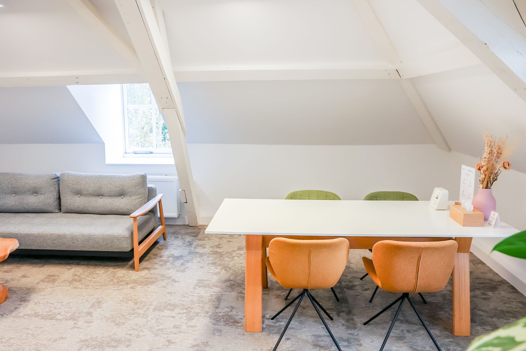 Inspiring Meetings biedt een doordacht ingerichte ruimte met veel daglicht, houten accenten en comfortabele designstoelen. Dit zorgt voor een harmonieuze mix van huiselijkheid en professionaliteit. De sfeer is kalm, inspirerend en vooral groen, letterlijk en figuurlijk. Elke ruimte kijkt uit op de beboste natuur van landgoed Marlot, waardoor je je direct verbonden voelt met de omgeving. Natuur is dan ook het overkoepelende thema bij Inspiring Meetings. De namen van de ruimtes zijn geïnspireerd op traditionele Indianennamen, een eerbetoon aan volkeren die bekendstaan om hun diepe verbondenheid met de natuur en hun respectvolle manier van samenleven met de aarde. Die spirit voel je hier overal terug. Het is de perfecte locatie voor trainingen, heisessies, workshops en teambuildingactiviteiten. Daarnaast bieden wij kleinere ruimtes aan voor bijvoorbeeld vergaderingen, brown paper-sessies en één-op-één coaching.