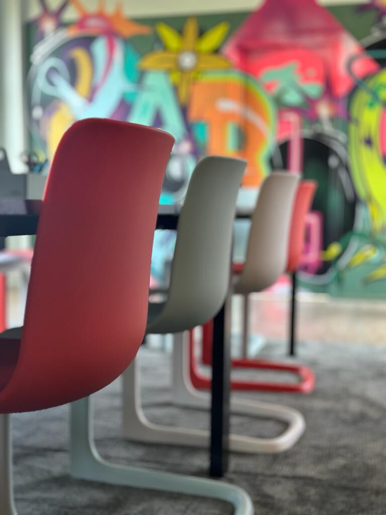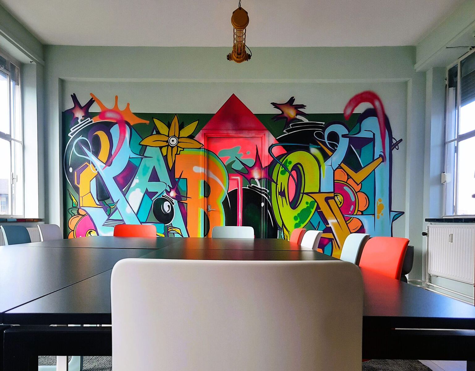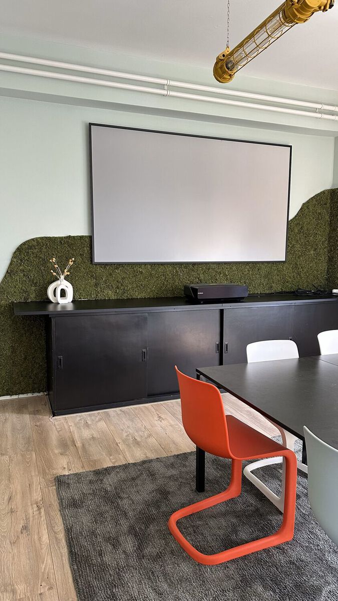 Vergaderen kan soms een uitdaging zijn. Dezelfde saaie vergaderruimtes, de eentonige omgeving en gebrek aan inspiratie kunnen de creativiteit en productiviteit belemmeren. Maak kennis met de KABLOOMroom, de ultieme plek om te ontsnappen aan de dagelijkse kantoorroutine en een frisse wind te laten waaien door vergaderingen. De KABLOOMroom is geen gewone vergaderruimte. Het is een plek die bruist van creativiteit en energie. Voel de spanning die je activeert en ervoor zorgt dat je samen stappen kan zetten. Bij binnenkomst word je begroet door een vette graffitimuur, gemaakt door een lokale artiest, die de ruimte een unieke en levendige sfeer geeft. Het is alsof je een nieuwe wereld betreedt, weg van de monotone kantoormuren. Naast de graffitimuur vind je een prachtige mosmuur die niet alleen mooi is om naar te kijken, maar ook zorgt voor een gezonde en ontspannen omgeving.