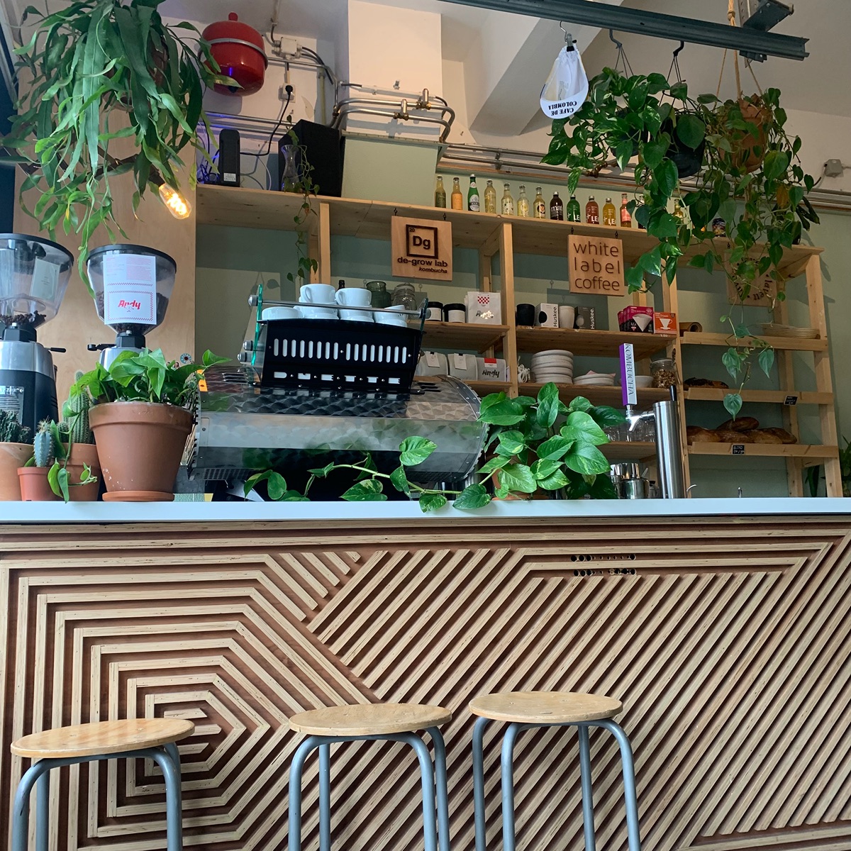 Kaffeetaria is een knusse koffiebar met drie zalen voor vergaderingen en dergelijke. Het is een ruim restaurant met grote ramen, veel licht en veel planten. Kaffeetaria is een perfecte plek om te flexwerken. Met voldoende werkplekken, een lichte ruimte, goede wifi en genoeg stopcontacten is Kaffeetaria de ideale werk- of studeerplek in de wijk Tolsteeg in Utrecht. Er zijn zowel hoge plekken aan de stamtafel, rustige hoekjes om te studeren of te werken, als chille banken om dat ene verslag of boek nog eens goed door te lezen.