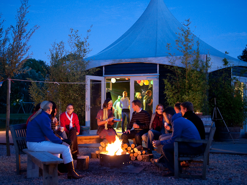 Bij Buitenplaats Kameryck kun je, midden in de natuur, bijzonder overnachten. In een grote cirkel staan 17 nostalgische Veldhuysjes op wielen. Dit dorpje biedt plaats aan 66 personen. Midden op het dorpsplein is een grote vuurplaats waar men 's avonds heerlijk bij het vuur kan zitten. Voor meerdaagse bijeenkomsten biedt Buitenplaats Kameryck de mogelijkheid om te overnachten in deze nostalgische Veldhuysjes. Na het diner vertrekken de gasten naar de Veldhuysjes waar al een knisperend vuurtje brandt en de kachel is opgestookt. Onderdeel van de Veldhuysjes is een sfeervol paviljoen. In dit paviljoen is de koelkast gevuld en onder het genot van een drankje praat men bij het kampvuur of bij de houtkachel na over de drukke dag. 's Nachts ervaart men de oorverdovende stilte van het Groene Hart. De volgende ochtend word je gewekt door zingende vogeltjes, waarna in een van de zalen een uitgebreid ontbijtbuffet wordt geserveerd.