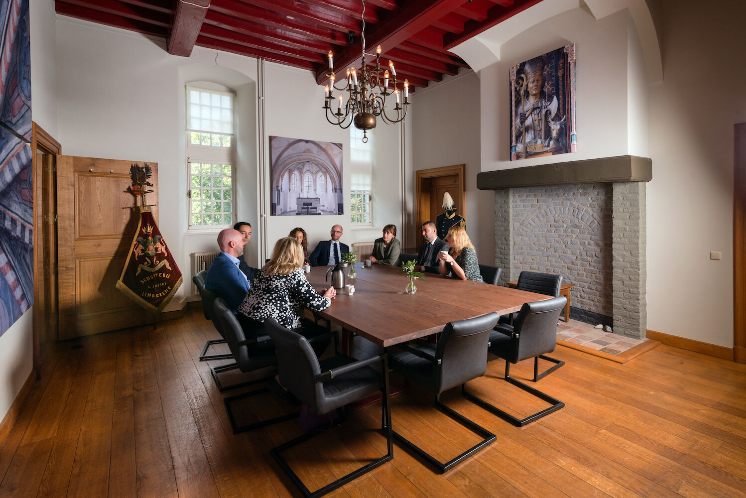 Op, letterlijk, het allerhoogste niveau van Landgoed Kasteel Limbricht vindt u de Vergaderburcht. Van buiten ziet u nog altijd de vertrouwde, eeuwenoude hoofdburcht en dat zal ook niet veranderen, maar van binnen heeft het gebouw een metamorfose ondergaan. Weg van de waan van alledag in een inspirerende omgeving, van alle technische faciliteiten voorzien, midden in een groen wandelgebied en omringd door diverse horeca-faciliteiten, voldoet dit gebouw aan alle vereisten voor een succesvolle vergadering, teamdag of event. Of u nu kiest voor de gewelvenkelder, voor een van de stijlvolle ruimtes vol authentieke elementen op de eerste of tweede verdieping of voor het torentje helemaal bovenin het gebouw, iedere ruimte is uniek op zijn eigen manier. Gezien de diversiteit aan ruimtes en facilitaire mogelijkheden is er altijd een geschikte ruimte voor uw gezelschap, hoe groot of klein de groep ook is.