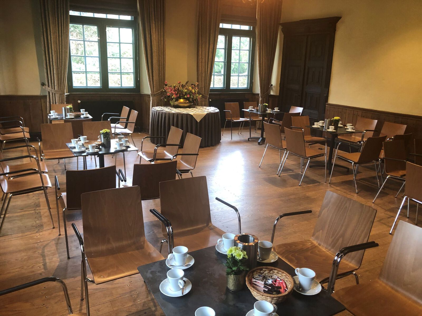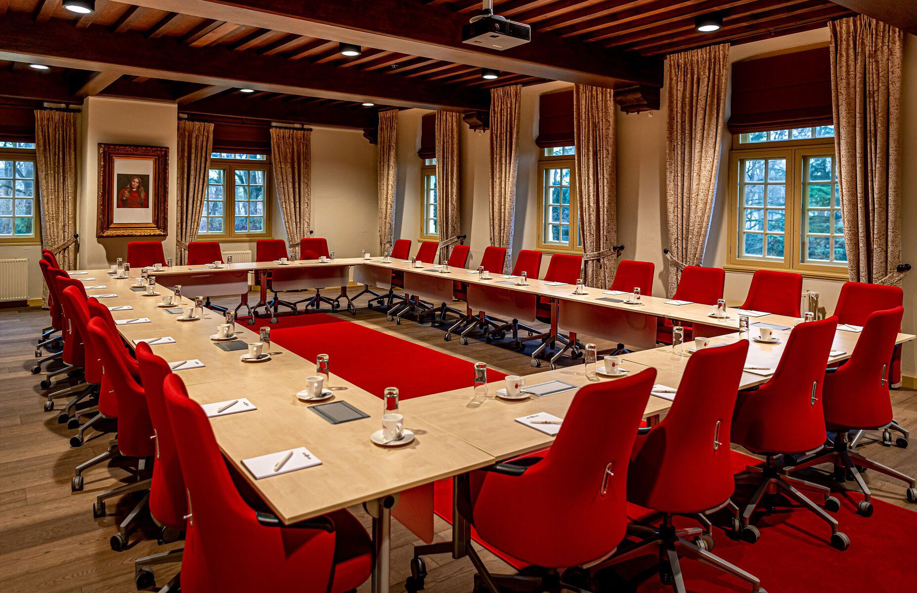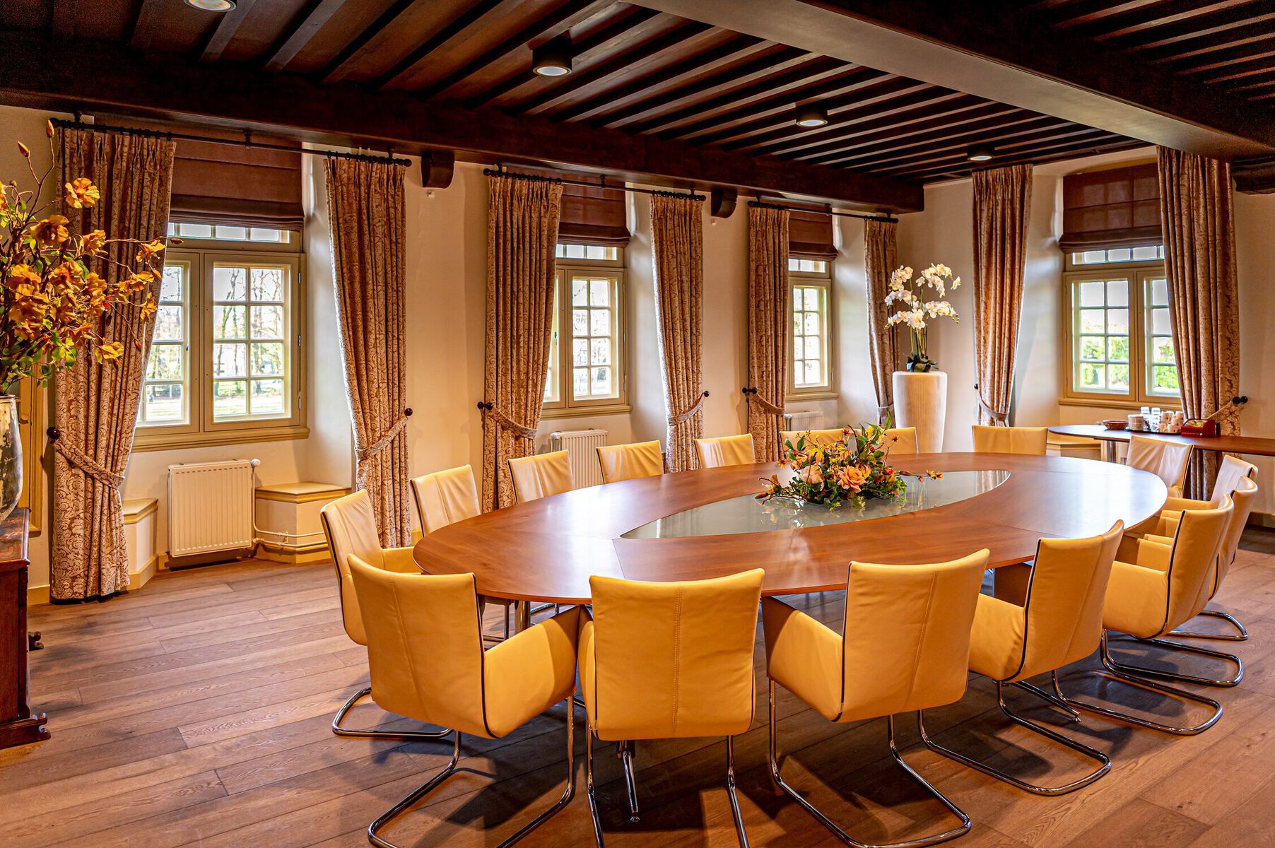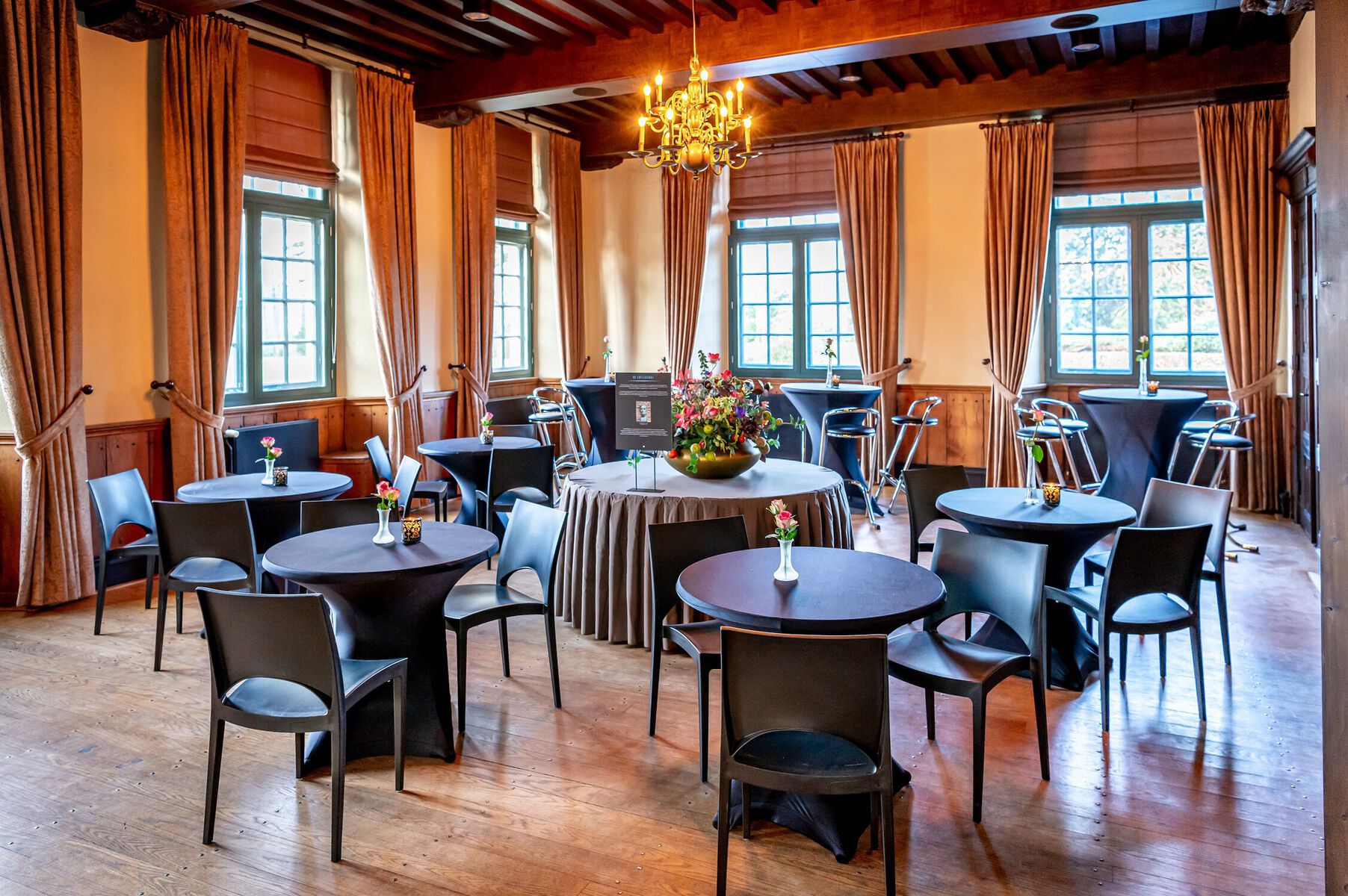 Emiliazaal, De Kempenaerkamer, Amaliazaal en Van Nassaukamer. Monumentale kasteelzalen die het juiste cachet geven aan bijeenkomsten. Een bijzondere plek om stijlvol te vergaderen en om mooie momenten en uitzonderlijke gebeurtenissen te vieren. Het rijke interieur, de fraai overdekte binnenplaats, de monumentale omgeving en het bruisende centrum van Wijchen zijn ingrediënten voor een bijzonder verblijf. Een meeting, bijeenkomst of presentatie is uitstekend te combineren met een culturele activiteit. Een leerzame en inspirerende rondleiding door het museum of een wandeling in de kasteeltuin en door het centrum van Wijchen. Zo kan er een programma op maat worden samengesteld. Kasteel Wijchen biedt ruimte aan gezelschappen van een paar tot zo’n 250 gasten. De stijlvolle ruimtes in het kasteel zijn voorzien van comfort en moderne faciliteiten.
