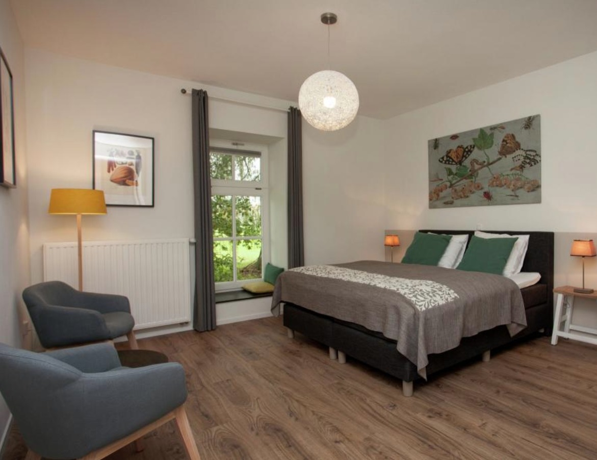 Luxe sfeervolle accommodatie met vergaderruimte, ensuite slaapkamers, sauna en recreatieruimte. Deze prachtige accommodatie heeft het allemaal en kan exclusief door één groep worden gebruikt. Er is een grote open woon- en vergaderruimte op de benedenverdieping en een recreatie- en vergaderruimte op de eerste etage. De riante slaapkamers doen niet onder voor die van een luxe hotel en zijn voorzien van goede boxspringbedden en een eigen badkamer of douche. Voor de ontspanning staat een wellnessruimte met sauna en stoomdouche ter beschikking. Er is een beamer en groot tv-scherm aanwezig, evenals flip-overs en kantoorartikelen. Centraal in deze historische accommodatie ligt de besloten binnenplaats waar u heerlijk uit de wind en toch buiten kunt zitten. Ook ligt het midden in een prachtig natuurgebied, met volop mogelijkheden voor inspiratie, ontspanning en productief werken.