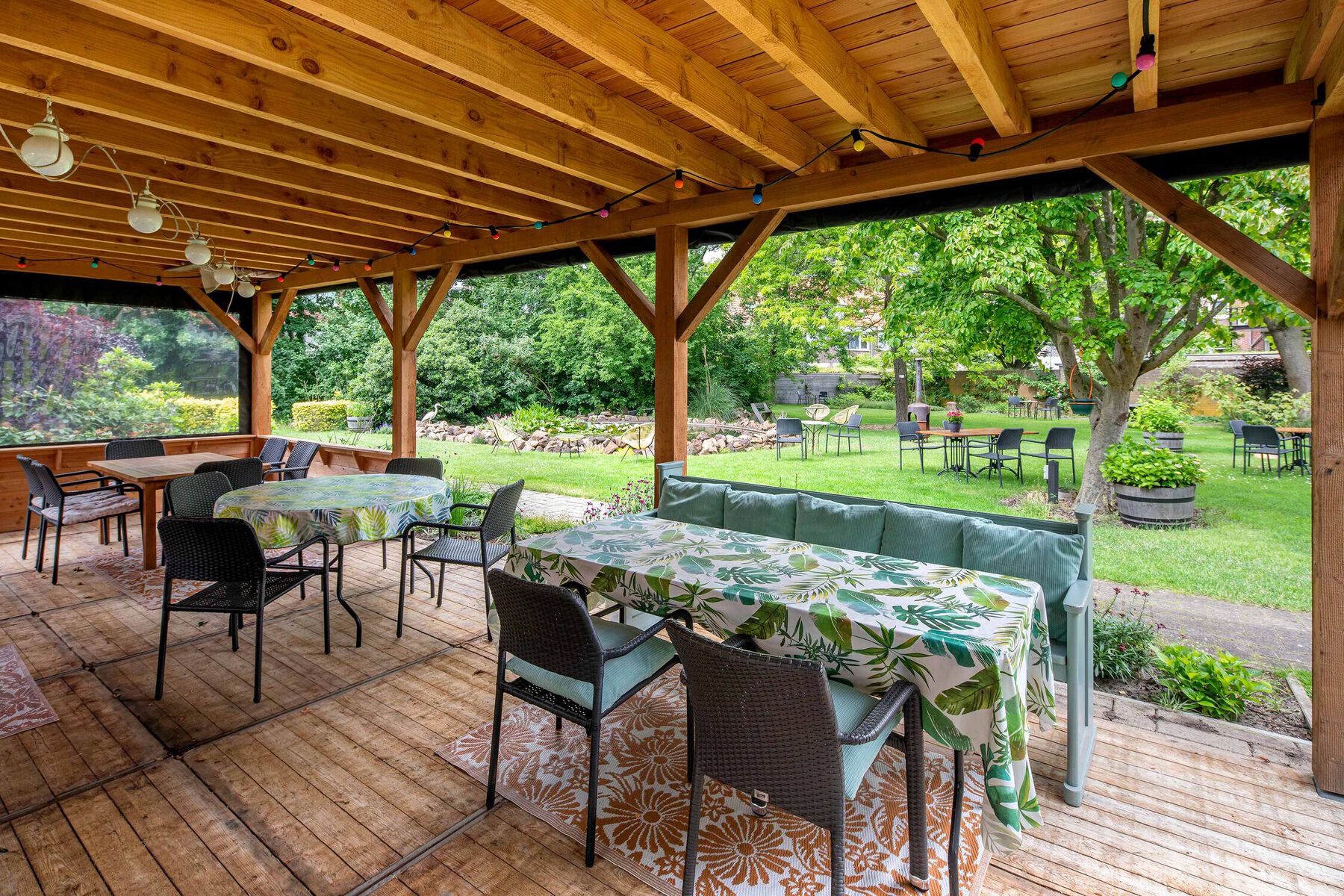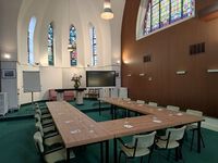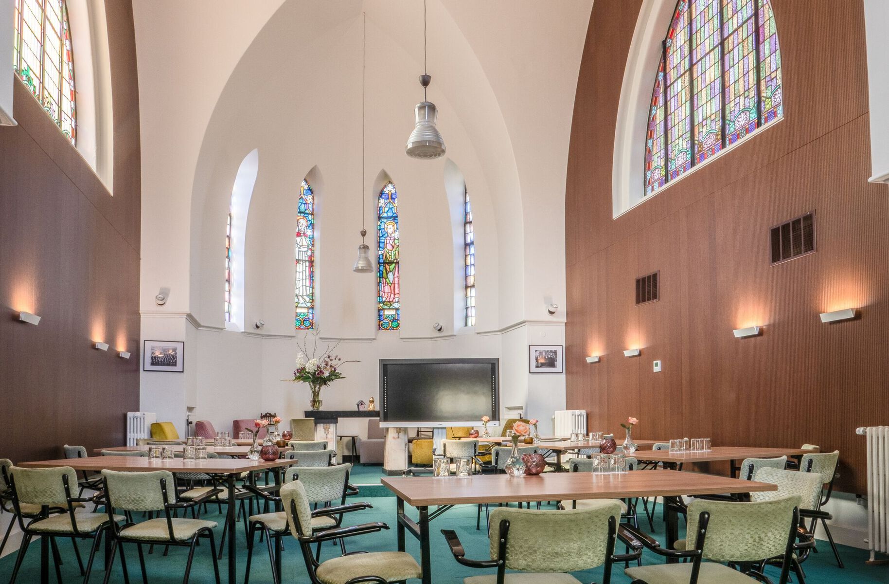 De originele kloosterkapel met zijn architectonische details en mooie lichtinval biedt een bijzondere omgeving voor uiteenlopende besloten groepsbijeenkomsten. De ruimte is hoog, groot en stil met een fantastische akoestiek, goede ventilatie en airconditioning. Er is ruimte voor diverse vergaderopstellingen. Er is alles aanwezig om een bijeenkomst tot een succes te maken, van highspeed wifi, een digibord, flip-over tot minibar. De originele refter, de eetkamer van de zusters, is omgebouwd tot een sfeervolle eetkamer. Deze sfeervolle zaal met uitzicht op de kloostertuin is de ruimte voor lunches of borrels. In overleg is het ook inzetbaar voor andere gelegenheden of extra werkplekken tijdens de bijeenkomst. De kloostertuin is een rustige oase in de bruisende stad. Het is de perfecte plek voor een buitenlunch en borrel. De zithoekjes en tafels zijn geschikt om individueel of in deelgroepjes terug te trekken. Ook de grote overkapping in de tuin kan worden betrokken als extra ruimte.