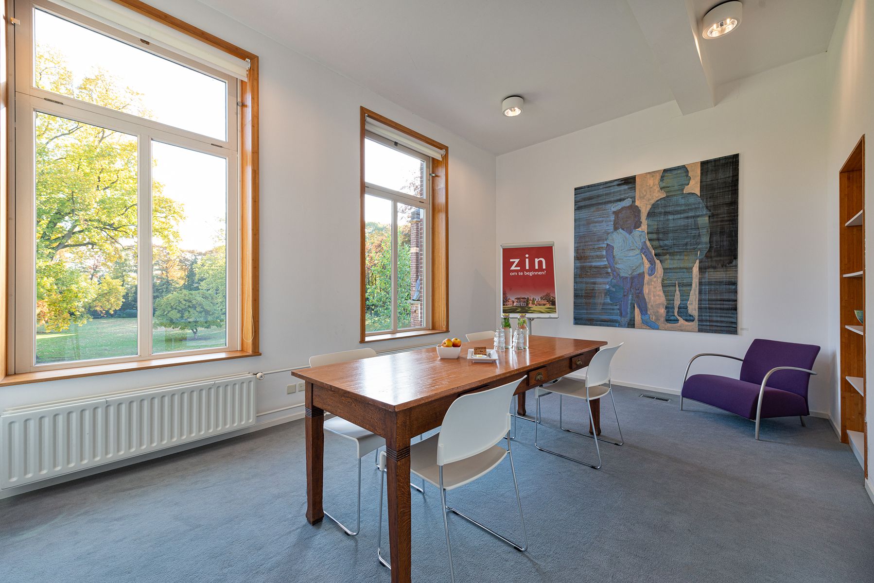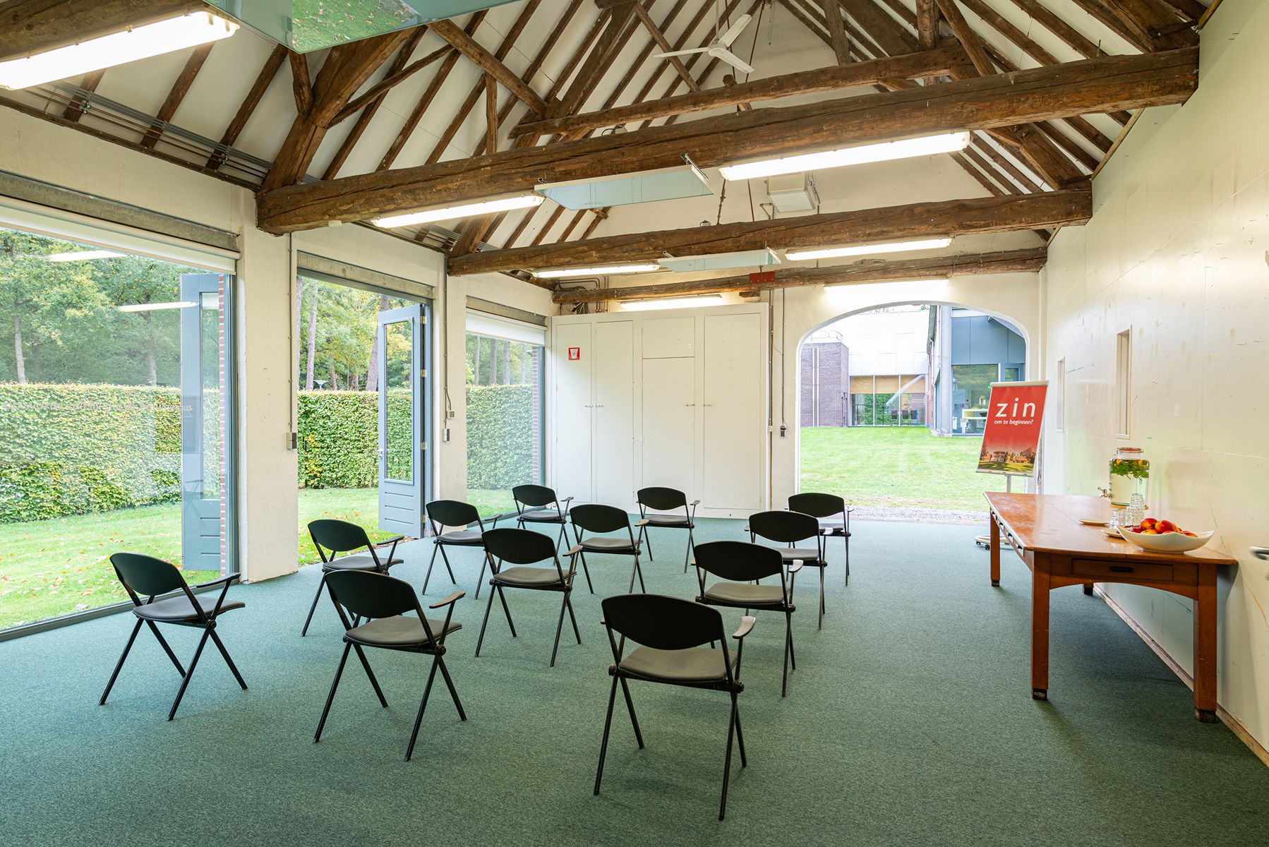 Direct als je het landgoed oprijdt, voel je de rust en ruimte. Met de handvatten van het oude klooster, zoals het dagritme, bieden we de bijeenkomst de juiste balans tussen in- en ontspanning. De oude waarden combineren we met moderne architectuur, kunst en de 100% biologische keuken. Samen halen we het beste uit de bijeenkomst. Deze vergader- en evenementenlocatie wordt omringd door rijke natuur en eeuwenoude bomen. Het huishouden wordt grotendeels verzorgd door het ZIN-team, jonge mensen met een beperking. Zij dekken de tafels, doen de afwas, maken de kamers gereed, boenen de gangen en ontvangen gasten. Hun werklust en openheid werken zeer aanstekelijk.