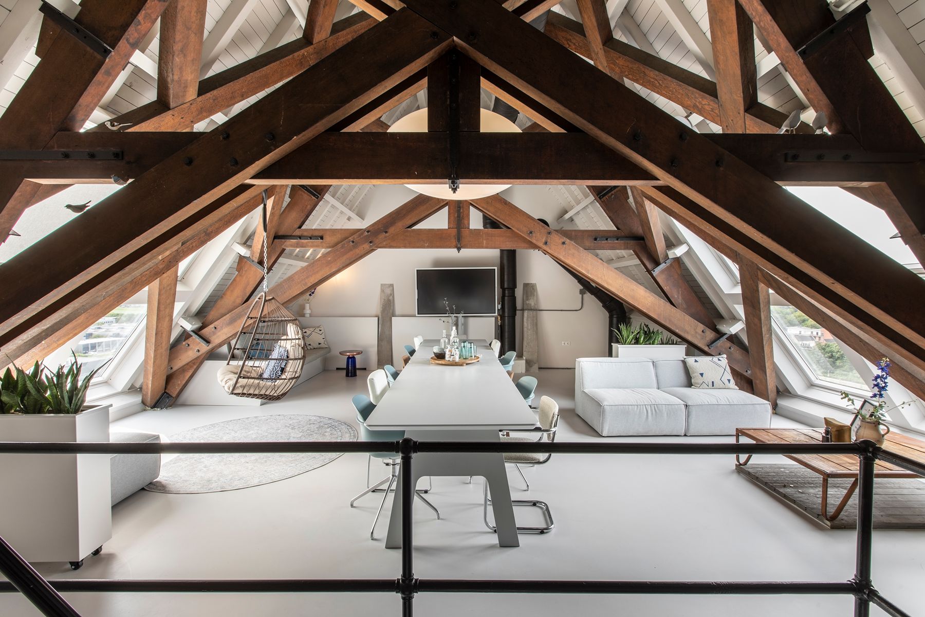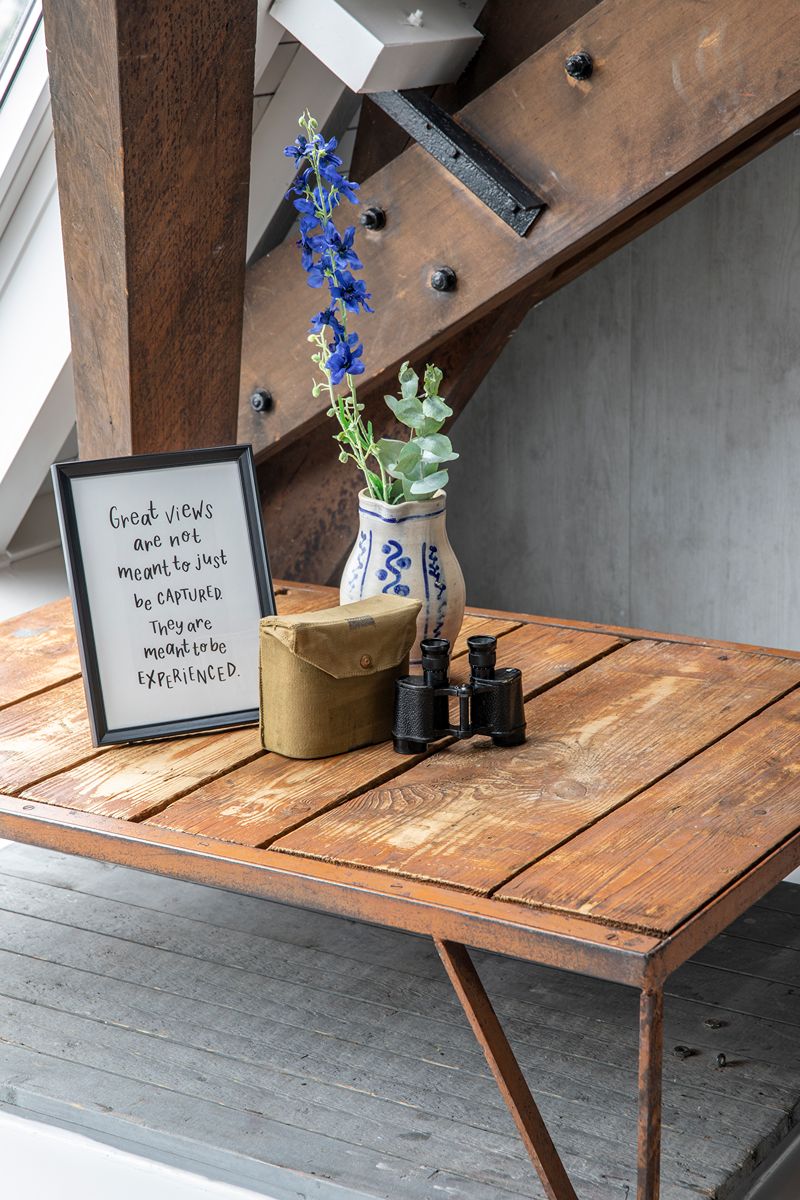 Huur je de Torenkamer? Dan heb je de drie bovenste verdiepingen van de watertoren exclusief tot je beschikking. Er is een eigen garderobe en een ruim toilet aanwezig. Deze verdiepingen zijn semi-open met elkaar verbonden. Vanuit de loft, misschien wel de mooiste verdieping van de watertoren, heb je vanaf zithoogte prachtig uitzicht door de grote dakramen aan beide kanten. Deze ruimte kun je gebruiken voor presentaties (inclusief modern multimedia scherm), vergaderingen of trainingen. In overleg zijn er diverse opstellingen mogelijk, passend bij het event. De entresol heeft een creatieve inrichting. Hier kun je brainstormen, plannen uitwerken of het gebruiken voor een andere break-out doelstelling. In de woonkeuken start je met koffie, thee en huisgemaakte lekkernijen. Hier wordt ook de lunch geserveerd en is het mogelijk om de dag af te sluiten met een borrel of diner.